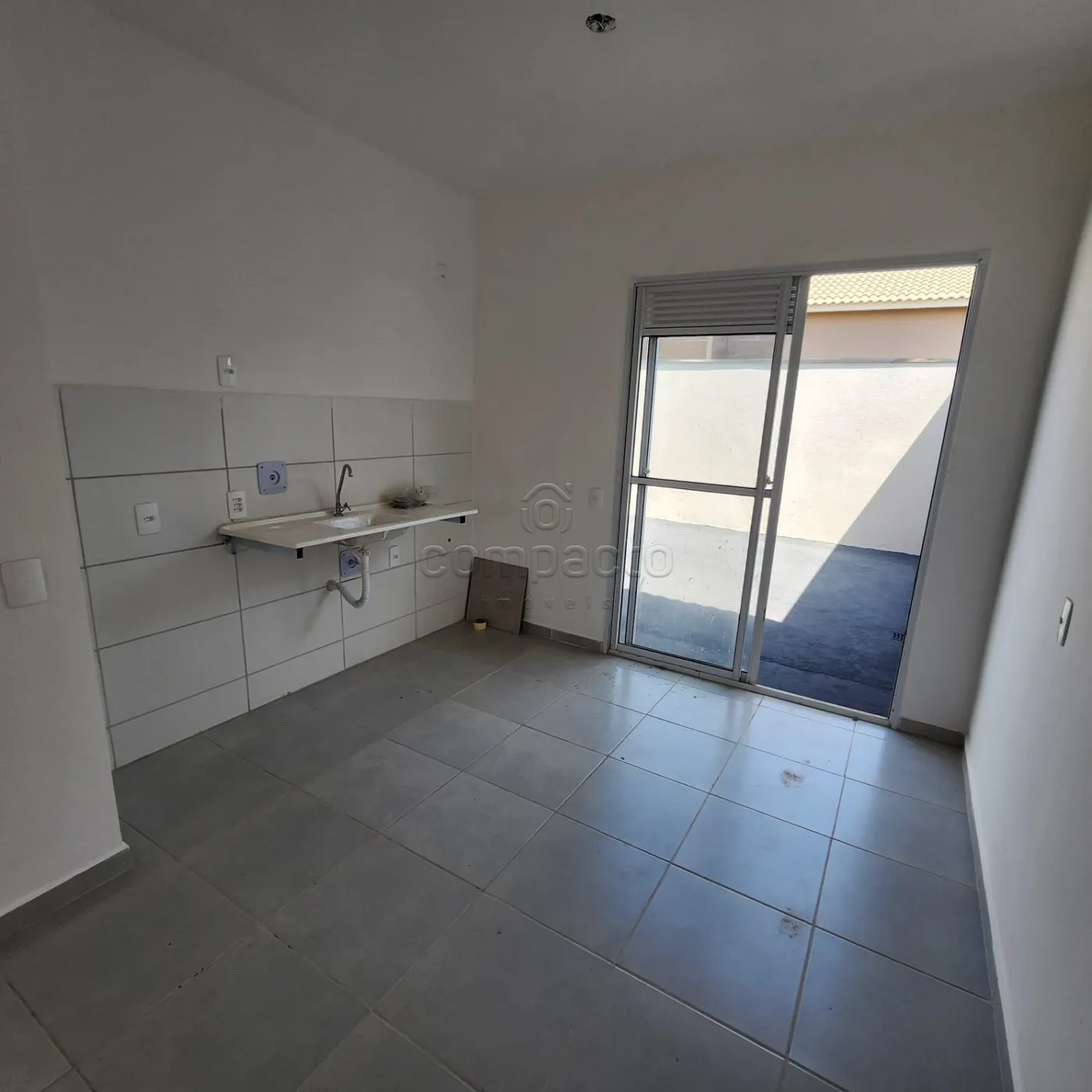 Casa em condomínio com 2 quartos, sala, 1 banheiro e cozinha.