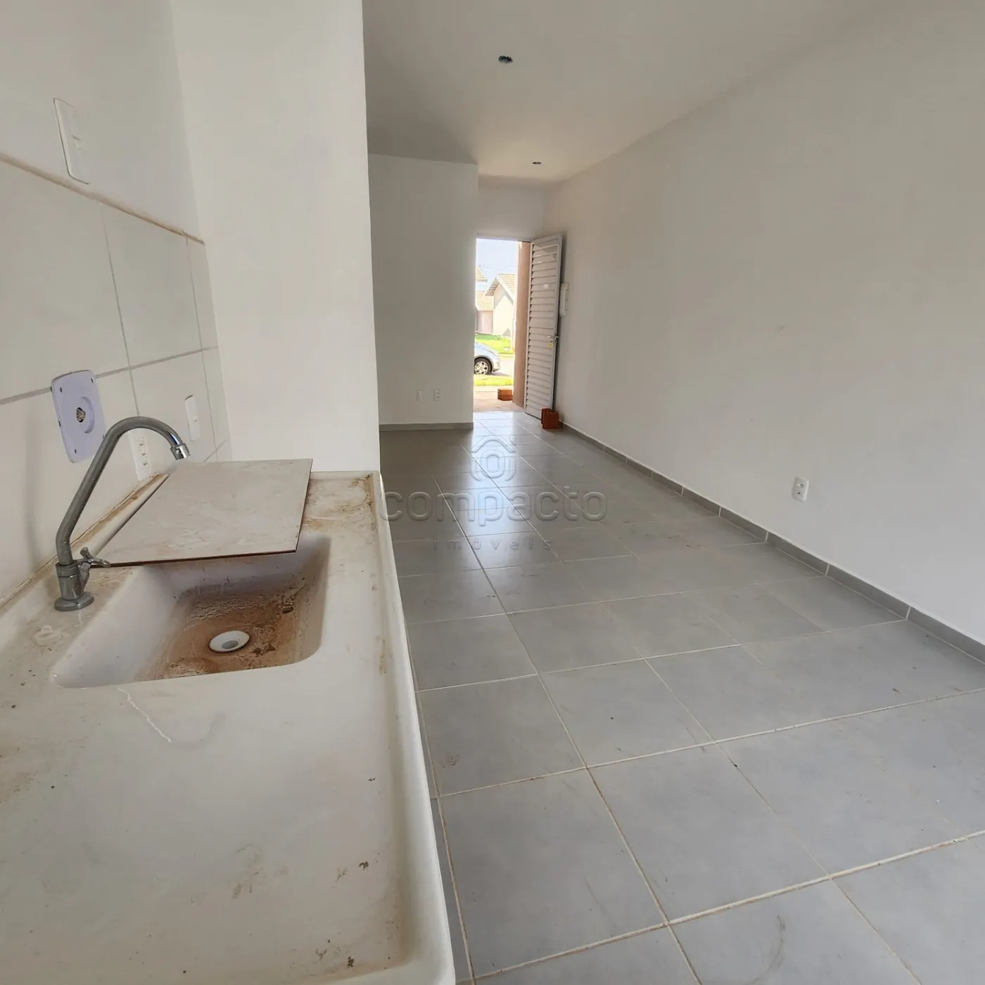 Casa em condomínio com 2 quartos, sala, 1 banheiro e cozinha.