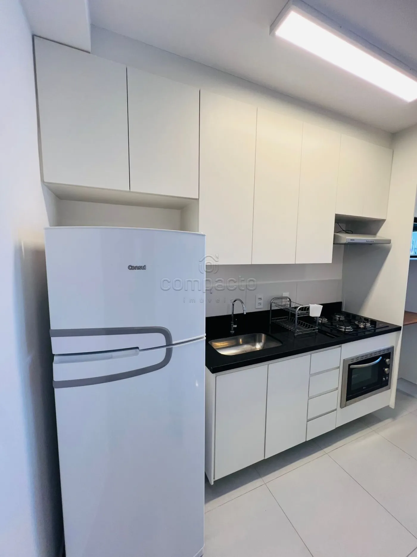 Apartamentos no estilo Studio com sala, cozinha, dormitório e wc social.