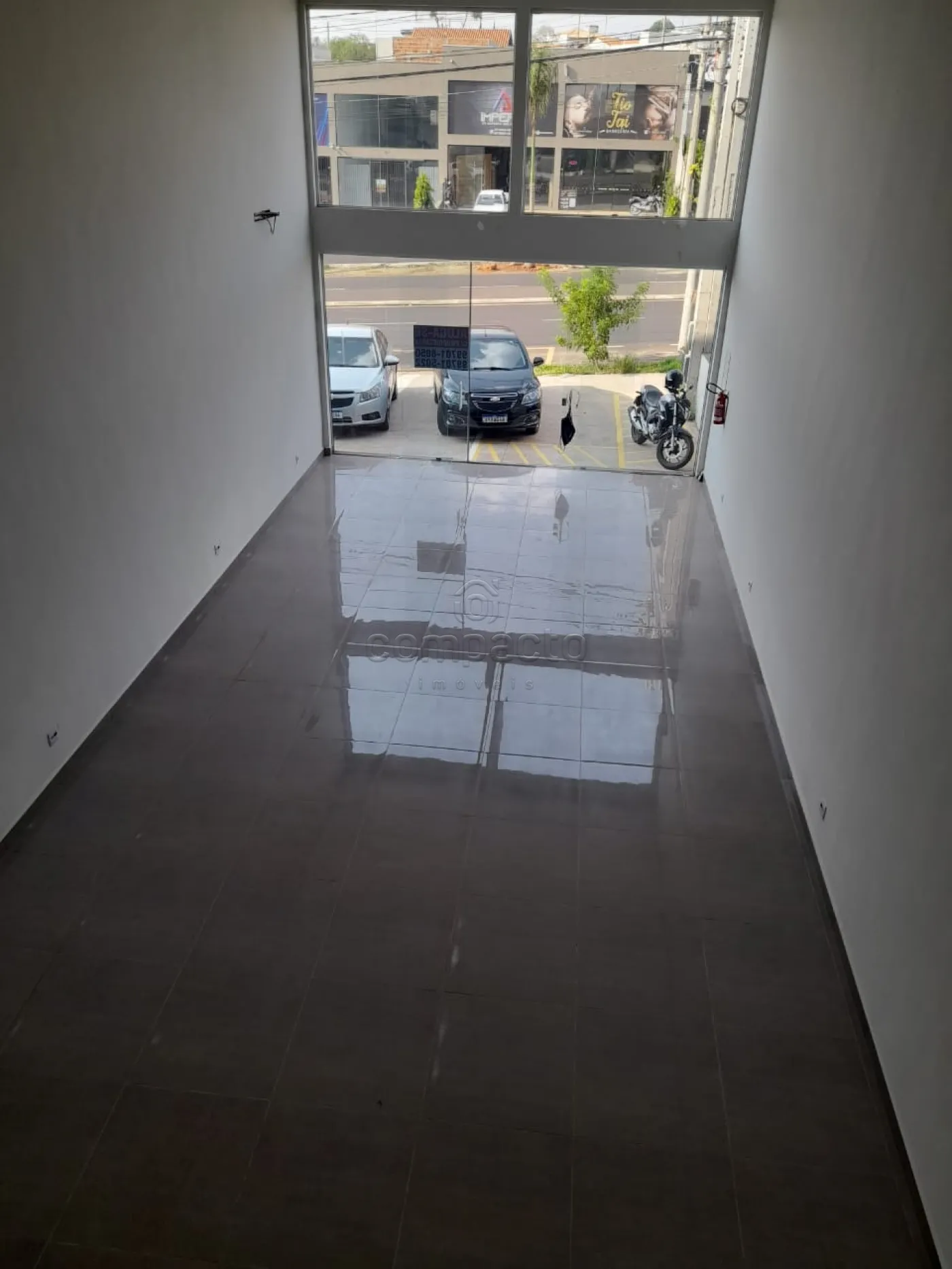 Salão comercial medindo 117,90m² de área útil. Possui mezanino, 2 banheiros, área descoberta e 2 vagas.