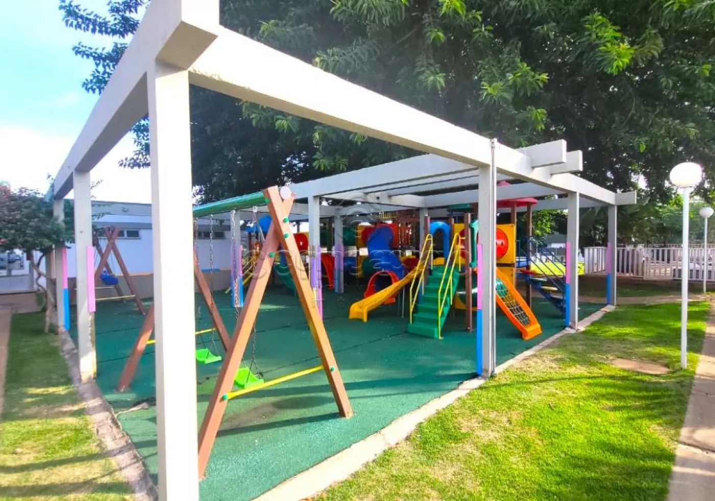 Condomínio oferece: Portaria 24hrs, câmeras de segurança, piscina adulto e infantil, espaço fitness, salão de jogos, salão de festas, quadra poliesportiva, quadra de tênis, quadra de vôlei de grama, mini-campo de futebol e playground.
