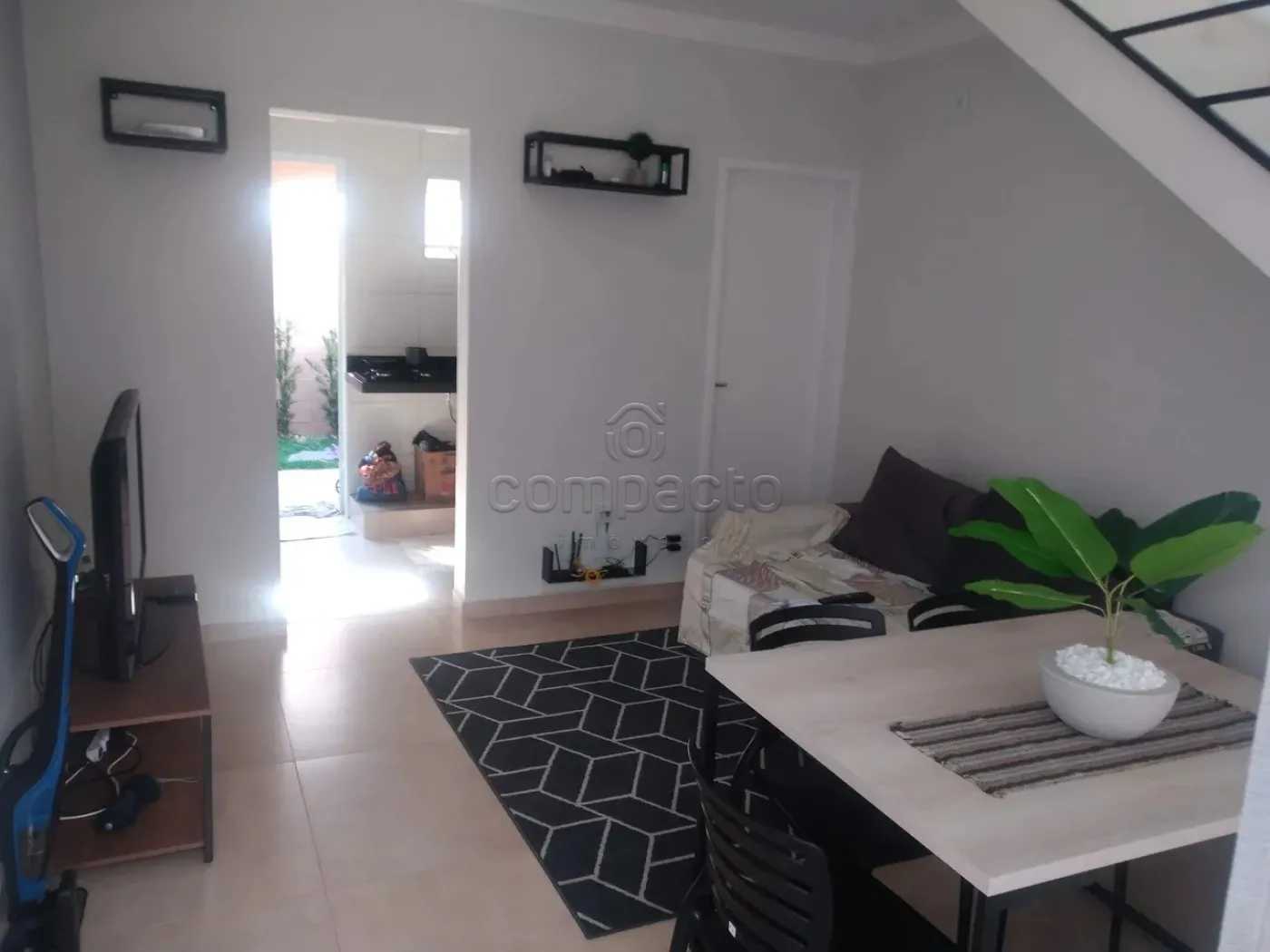 Casa sobrado em condomínio fechado, com 2 quartos, 2 banheiros (sendo um lavabo), sala, cozinha, área de serviço e 1 vaga de garagem.