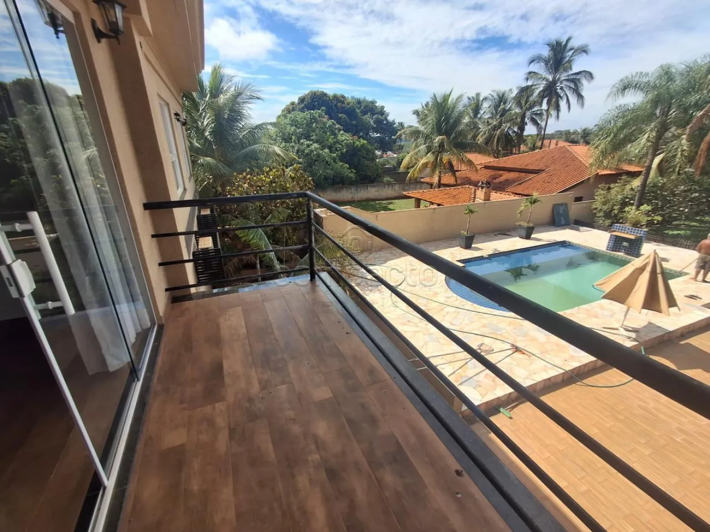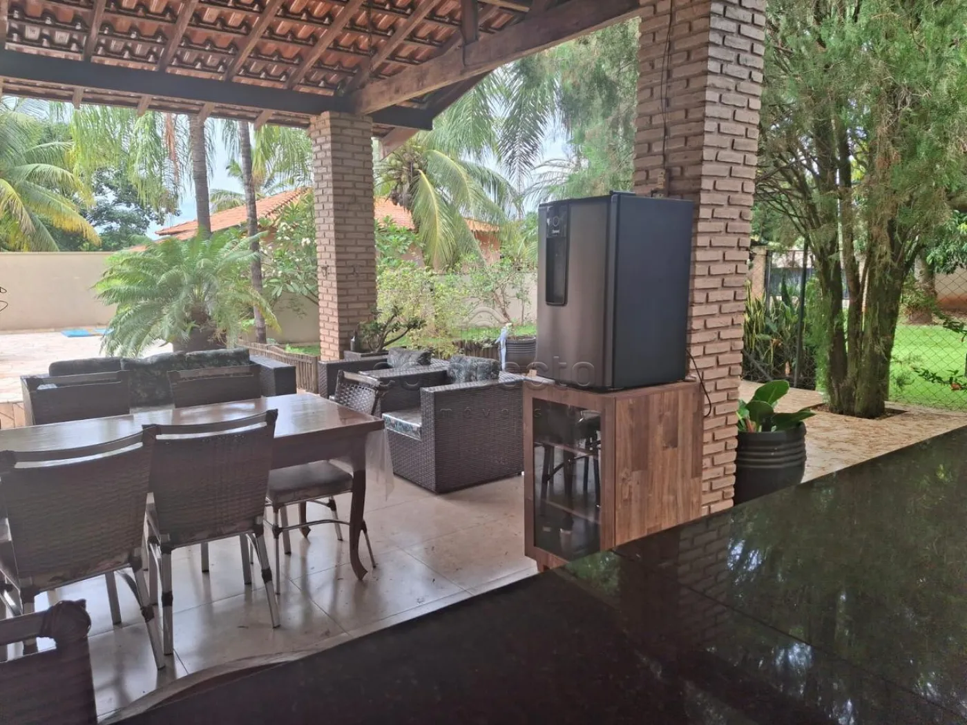 Chácara em condomínio mobiliada com 05 quartos (sendo 03 suítes e 04 quartos com ar condicionado), 06 banheiros, salas são 03 (sendo 01 sala com ar condicionado), quiosque ( aérea gourmet) churrasqueira, balcão, banheiros, armários, piscina e jacuzzi.