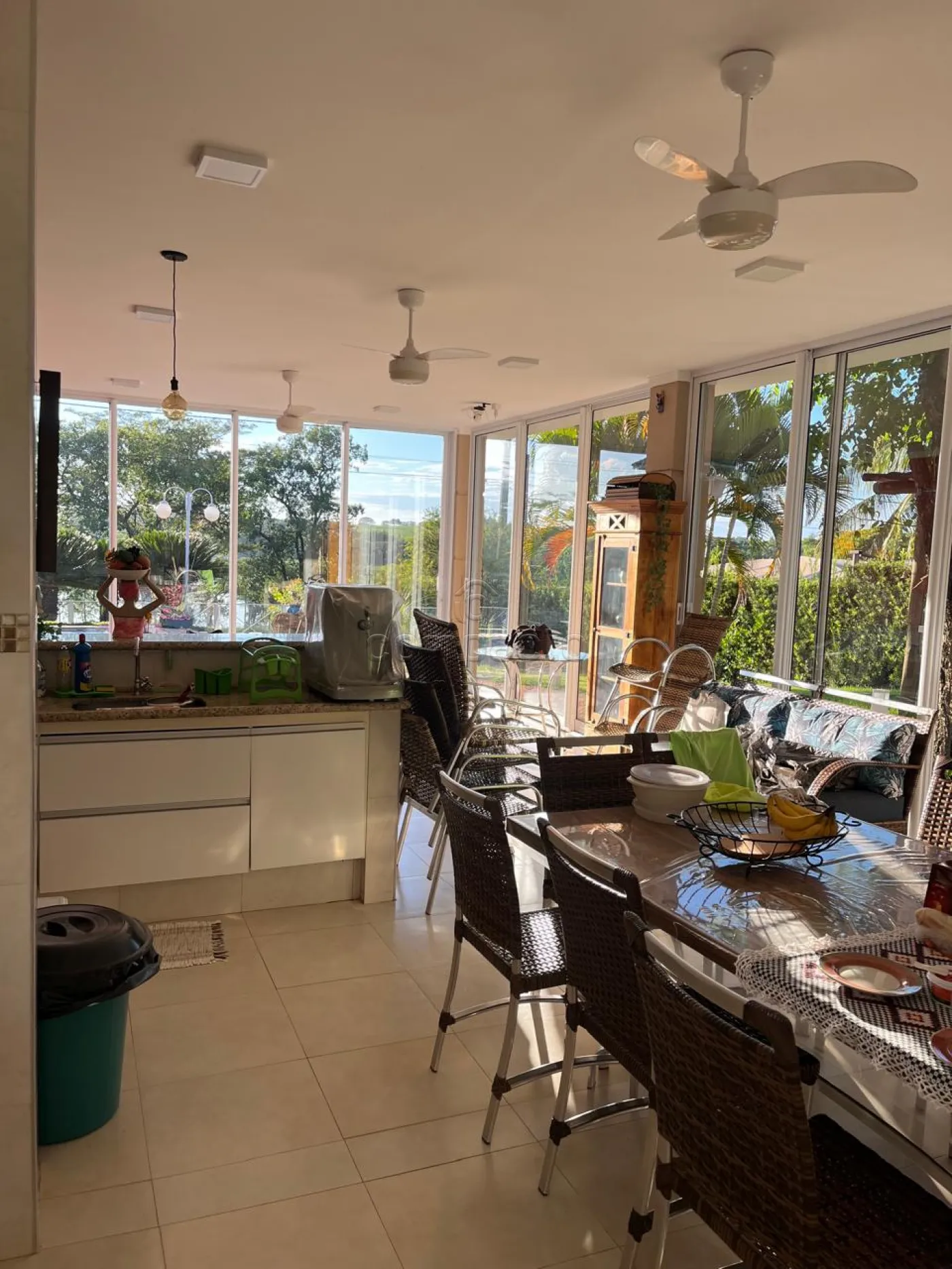 Ampla varanda toda fechada em vidro