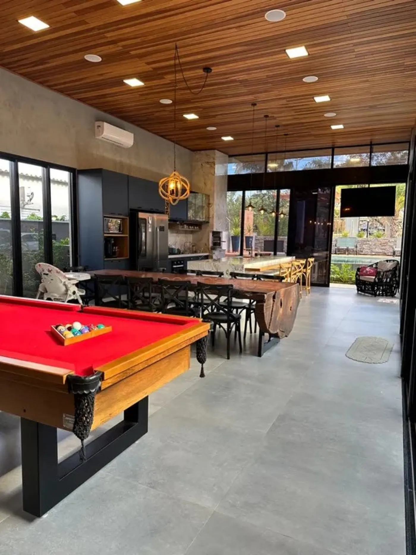 Rancho em condomínio fechado com 4 suítes, home com pé direito alto de 4m, área gourmet toda equipada com mesa de sinuca, mesa de cartas, cervejeira, e mesa em tronco natural, 2 banheiro com chuveiro (1 área gourmet e 1 home), despensa, lavanderia aberta, mirante aberto, piscina em alvenaria, irrigação automática e garagem para 2 carros + rampa (4 carros).