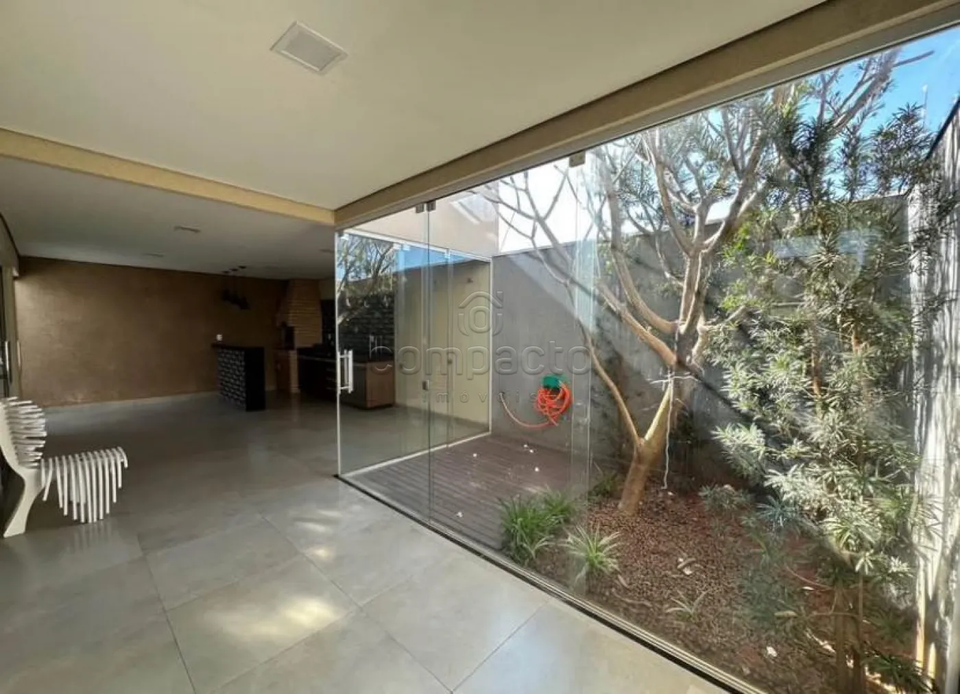 Casa com dois quartos, sendo um deles suíte, conta com dois banheiros com armários planejados, cozinha com armários, sala de jantar e um escritório. Nos fundos há uma área gourmet com armários planejados, churrasqueira e um jardim de inverno. A garagem comporta dois carros.