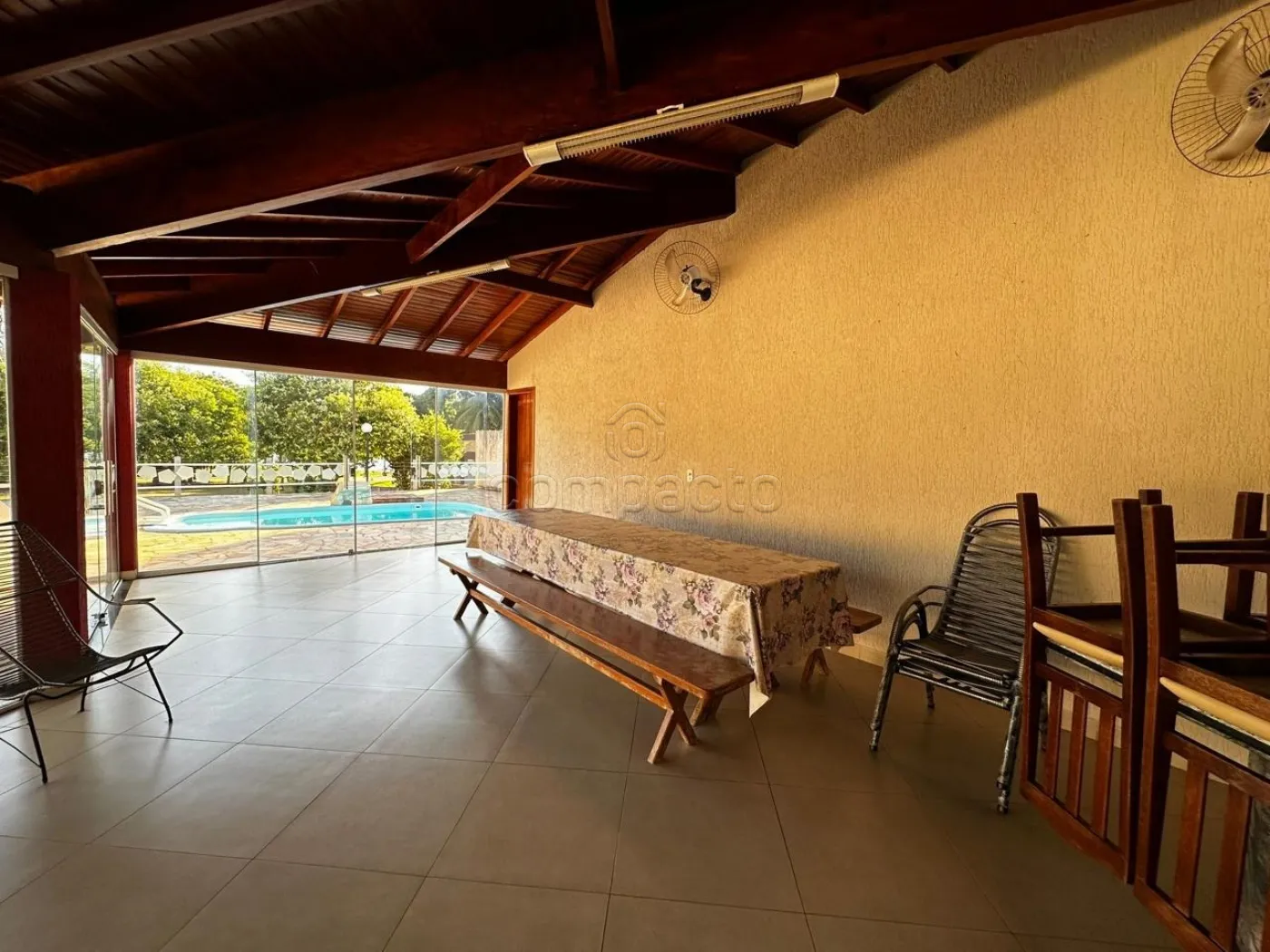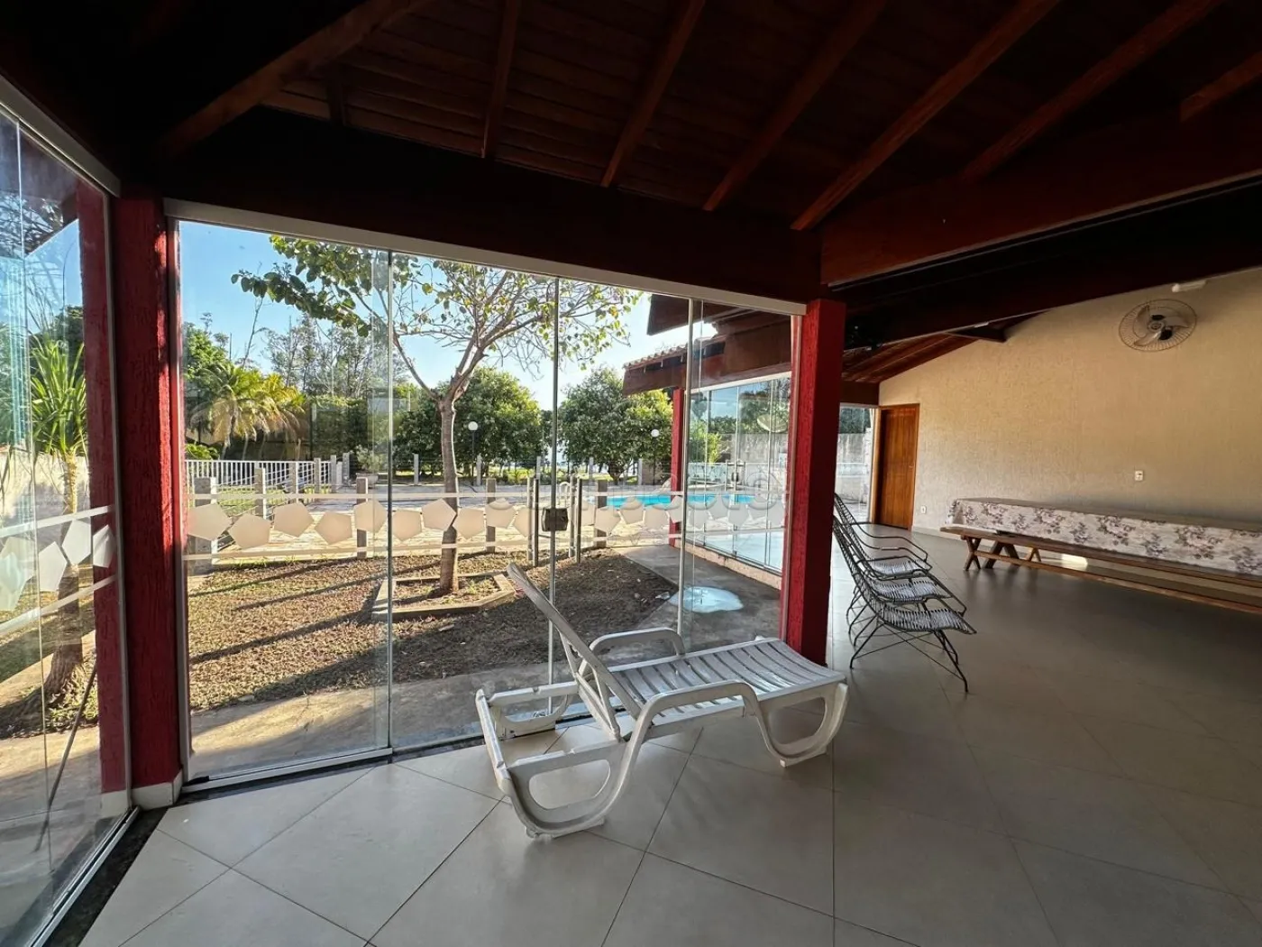 Rancho mobiliado 3 dormitórios todos suítes com ar condicionado, ventilador de teto, sala de jantar, sala de estar, cozinha, área de serviço, lavabo, box Blindex, varanda, churrasqueira, piscina e 4 vagas de garagem.