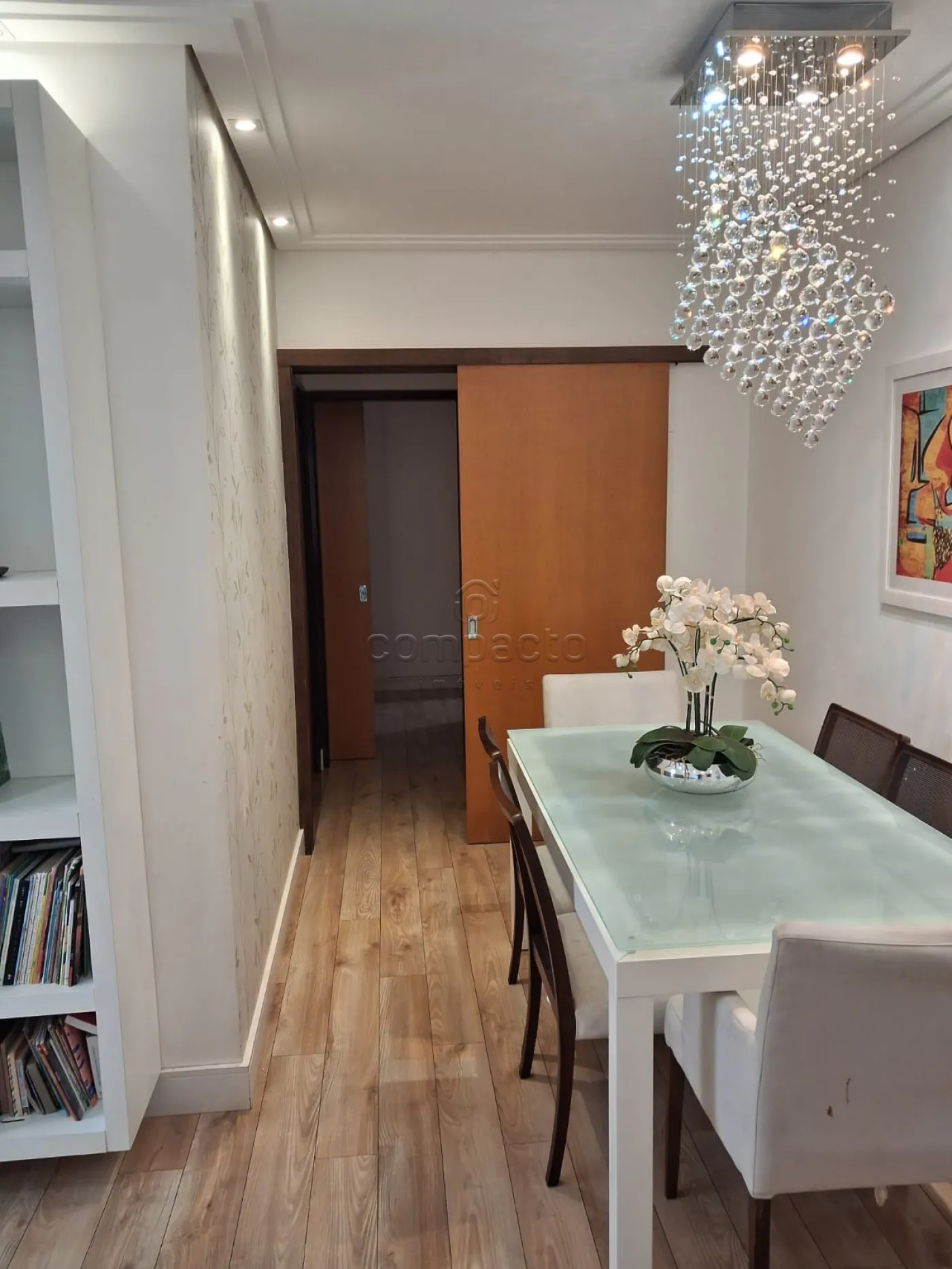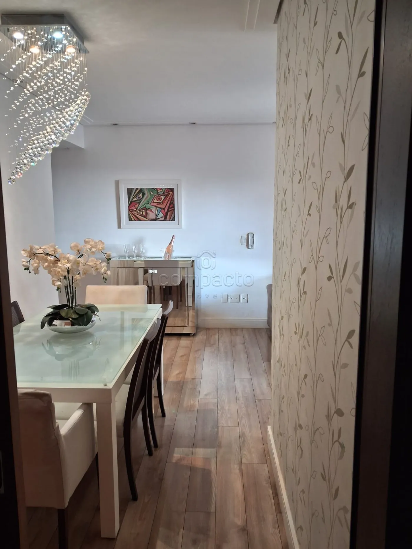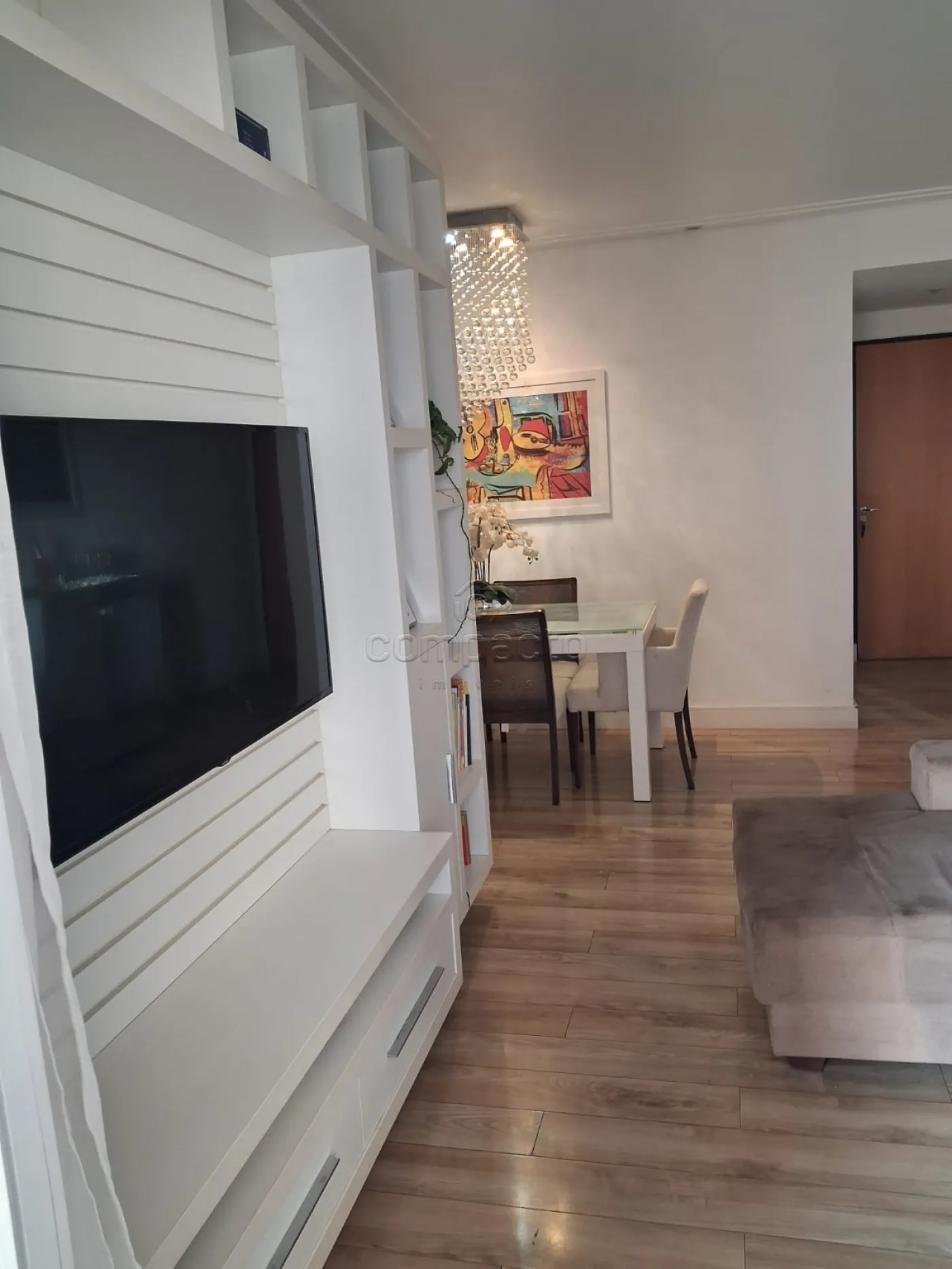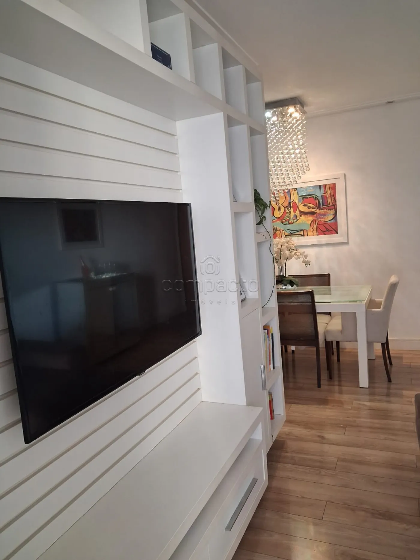 Sala de TV integrada com sala de jantar, cozinha reservada, lavanderia, 2 banheiros, 2 vagas de garagem fixas e fácil acesso. Armários planejados em todos os cômodos, ar condicionado em todos os cômodos, chão revestido de madeira em estado perfeito todos os ambientes, projeto de iluminação atual, apartamento face sombra.