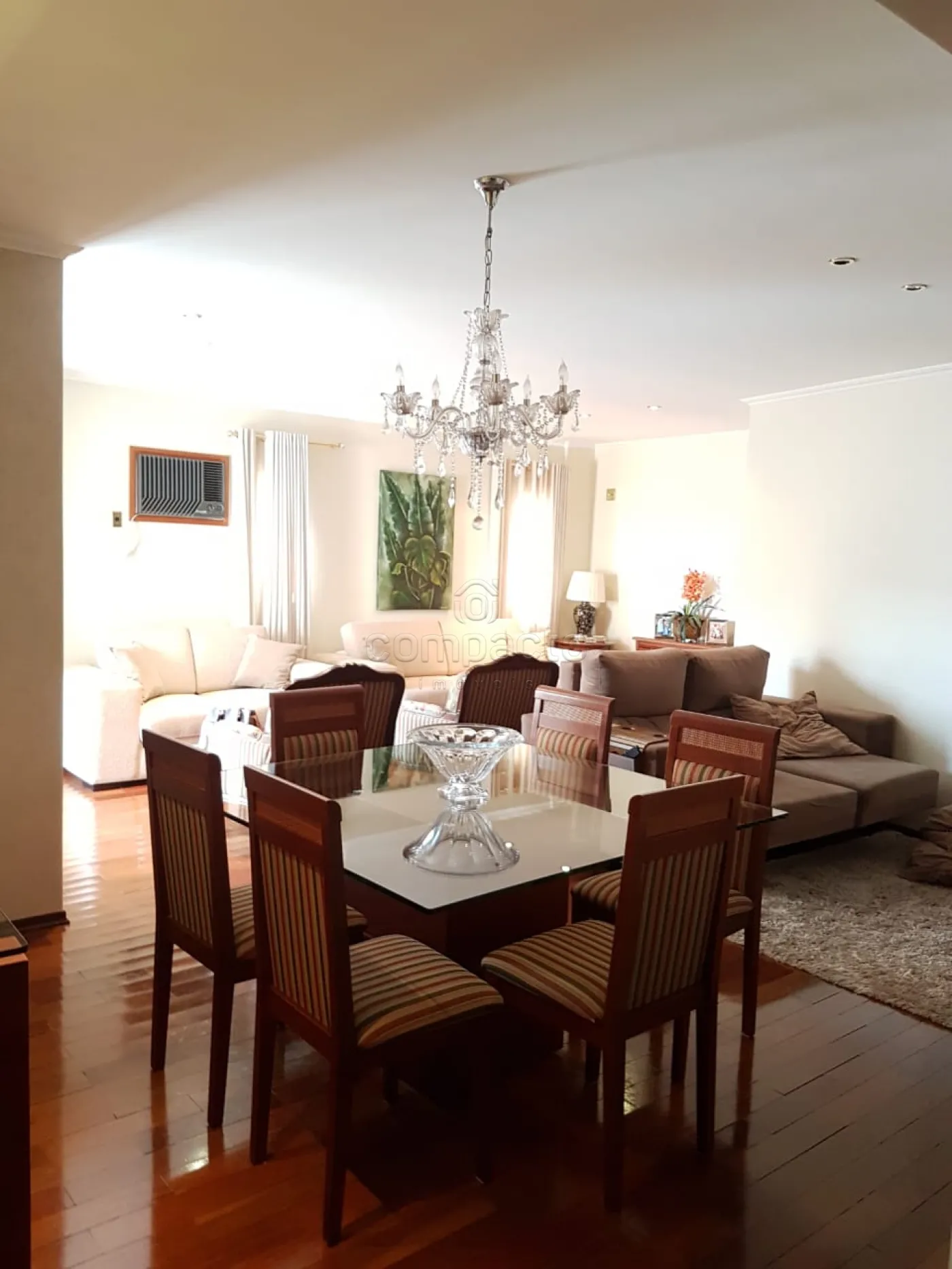 Apartamento no Centro da Cidade com 3 suítes (1 sendo suíte e closed), todos com armários embutido de madeira mesmo; 3 salas; cozinha planejada; banheiro empregada, dispensa ou quarto empregada; 2 sacadas e 2 vagas de garagem.