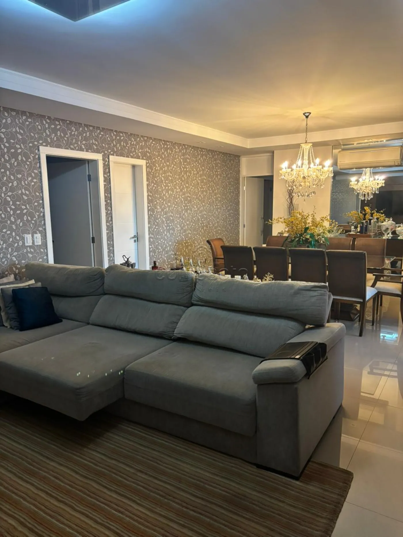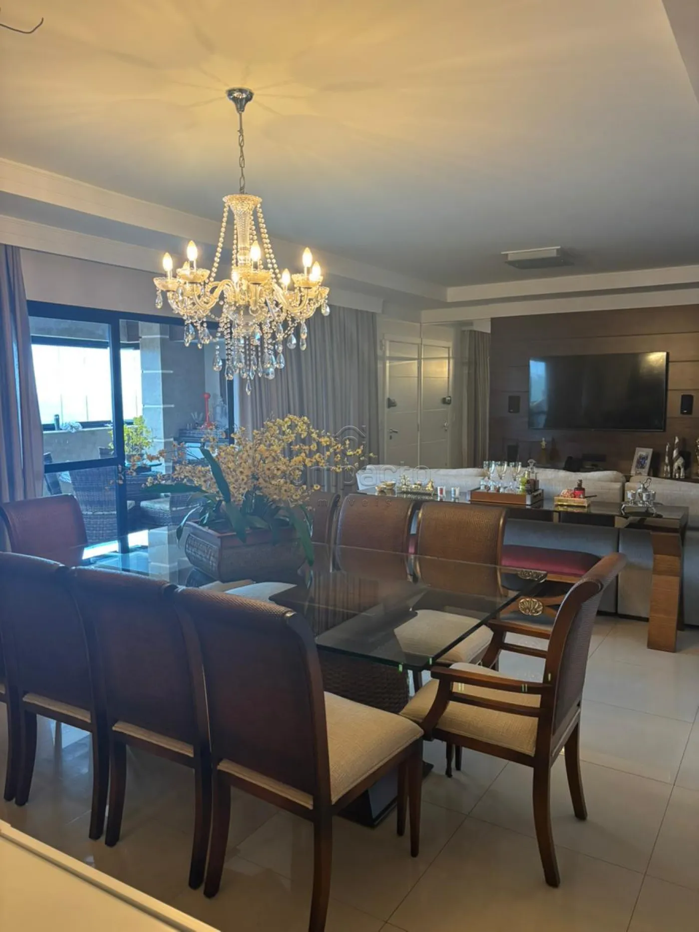 Apartamento semi-mobiliado com 3 dormitórios sendo 1 suíte e 2 tipo apartamento, sala para 3 ambientes com painel para TV, varanda fechada em vidro, cozinha rica em armários planejados, lavanderia com armários, lavabo, iluminação em Leds, Sanca e Porcelanato.