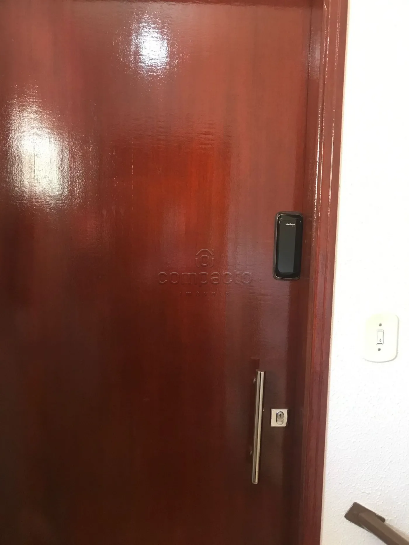 Prédio com câmeras de segurança, fechaduras eletrônicas modernas.