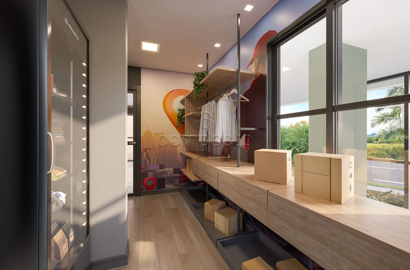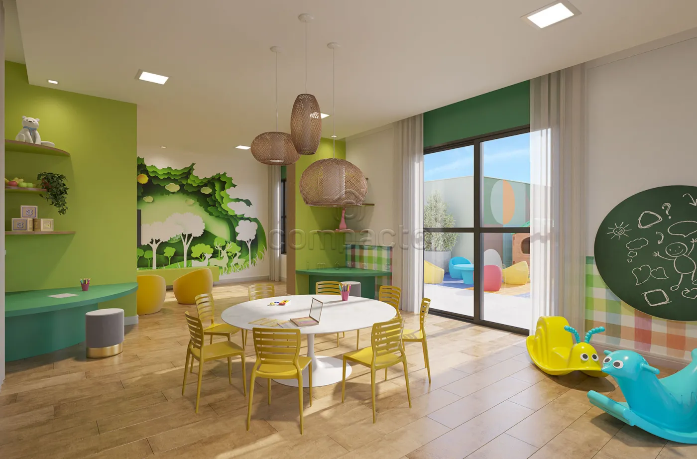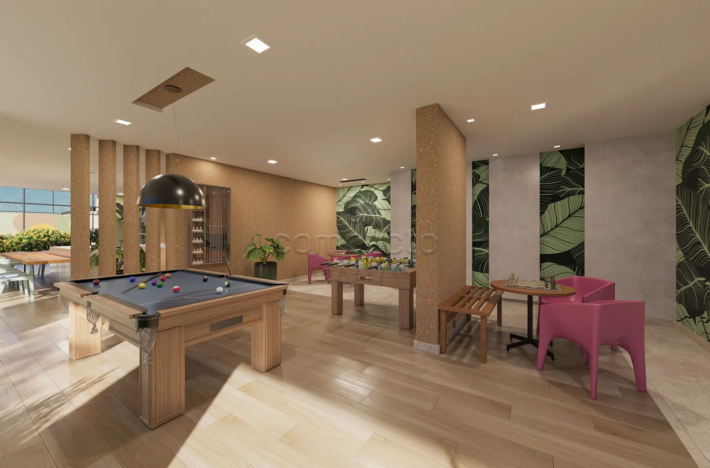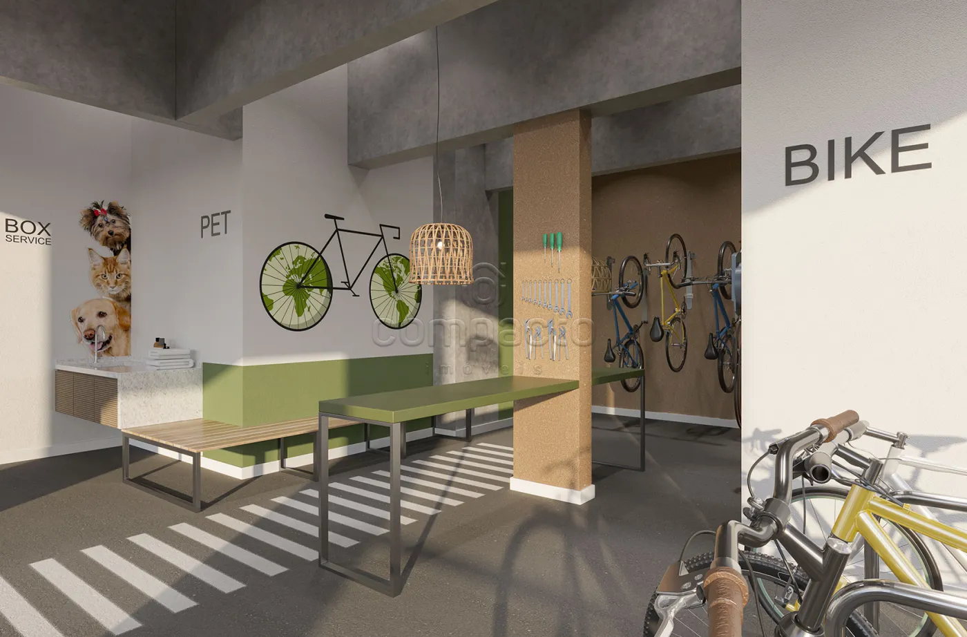 Condomínio possui: Portaria 24h, academia, piscina, box service, espaço gourmet, salão de festas, brinquedoteca, sala de jogos, pet place e quadra poliesportiva.