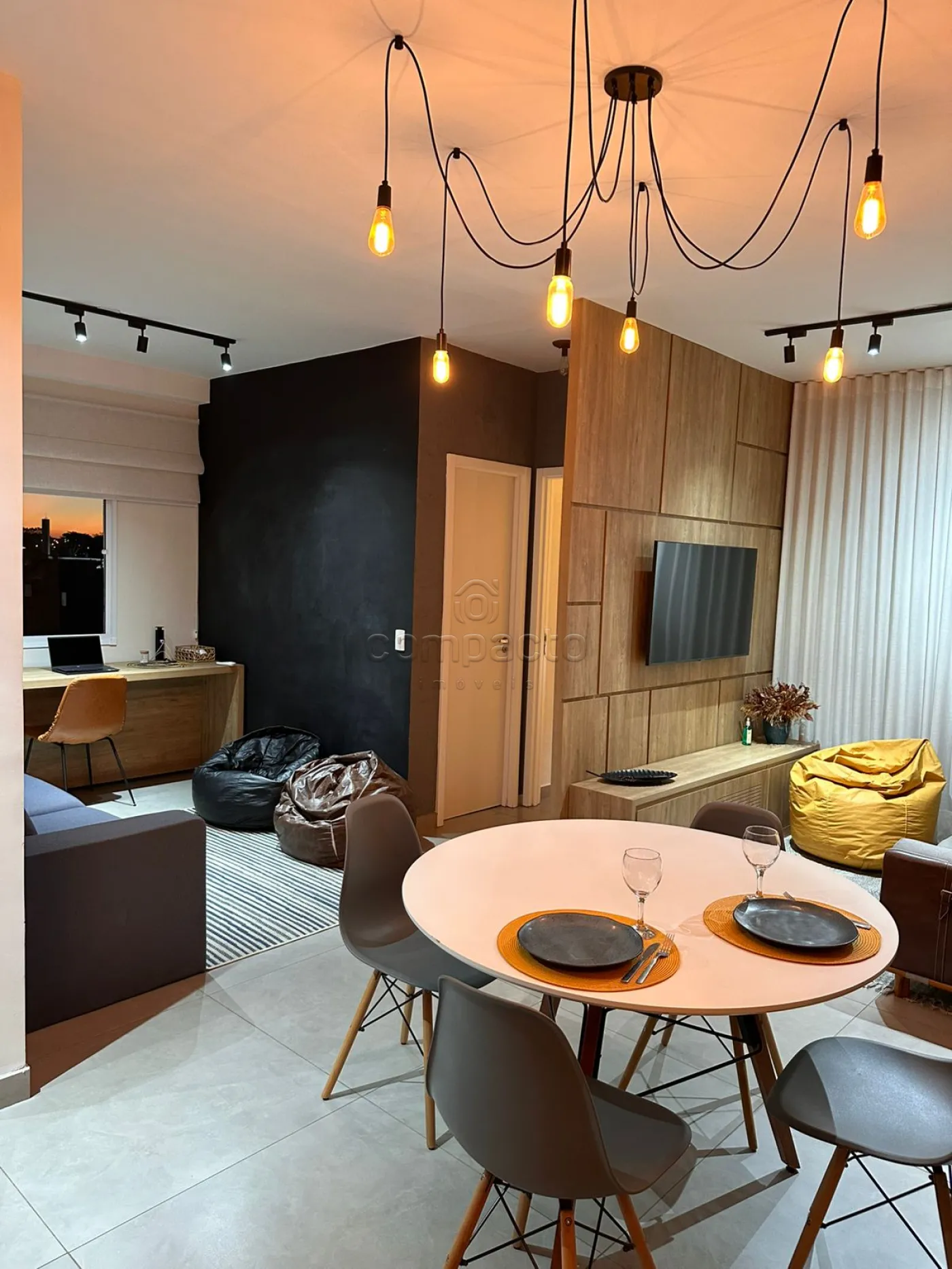Projeto moderno, iluminação planejada para conforto com luzes quentes e ambientes integrados.