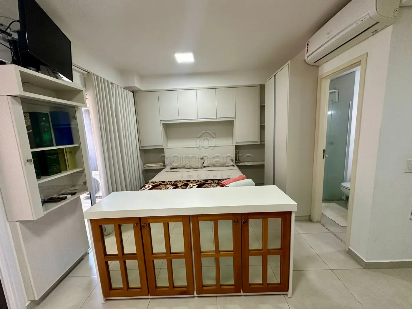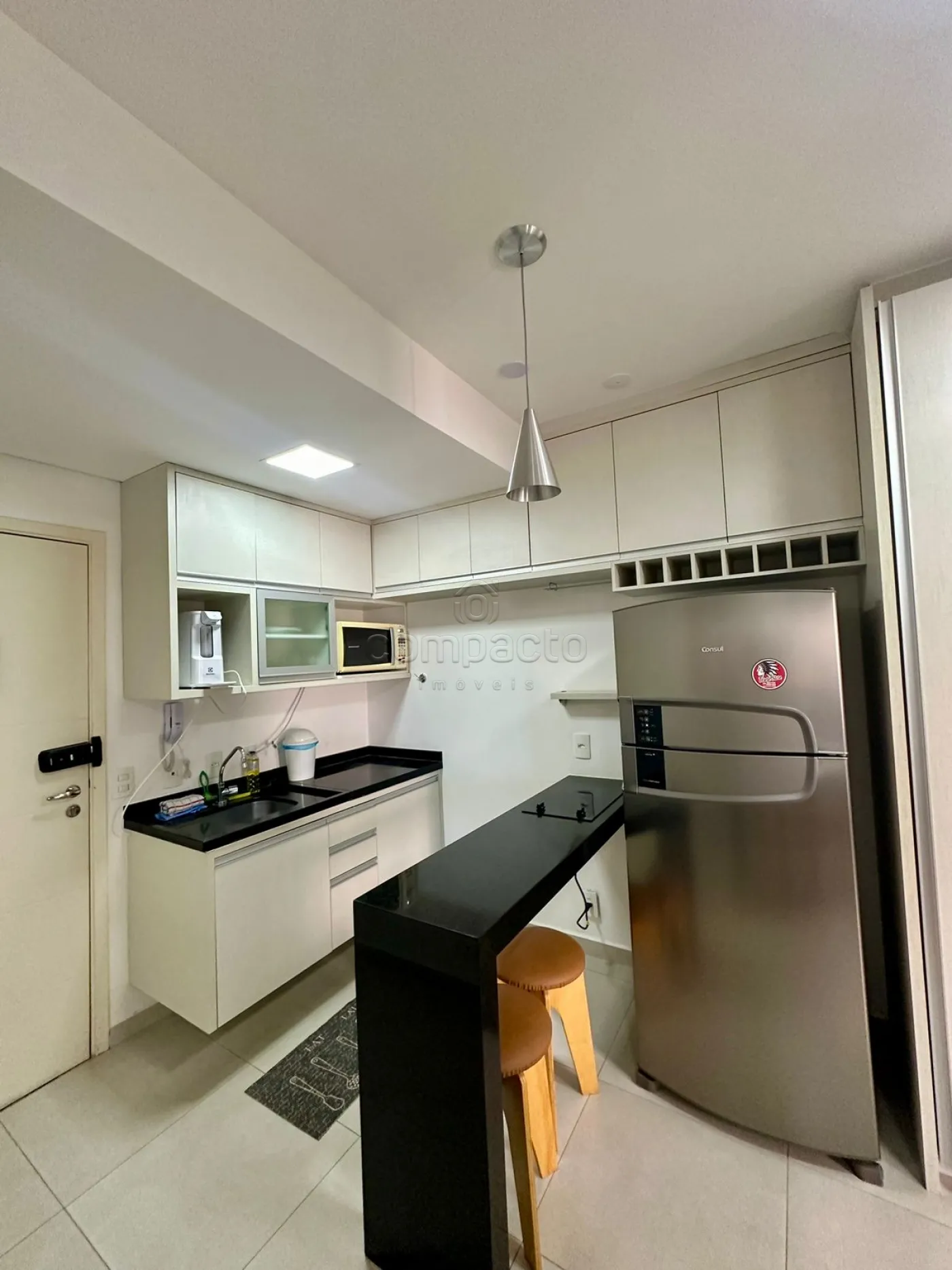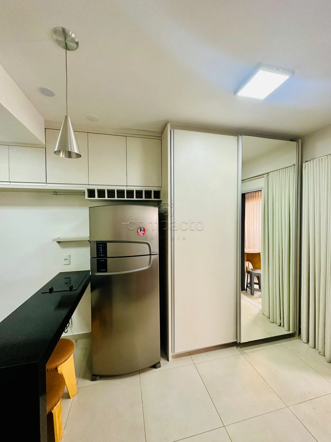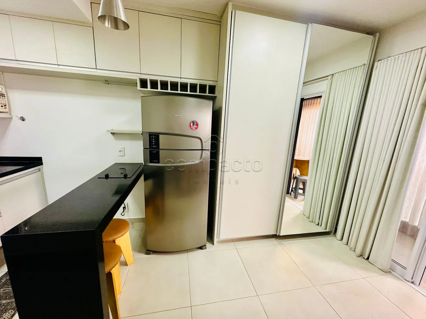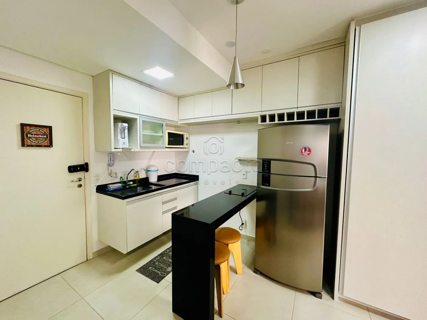Apartamento Studio mobiliado com 1 Dormitório, Sala com Sacada, Cozinha Planejada e WC Social.