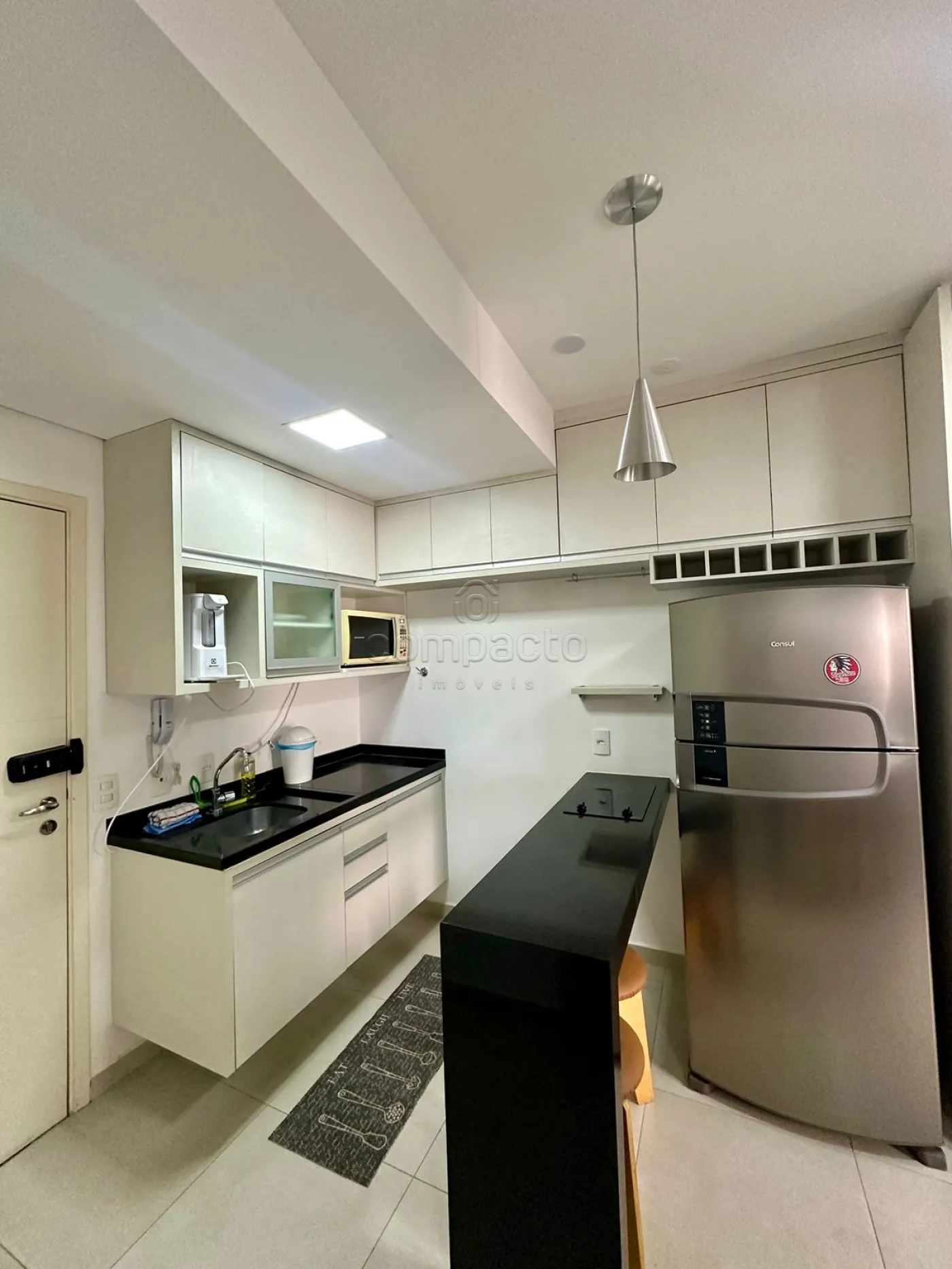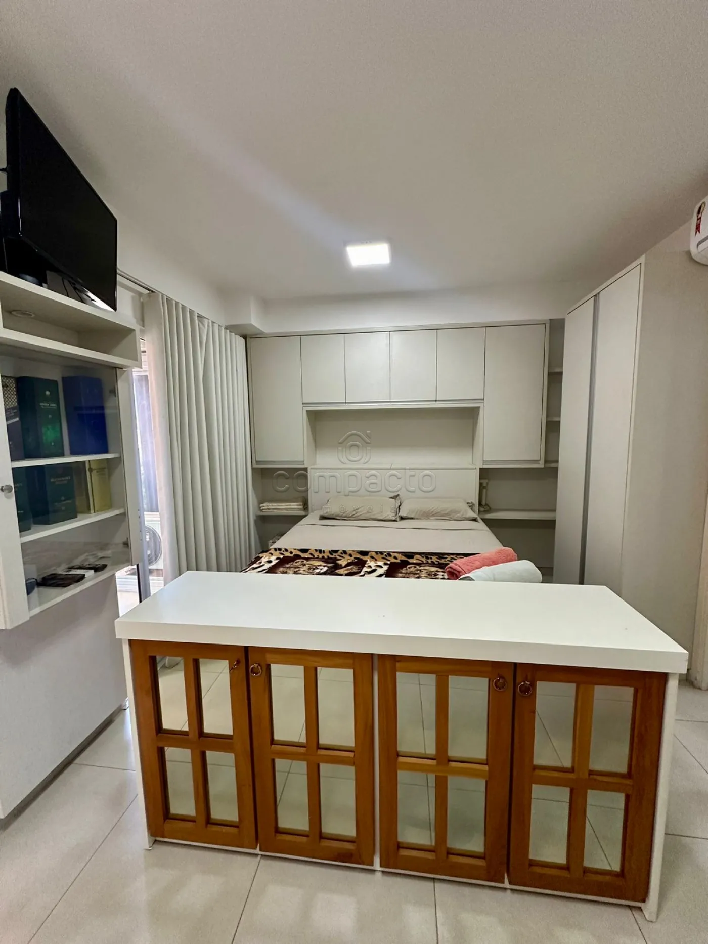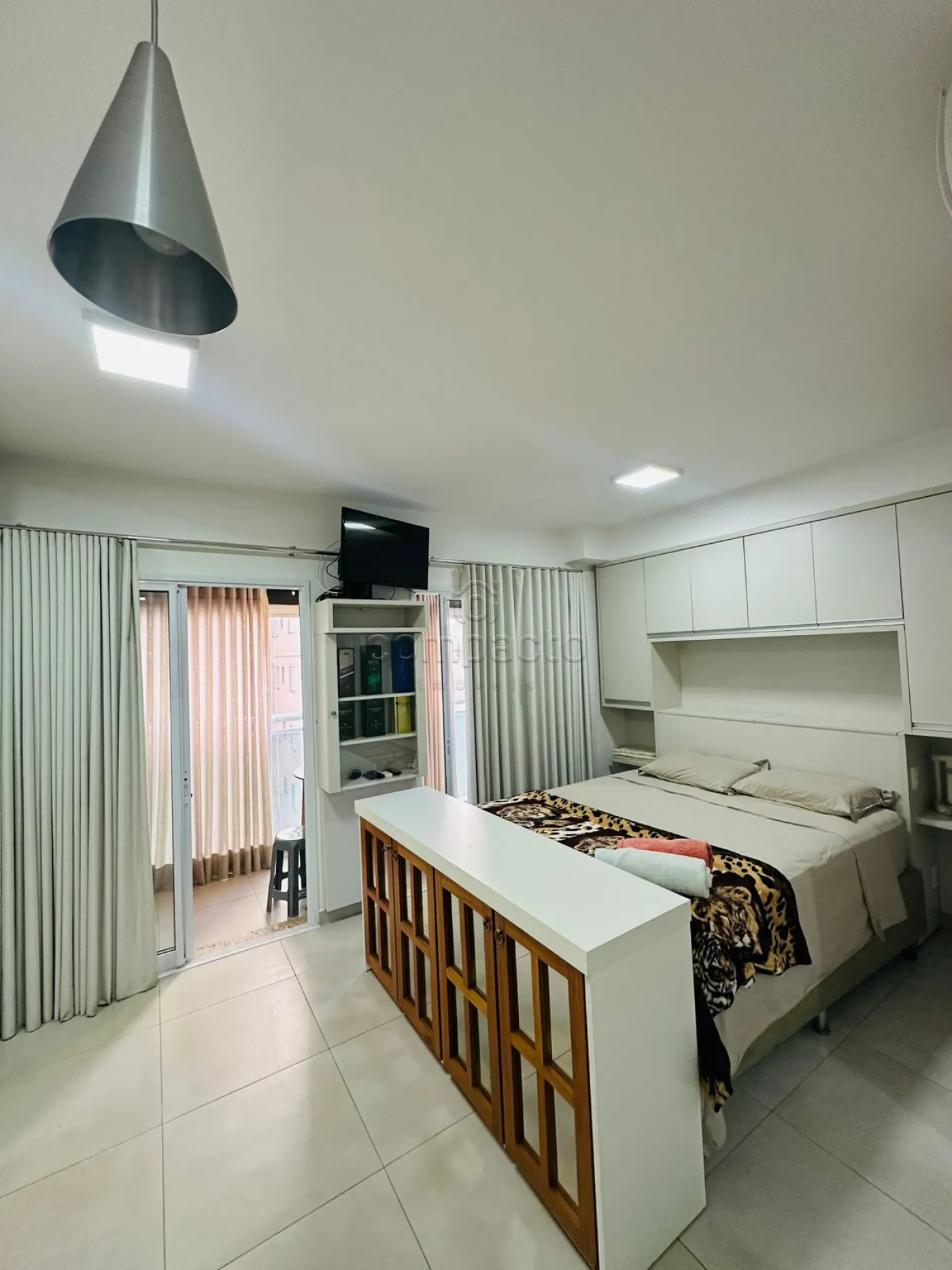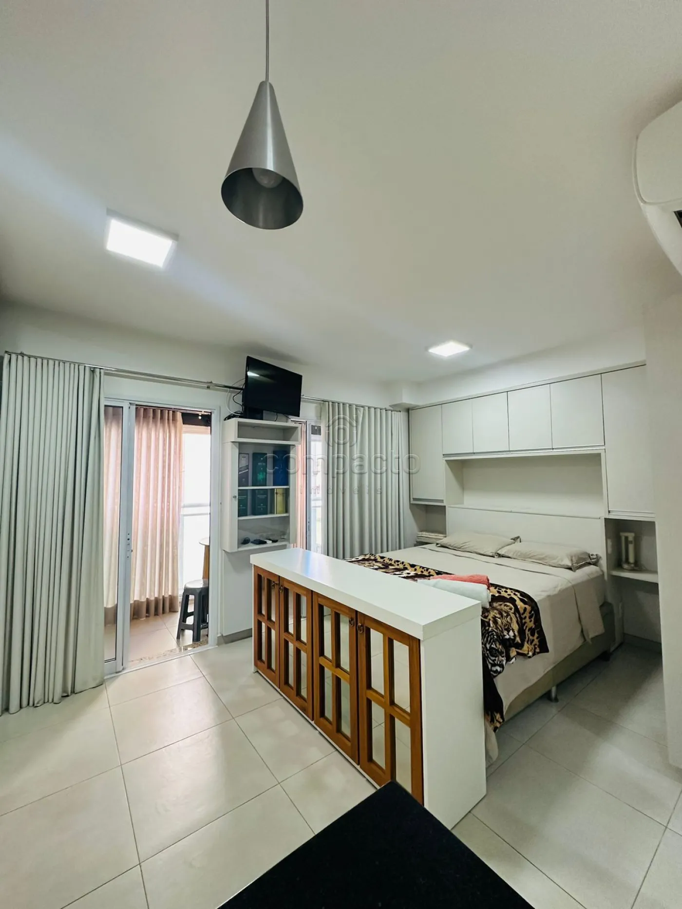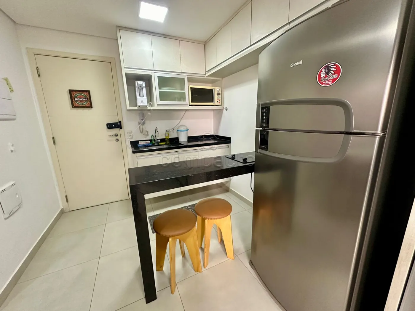 Apartamento Studio mobiliado com 1 Dormitório, Sala com Sacada, Cozinha Planejada e WC Social.