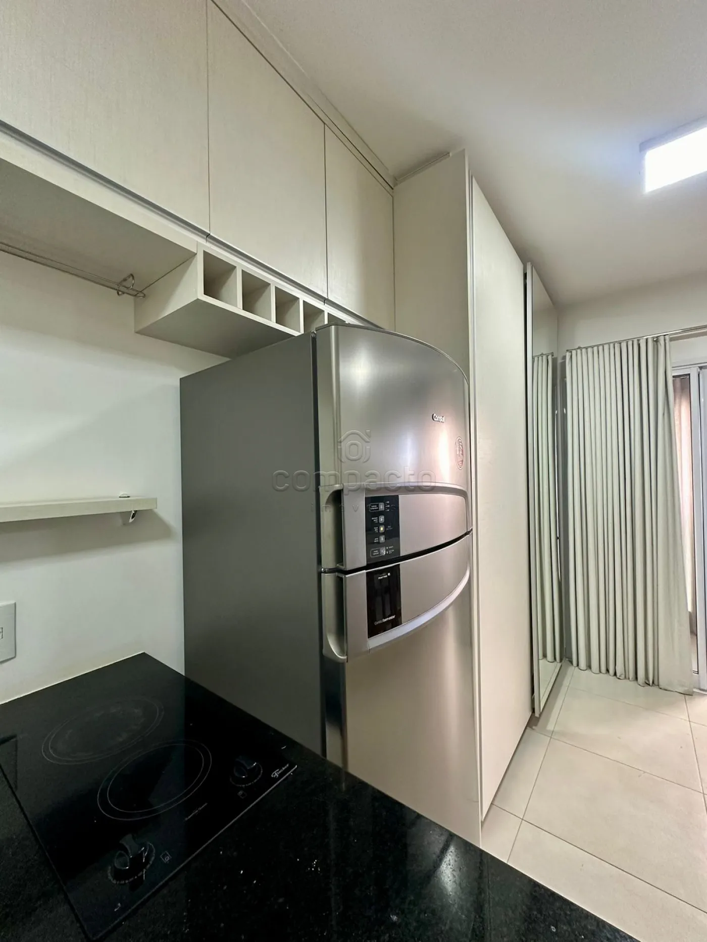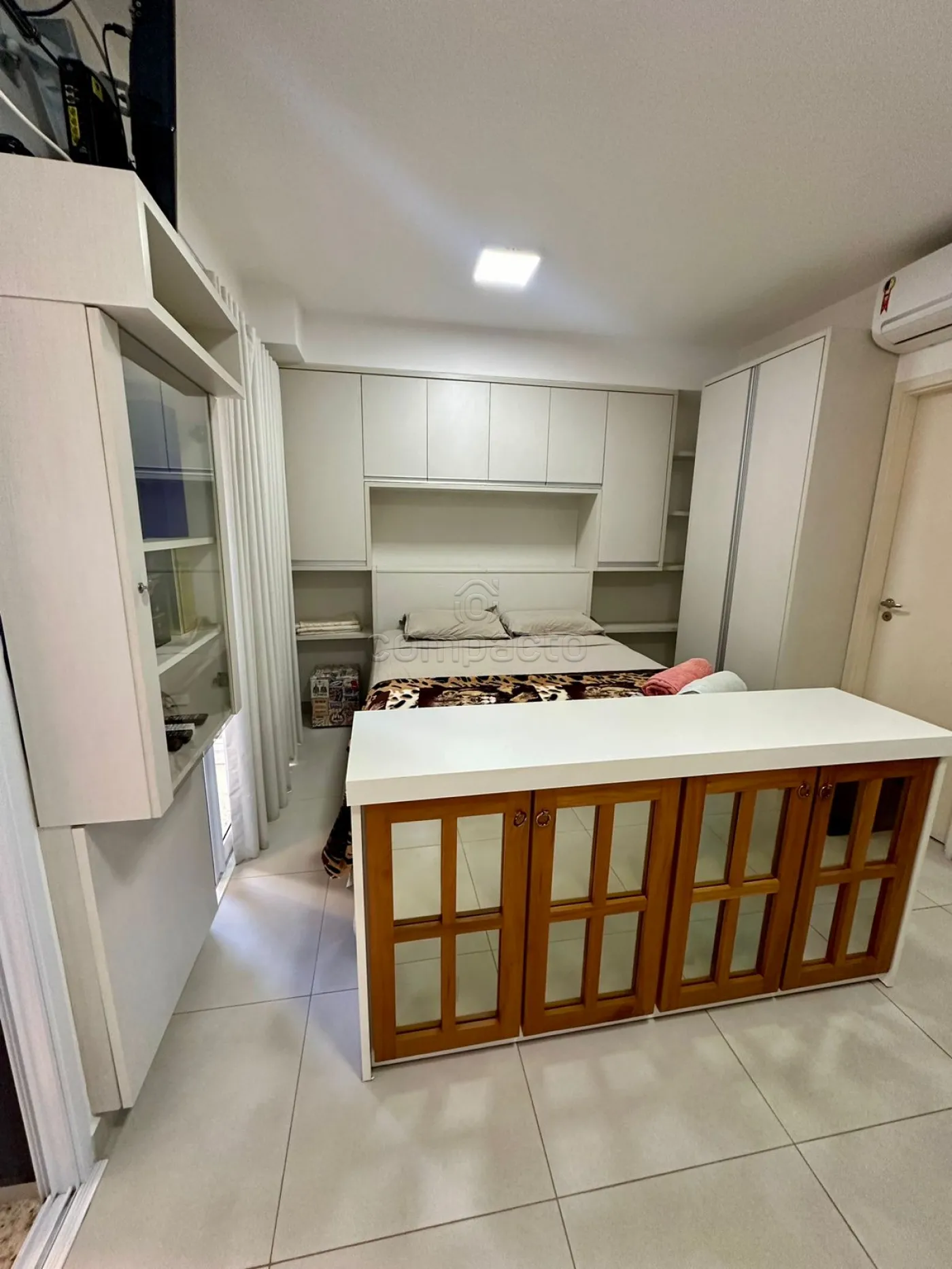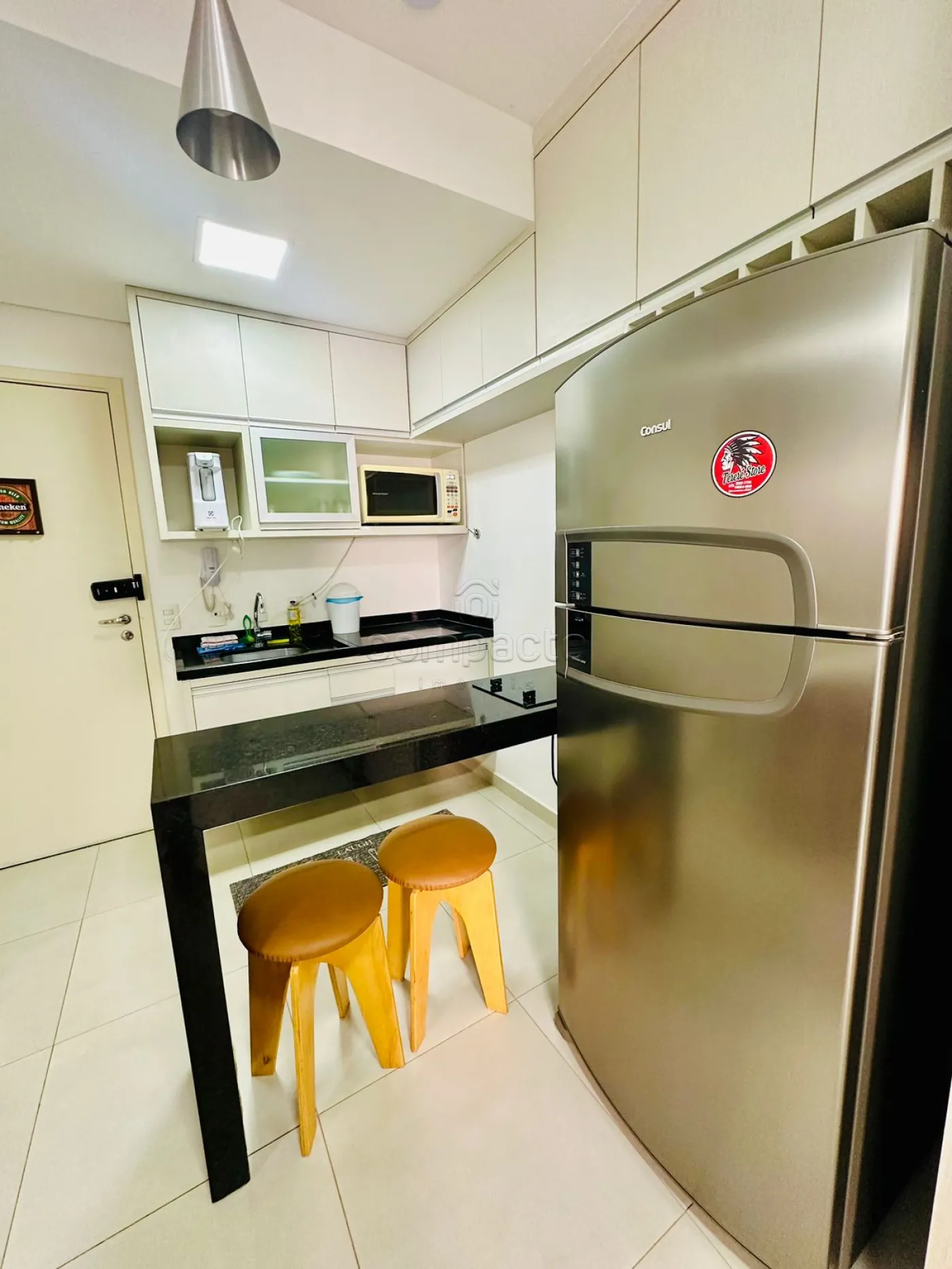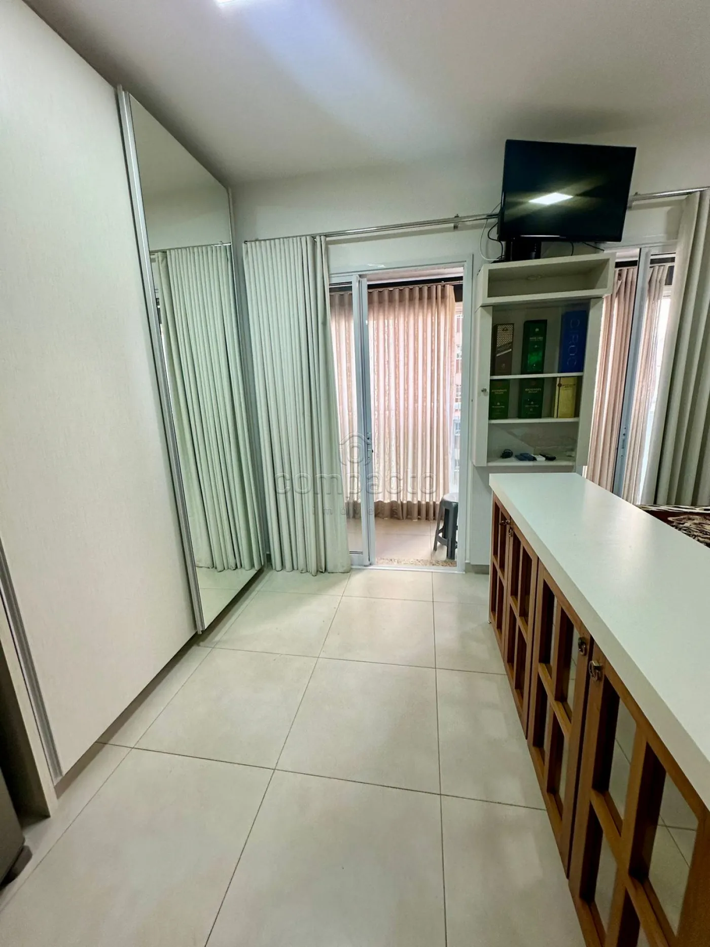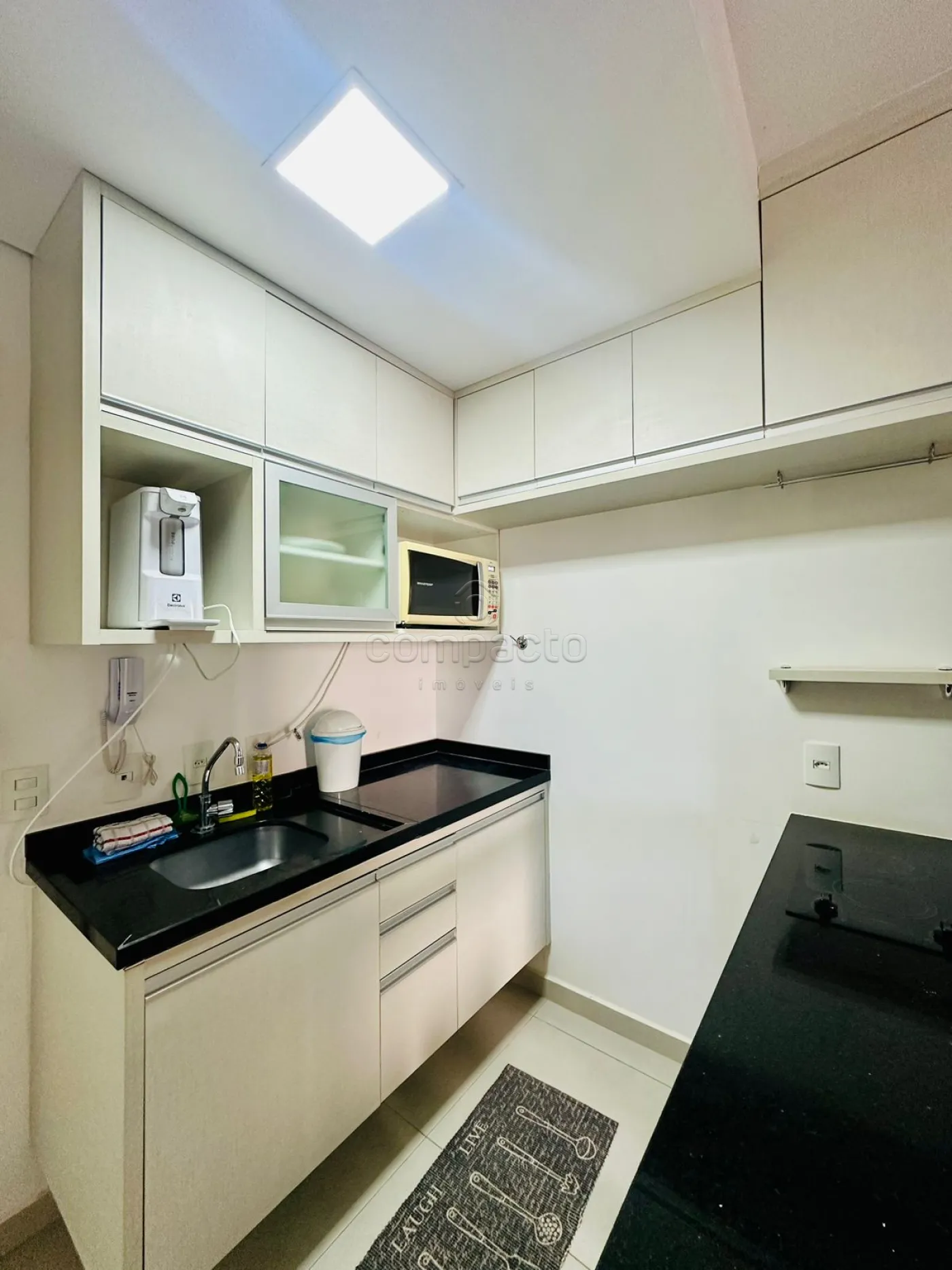 Apartamento Studio mobiliado com 1 Dormitório, Sala com Sacada, Cozinha Planejada e WC Social.