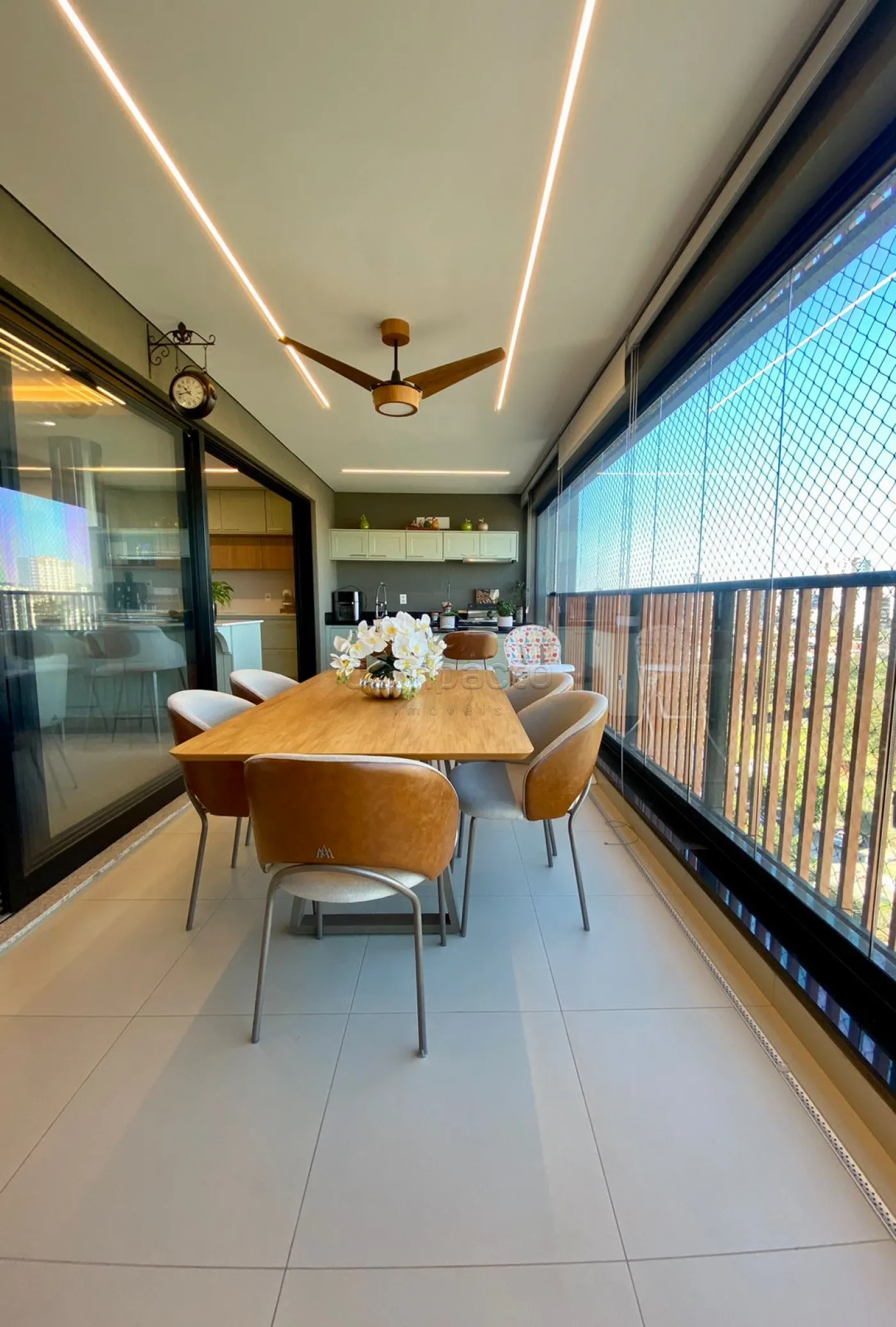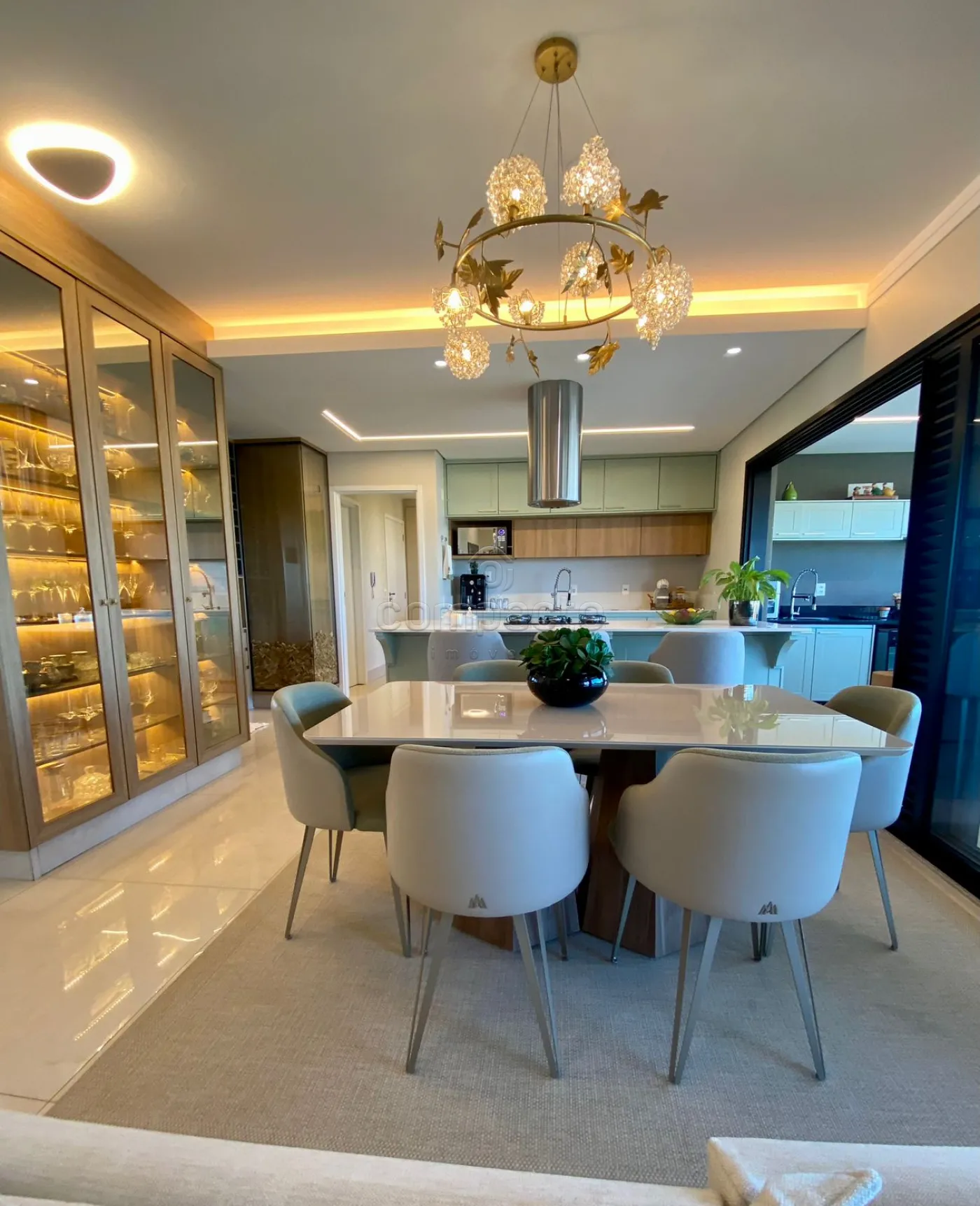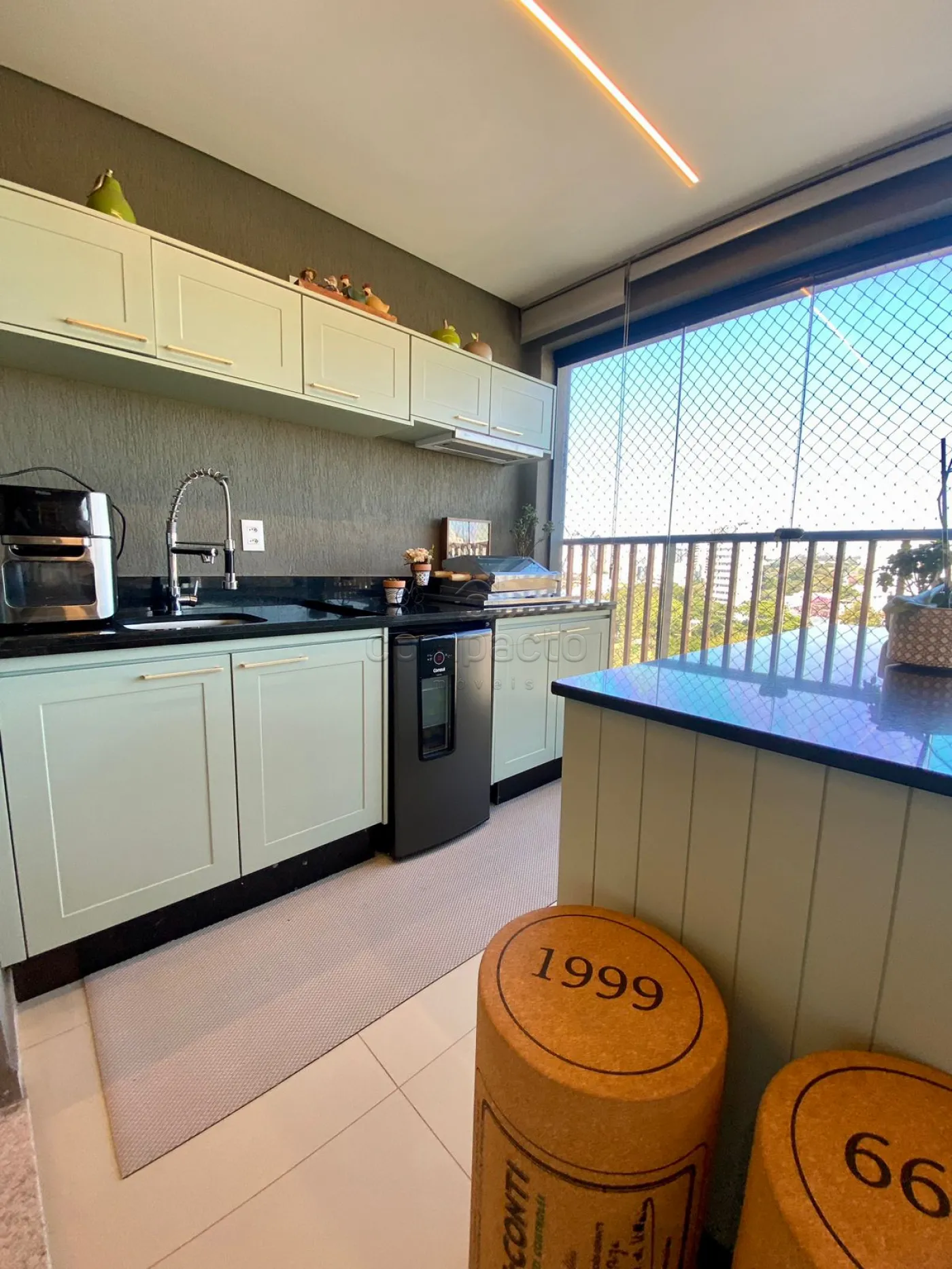 Rico em armários planejados, adega diferenciada, ar-condicionado em todos os ambientes, despensa, lavabo, lavanderia individual e completa, sacada espaçosa, totalmente equipada, 3 suítes, sendo 1 suíte máster com duas cubas e dois chuveiros.