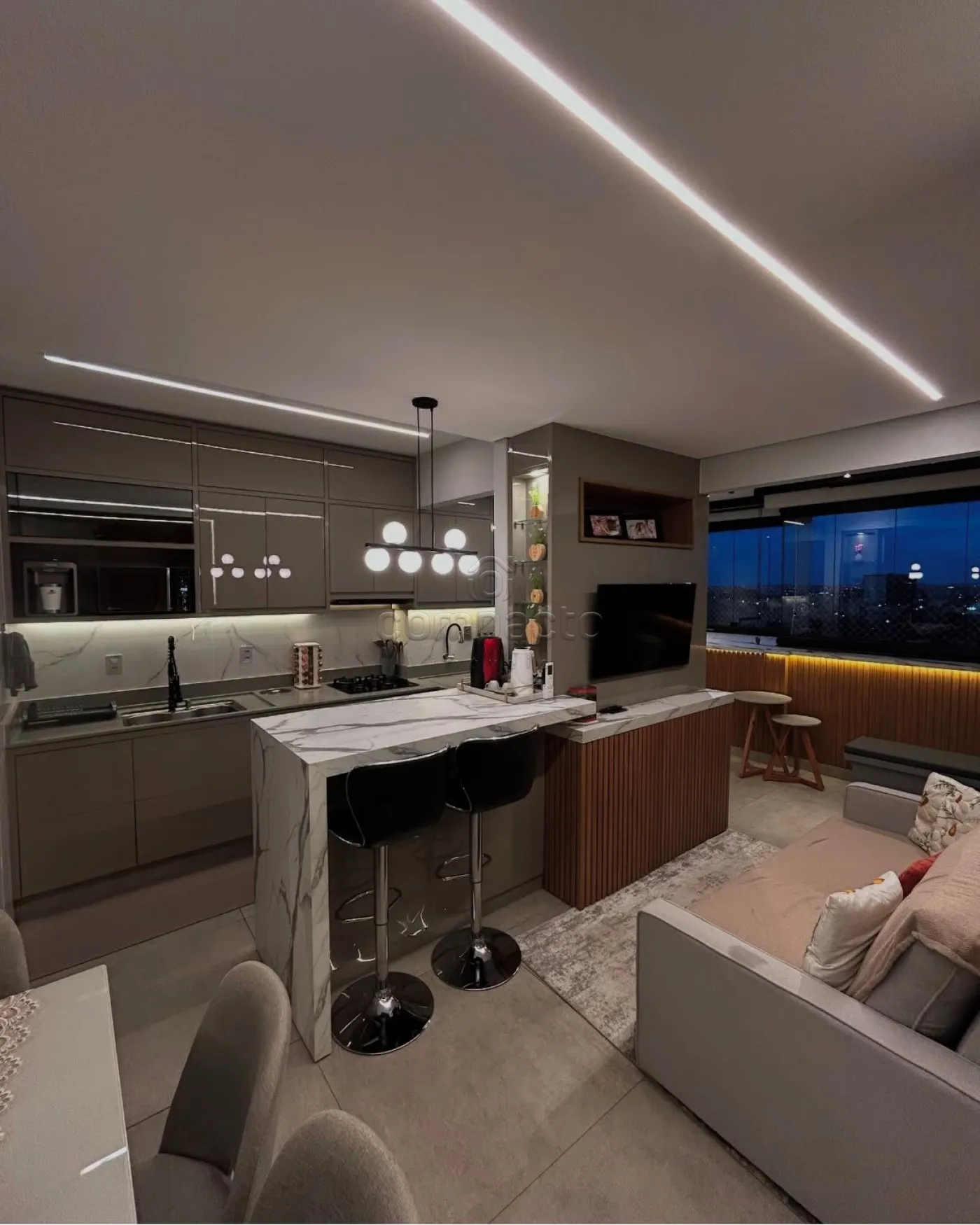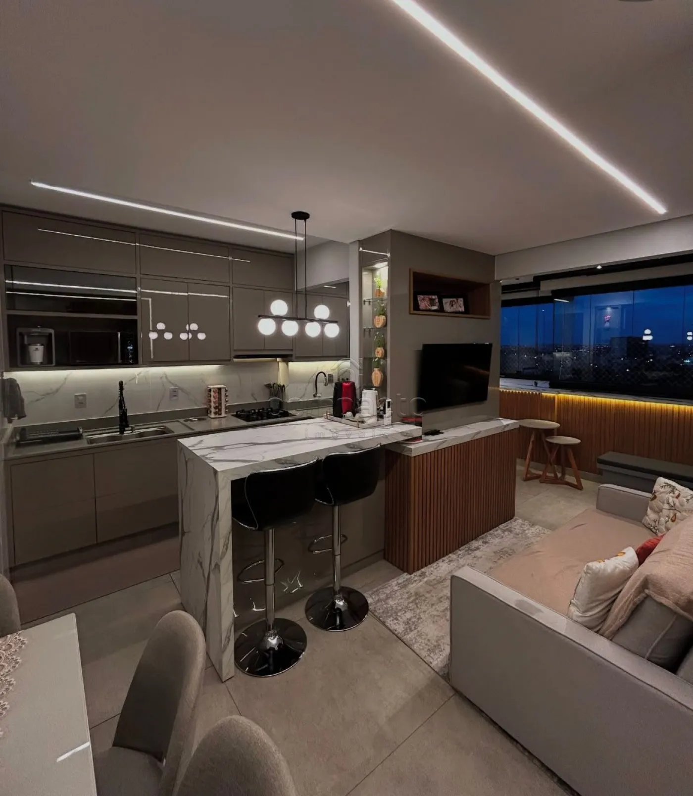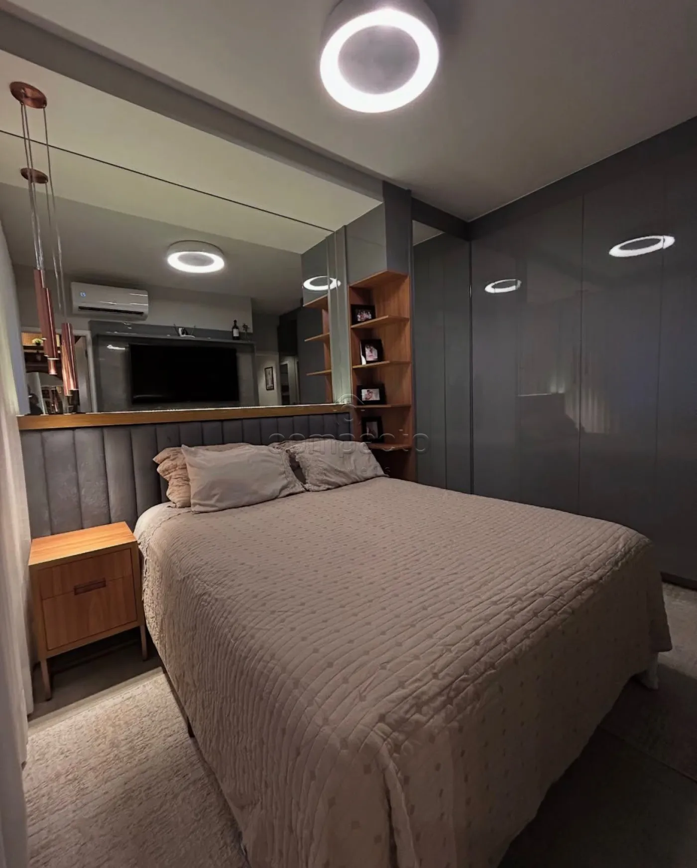Apartamento na zona sul. Possui: 2 Quartos, 2 banheiros, varanda gourmet, todo na marcenaria laqueada, rico em espelhos, bancada da cozinha e banheiros no quartzo, iluminação em led, cristaleira e churrasqueira com Grill.