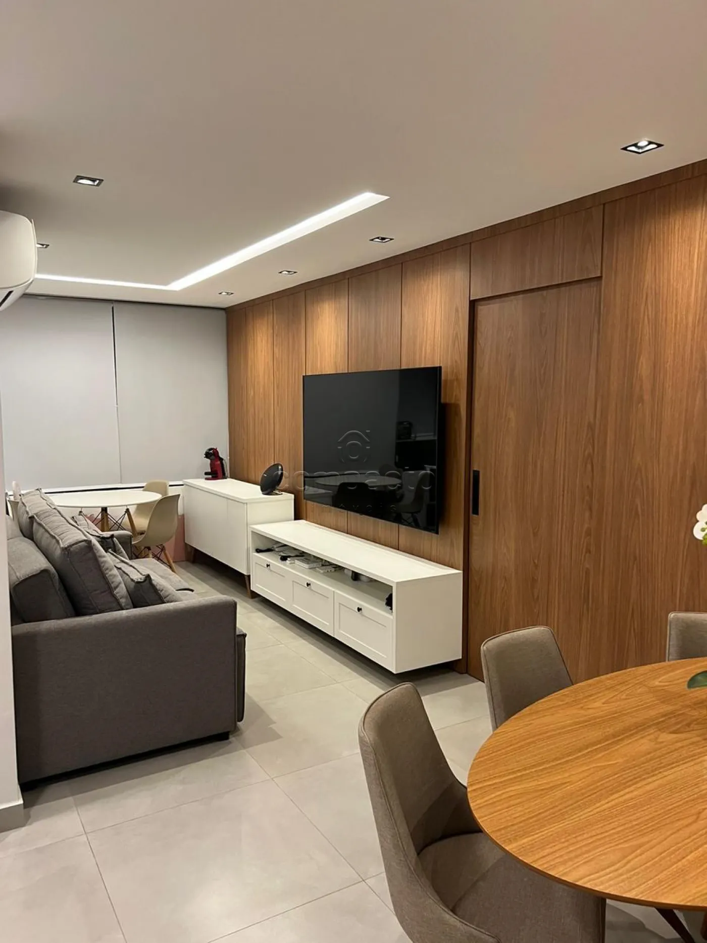 Apartamento todo com gesso rebaixado e iluminação embutida, rico em armários. Possui 2 quartos, sendo 1 suíte, 1 banheiro social, sala para 2 ambientes, sacada gourmet com churrasqueira à carvão e fechada com cortina de vidro, cozinha com armários planejados possui forno a gás com grill, cooktop, 1 vaga de garagem.
