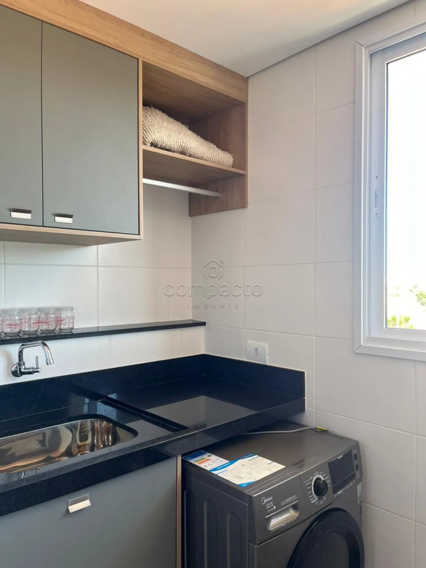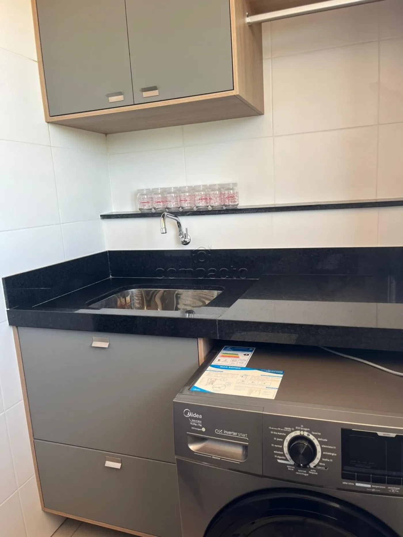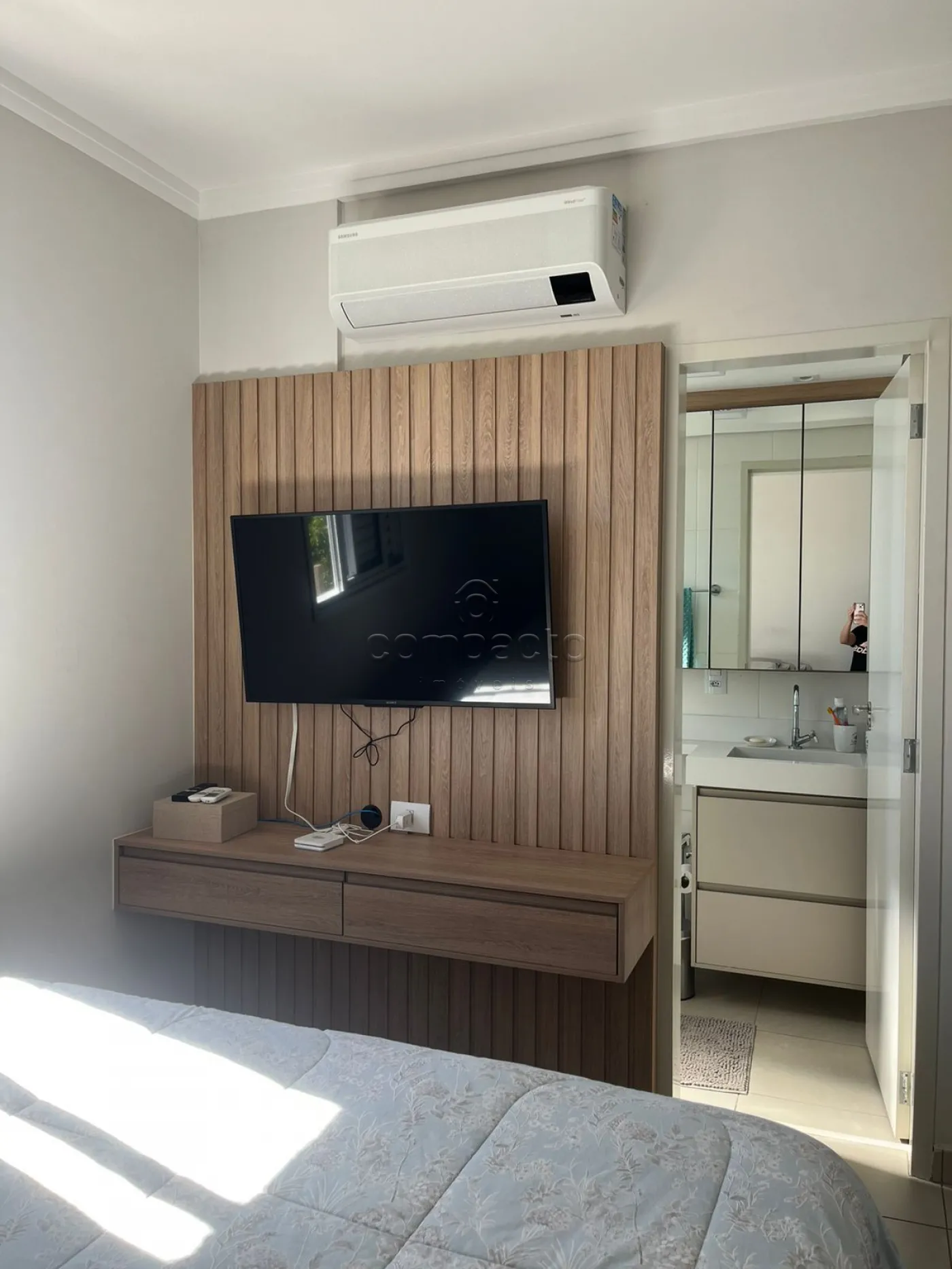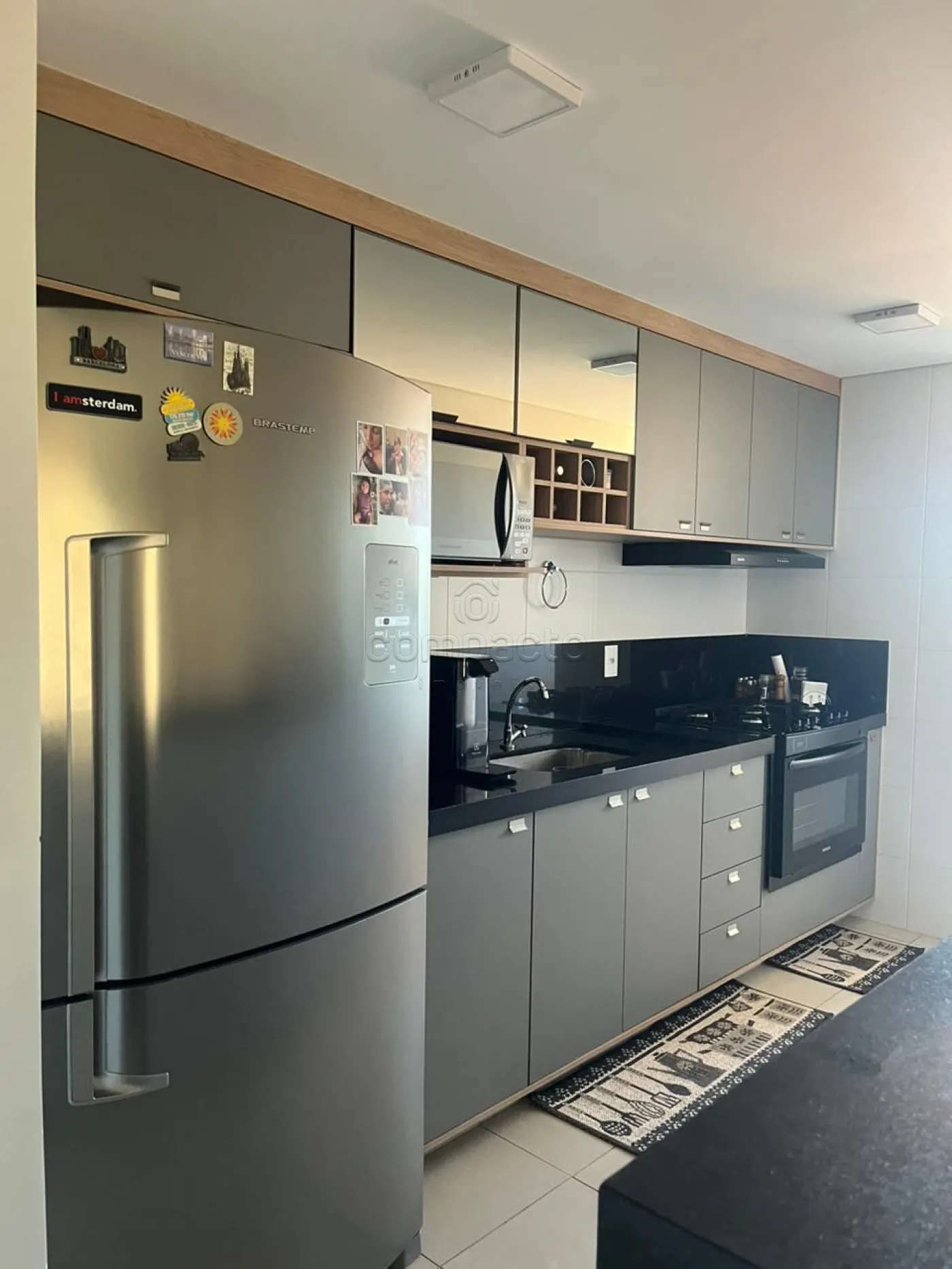 Apartamento rico em armários planejados, com 2 dormitórios (sendo 1 suíte), 1 banheiro social e cozinha integrada com a sala.