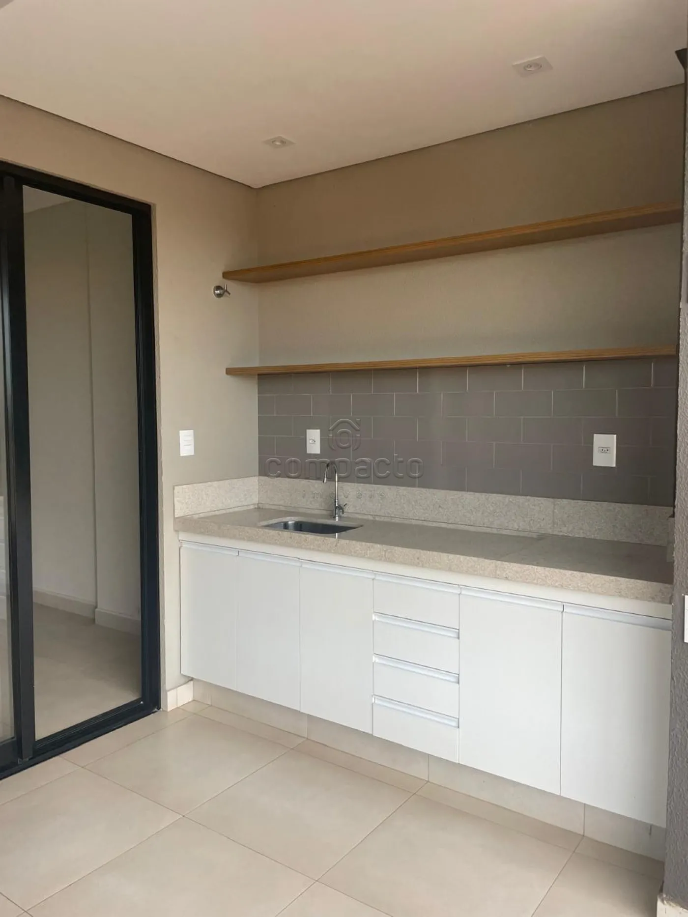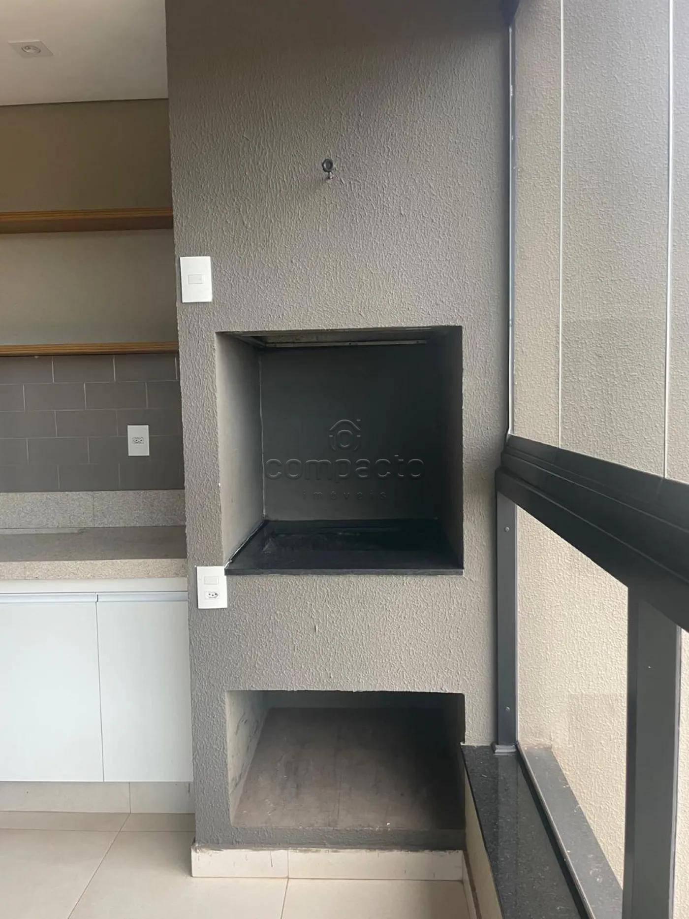Possui sacada gourmet ampla com churrasqueira de alvenaria.