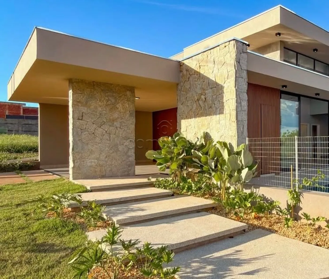 Belíssima residência térrea de arquitetura contemporânea, localizada no condomínio Botanic Residence, próximo ao Shopping Iguatemi, em São José do Rio Preto/SP. Situada em um lote de esquina, de frente para a área verde do condomínio, a casa oferece uma linda vista do pôr do sol. Possui 3 dormitórios, sendo 1 suíte máster com closet, amplo escritório, salas integradas, 4 vagas de garagem (2 cobertas e 2 descobertas), sistema fotovoltaico, piscina aquecida e acabamento de alto padrão em armários, revestimentos e metais. O terreno tem 417 m² e a área construída é de 250 m².