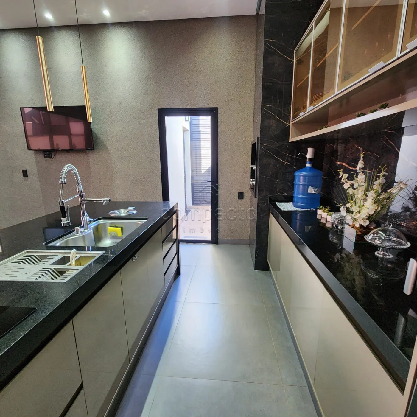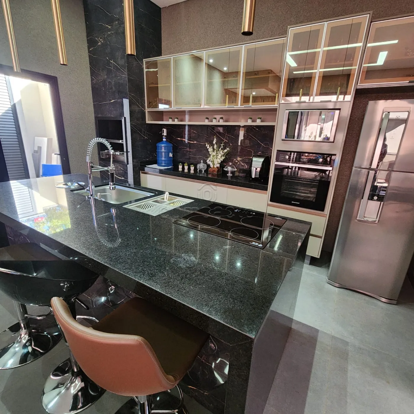 Casa em condomínio fechado com 3 suítes (todas com closet) 1 no térreo e 2 no piso superior, sala, cozinha, ambientes integrados, área de serviço, despensa, área gourmet com fogão, forno e churrasqueira, piscina, possui 12 placas de energia fotovoltaica e 2 vagas de garagem.