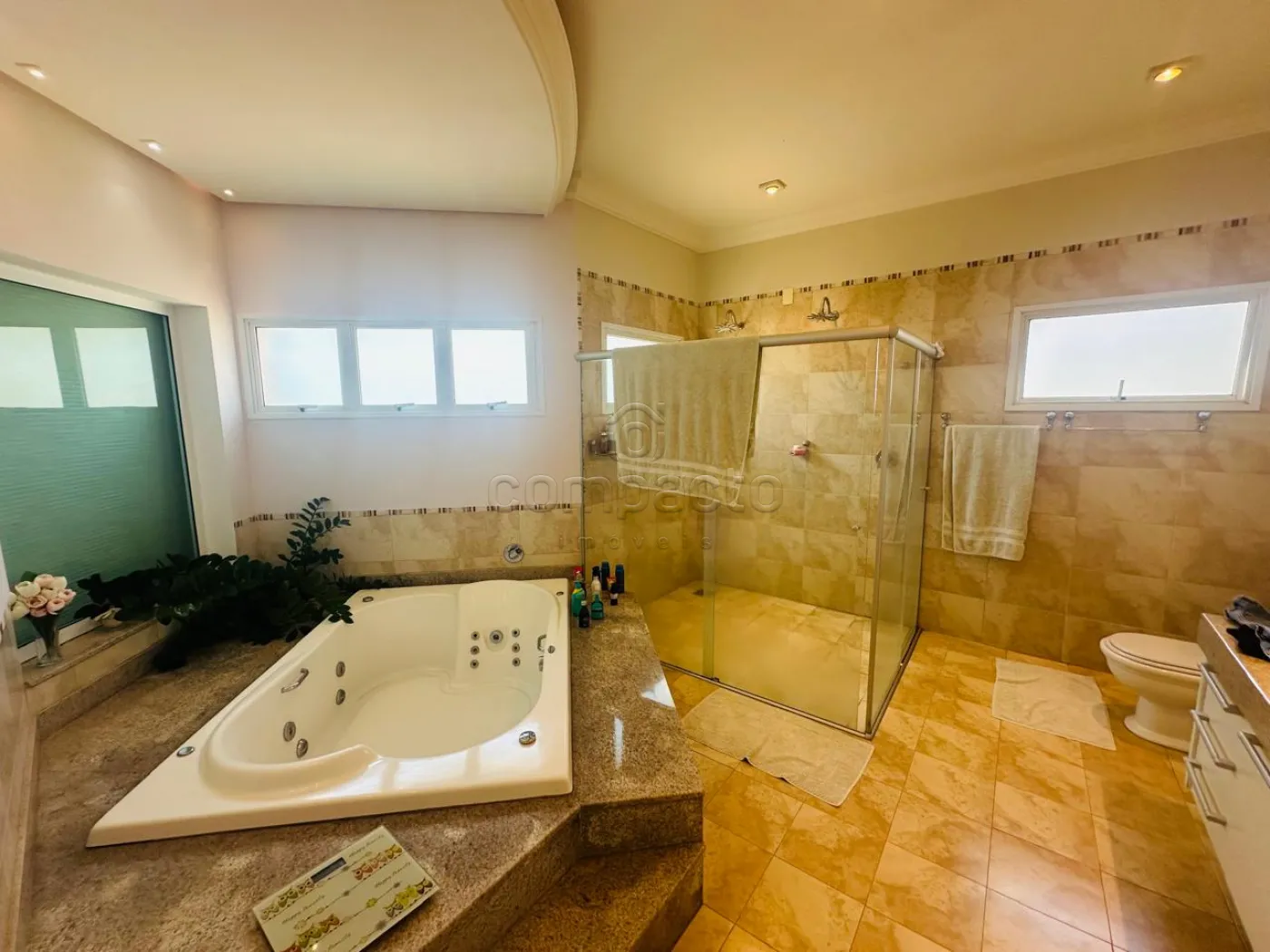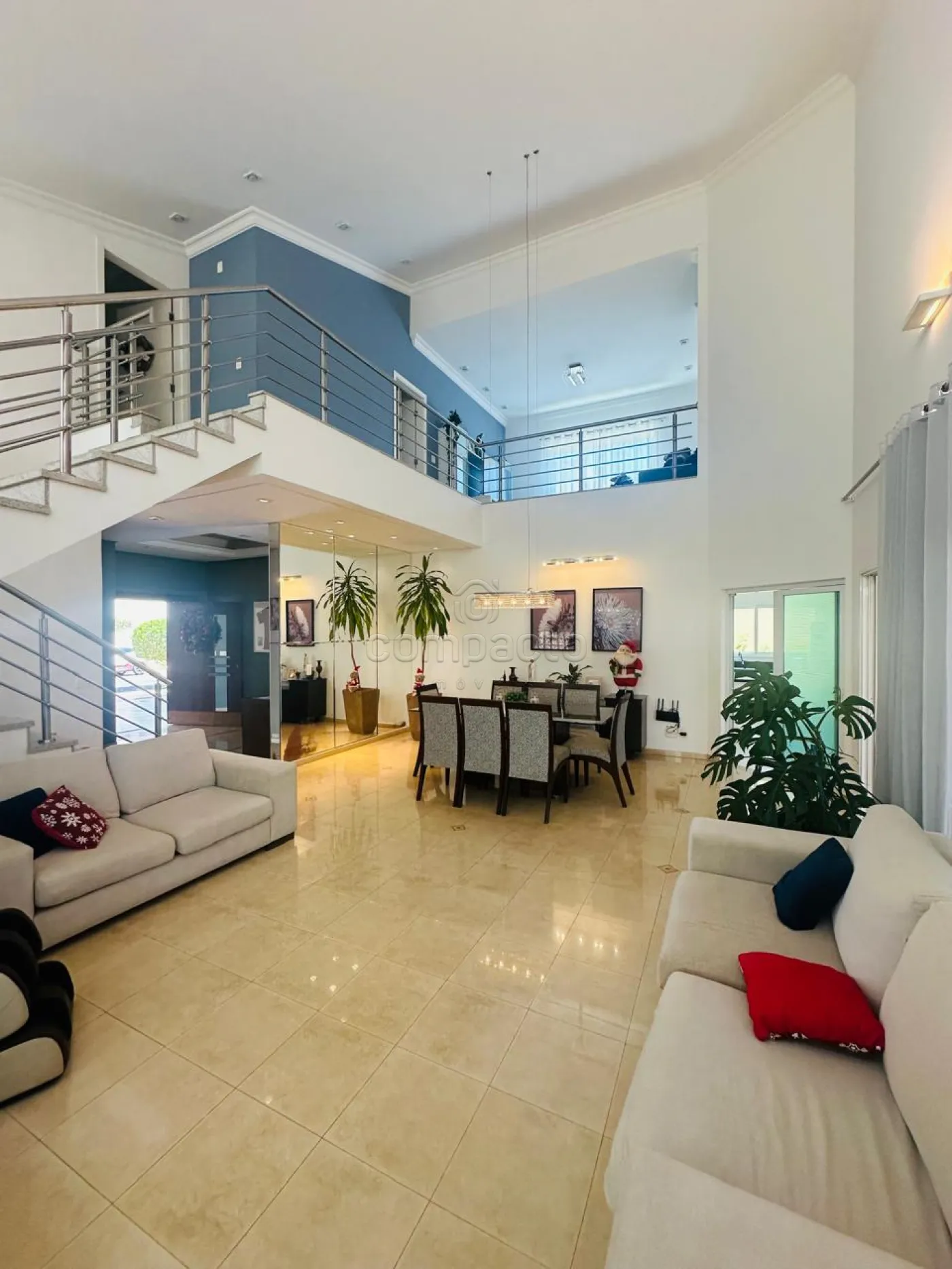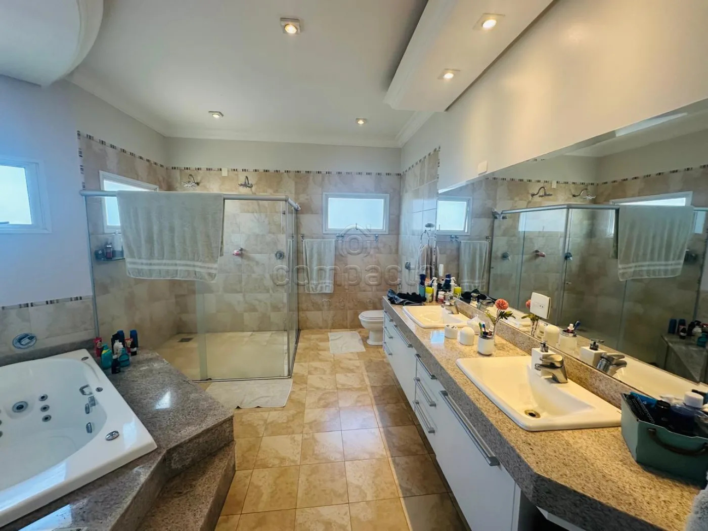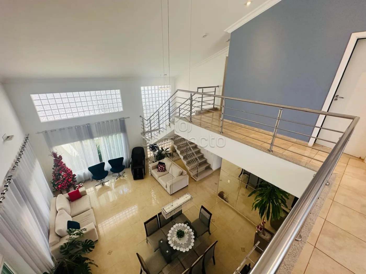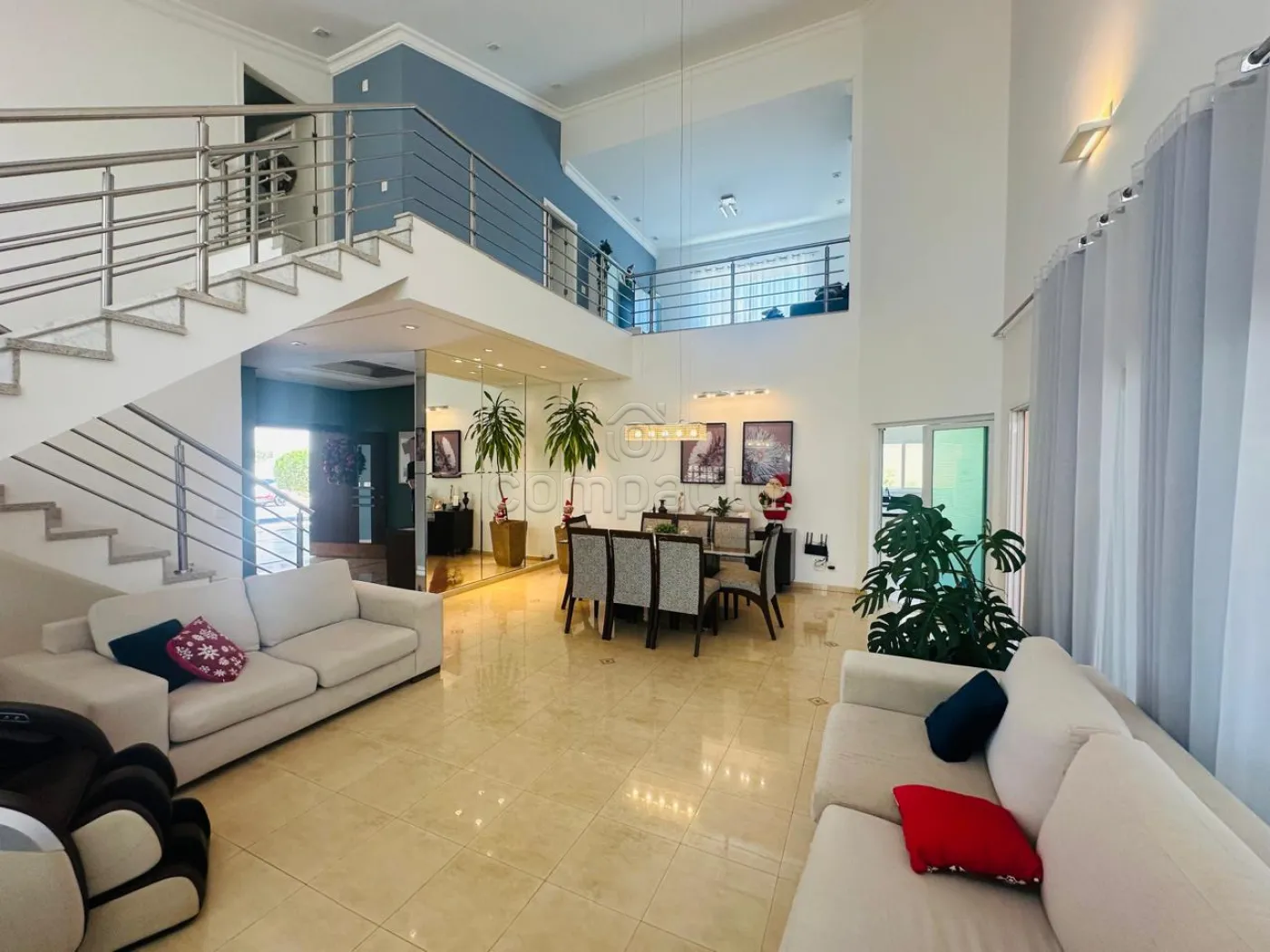 Sobrado com quatro dormitórios, sendo uma suíte máster com closet, hidromassagem, cuba e ducha dupla, além de varanda privativa; uma suíte com closet e varanda; e dois dormitórios estilo americano, ambos com closet e varanda. Conta ainda com sala íntima e copa. No piso inferior, há uma ampla sala para dois ambientes com pé-direito alto, dois escritórios climatizados com armários planejados, cozinha espaçosa e rica em armários com despensa, lavanderia ampla e dependência de funcionário com banheiro. A área de convivência inclui sala de TV integrada à varanda, ampla varanda com churrasqueira e balcão refrigerado, piscina aquecida com acesso à sauna, lavabo e banheiro para atender à área de lazer. O imóvel possui ainda energia fotovoltaica, sistema de aquecimento de água, garagem para até seis veículos, sendo três cobertos, e corredor lateral com acesso direto à área de lazer.