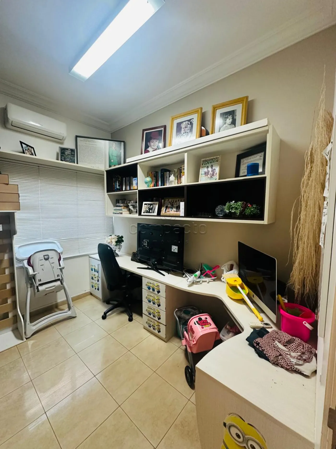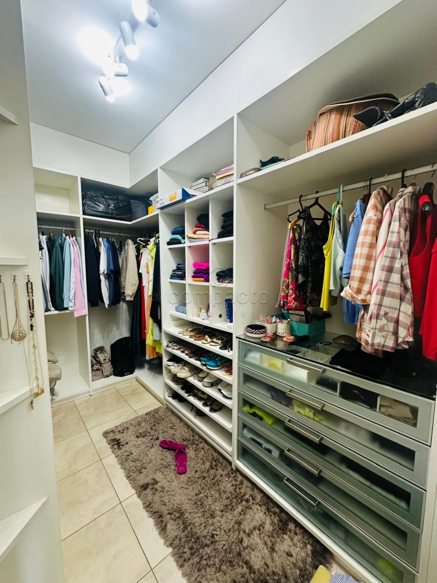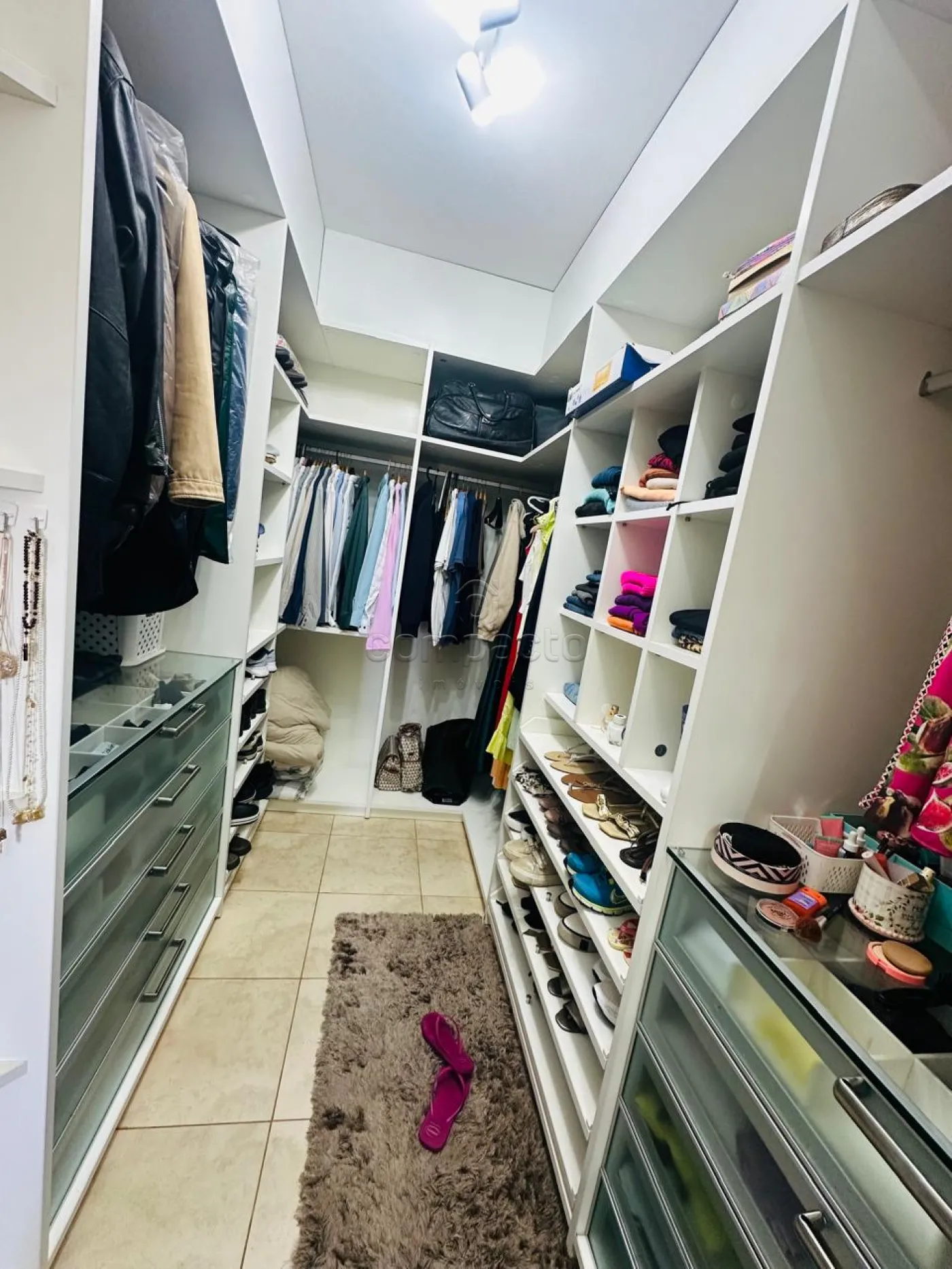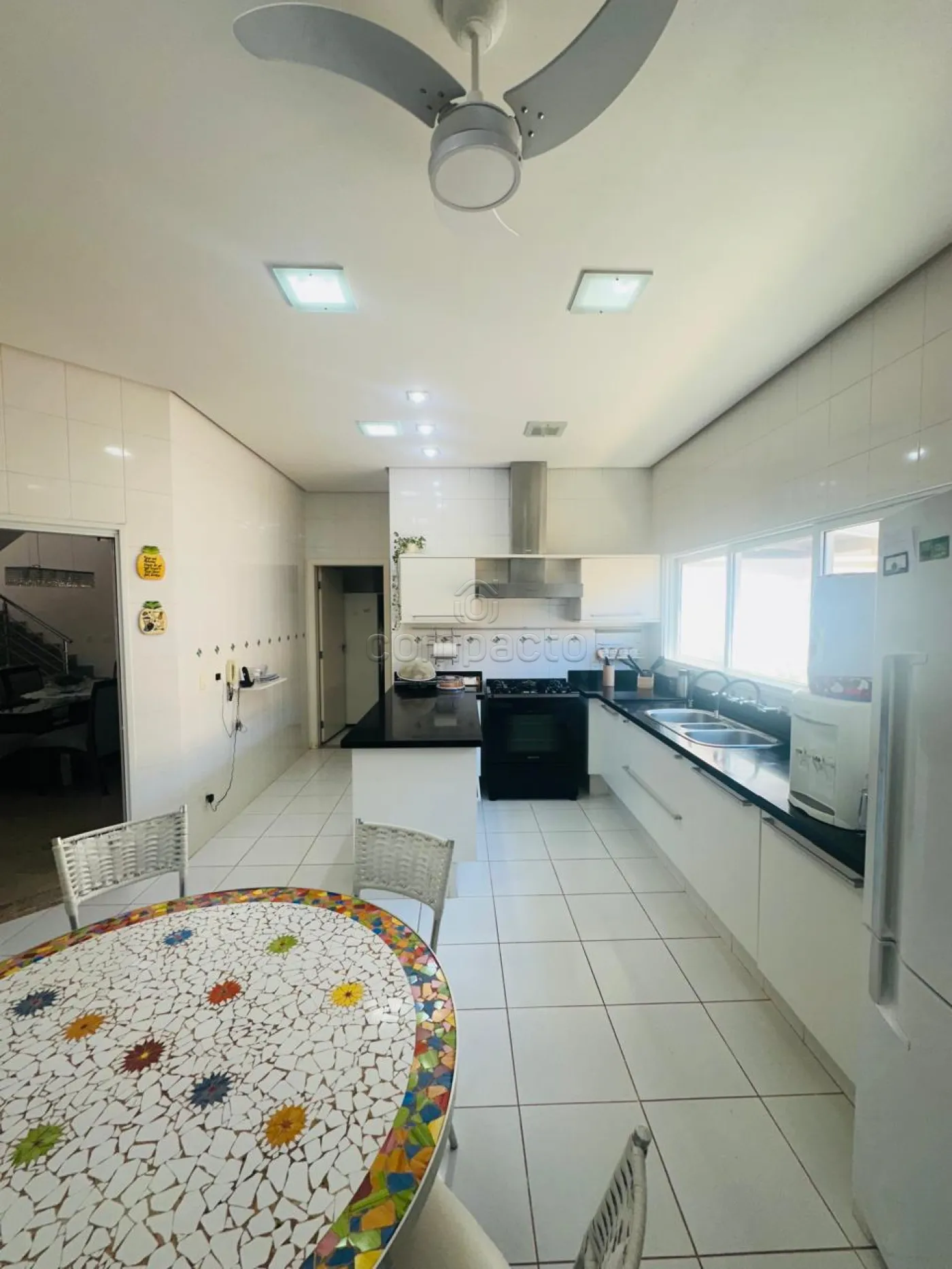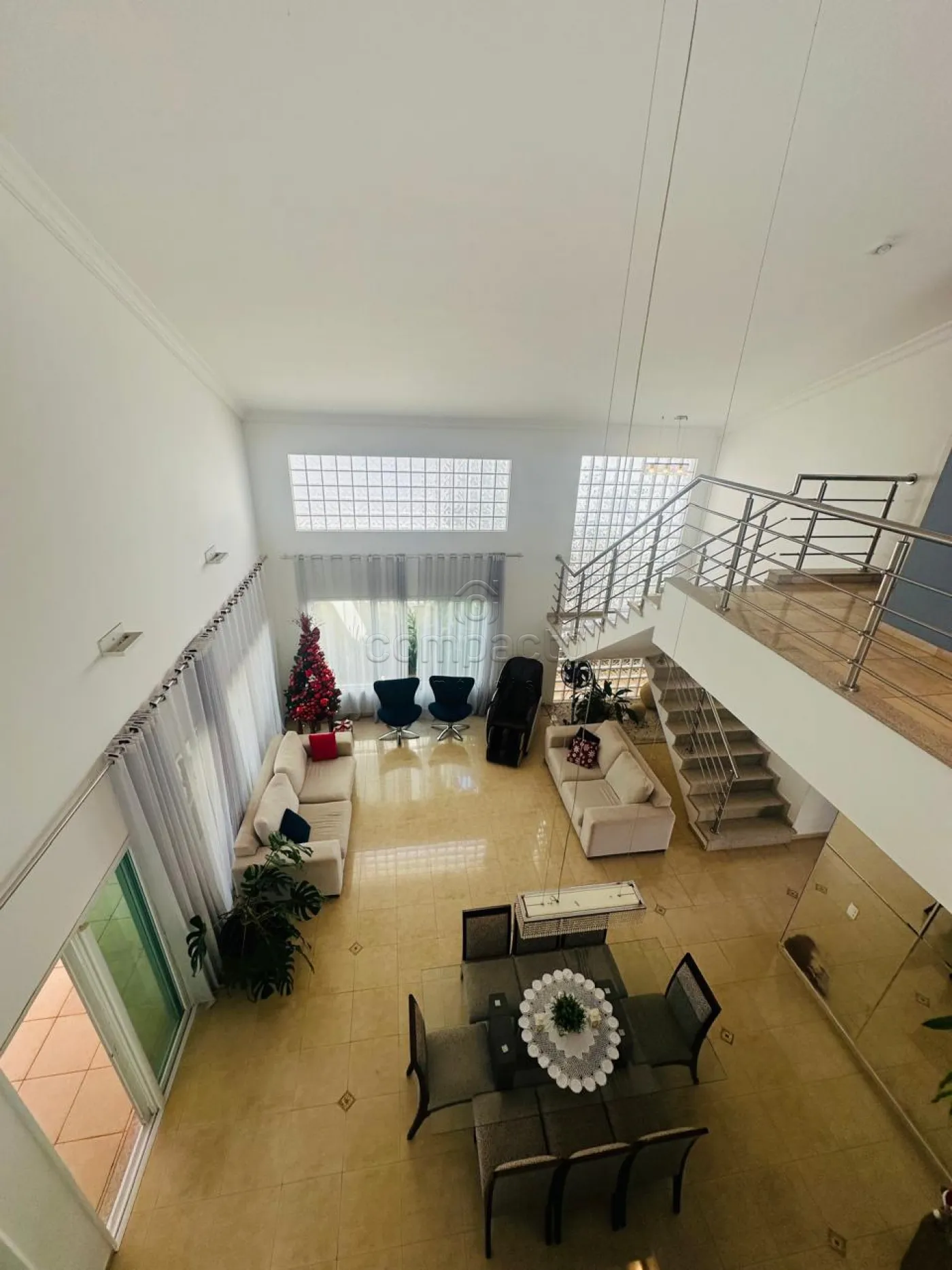 Sobrado com quatro dormitórios, sendo uma suíte máster com closet, hidromassagem, cuba e ducha dupla, além de varanda privativa; uma suíte com closet e varanda; e dois dormitórios estilo americano, ambos com closet e varanda. Conta ainda com sala íntima e copa. No piso inferior, há uma ampla sala para dois ambientes com pé-direito alto, dois escritórios climatizados com armários planejados, cozinha espaçosa e rica em armários com despensa, lavanderia ampla e dependência de funcionário com banheiro. A área de convivência inclui sala de TV integrada à varanda, ampla varanda com churrasqueira e balcão refrigerado, piscina aquecida com acesso à sauna, lavabo e banheiro para atender à área de lazer. O imóvel possui ainda energia fotovoltaica, sistema de aquecimento de água, garagem para até seis veículos, sendo três cobertos, e corredor lateral com acesso direto à área de lazer.
