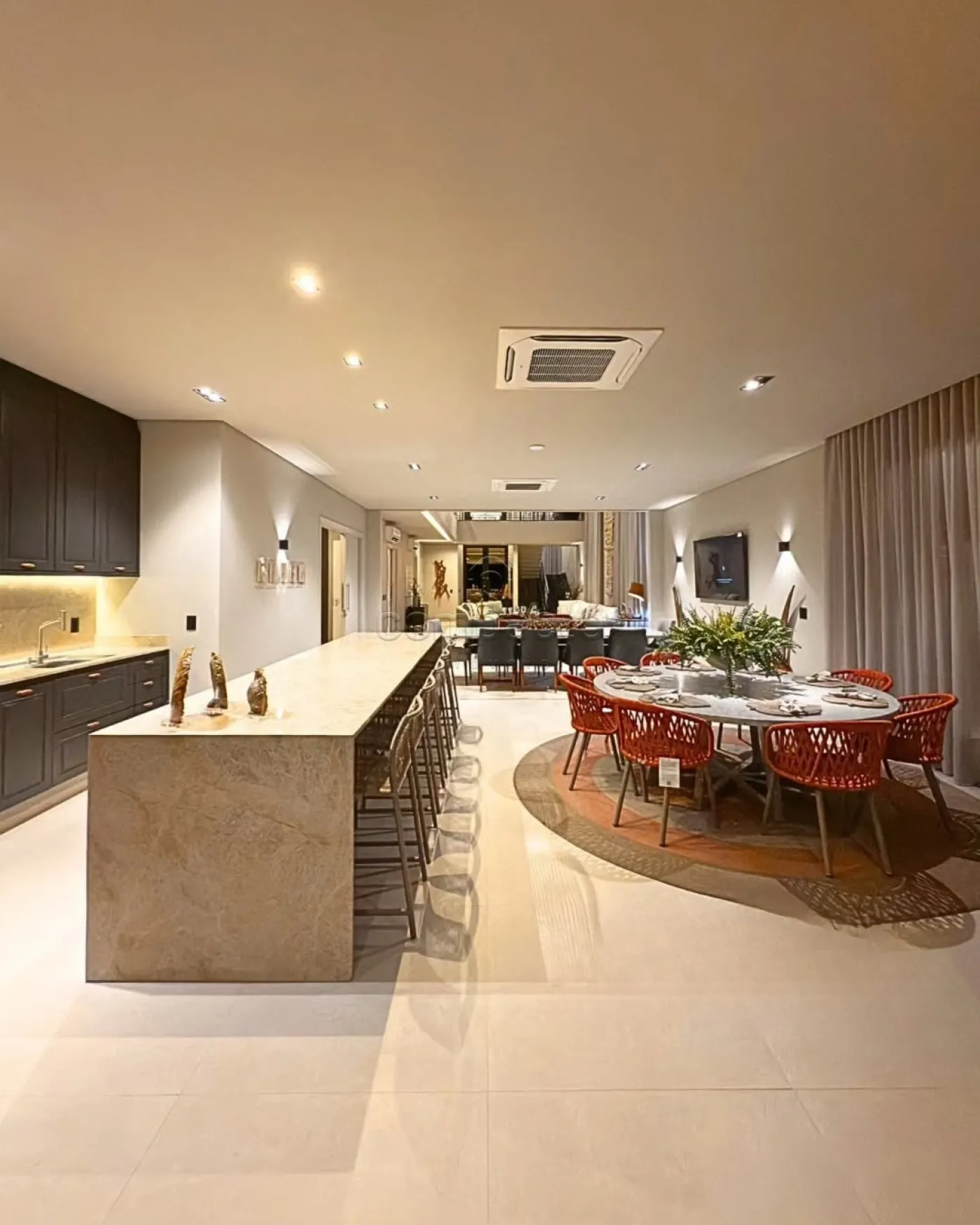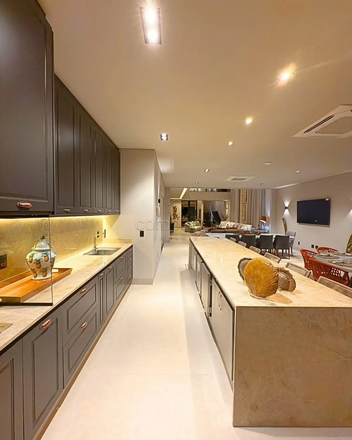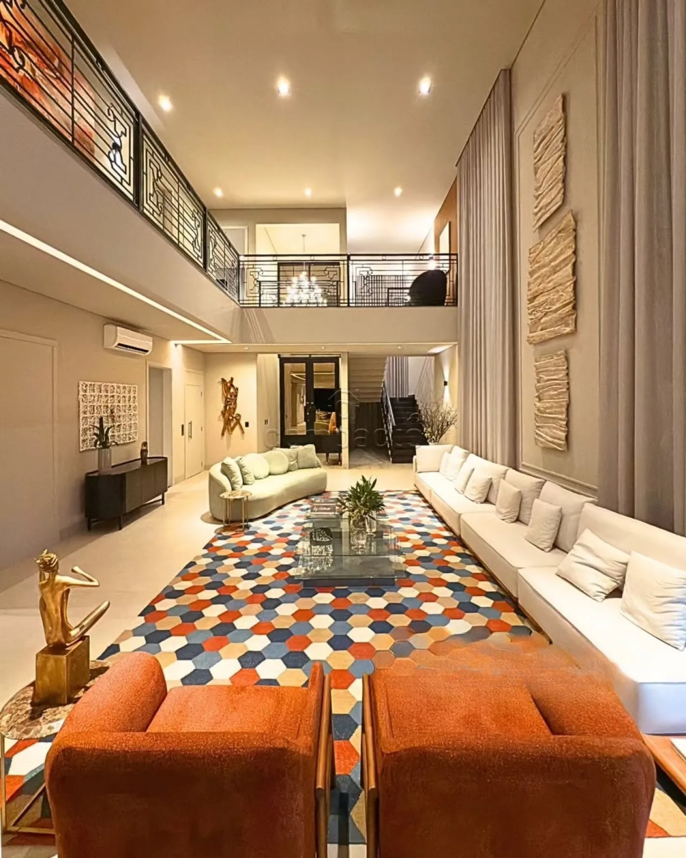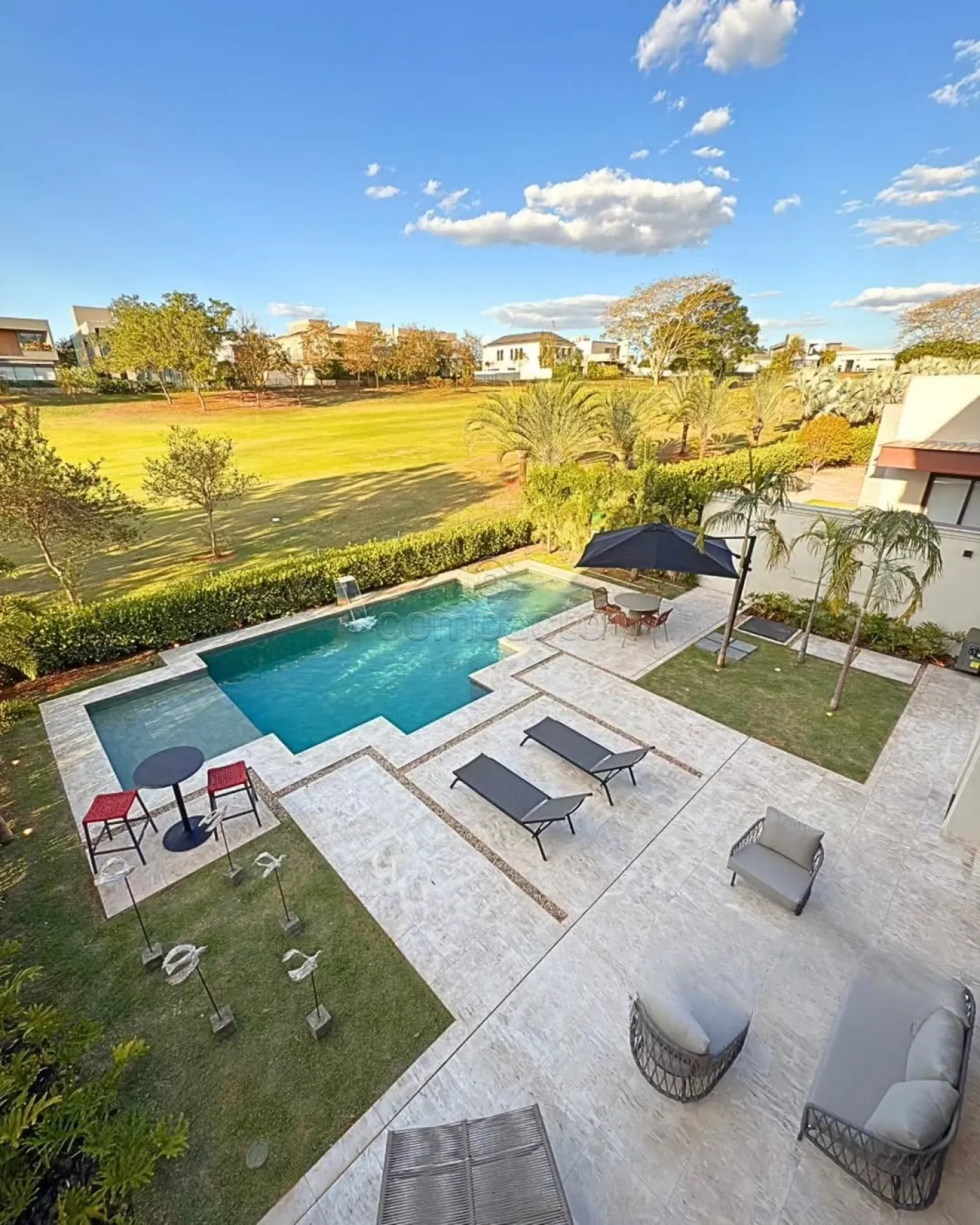 Uma mansão simplesmente magnífica, localizada de frente para o campo de golfe, onde cada detalhe reflete sofisticação e bom gosto. Com fachada neoclássica, a residência está totalmente mobiliada e decorada, contando com obras de arte exclusivas e assinadas. Automatizada, climatizada e com irrigação automatizada, oferece o máximo em conforto e tecnologia. O paisagismo é completo, o acabamento é premium e todos os ambientes possuem marcenaria de altíssima qualidade. O projeto luminotécnico em full LED é rico em lustres e valoriza cada espaço. Com elevador e garagem para três carros, o imóvel conta com 690 m² de terreno e 564 m² de construção. São quatro suítes com closet, sendo uma suíte máster com dois closets, sala de banho com banheira de imersão e sacada com vista para o campo. O living é amplo, com pé-direito duplo, além de home, escritório e lavabo. A cozinha interna é planejada e equipada, enquanto a cozinha gourmet é espaçosa, com bancada, balcão refrigerado, adega e churrasqueira. A área de lazer conta com uma piscina aquecida com spa e cascata, deck, banheiro externo, despensa, lavanderia e dormitório para funcionário.