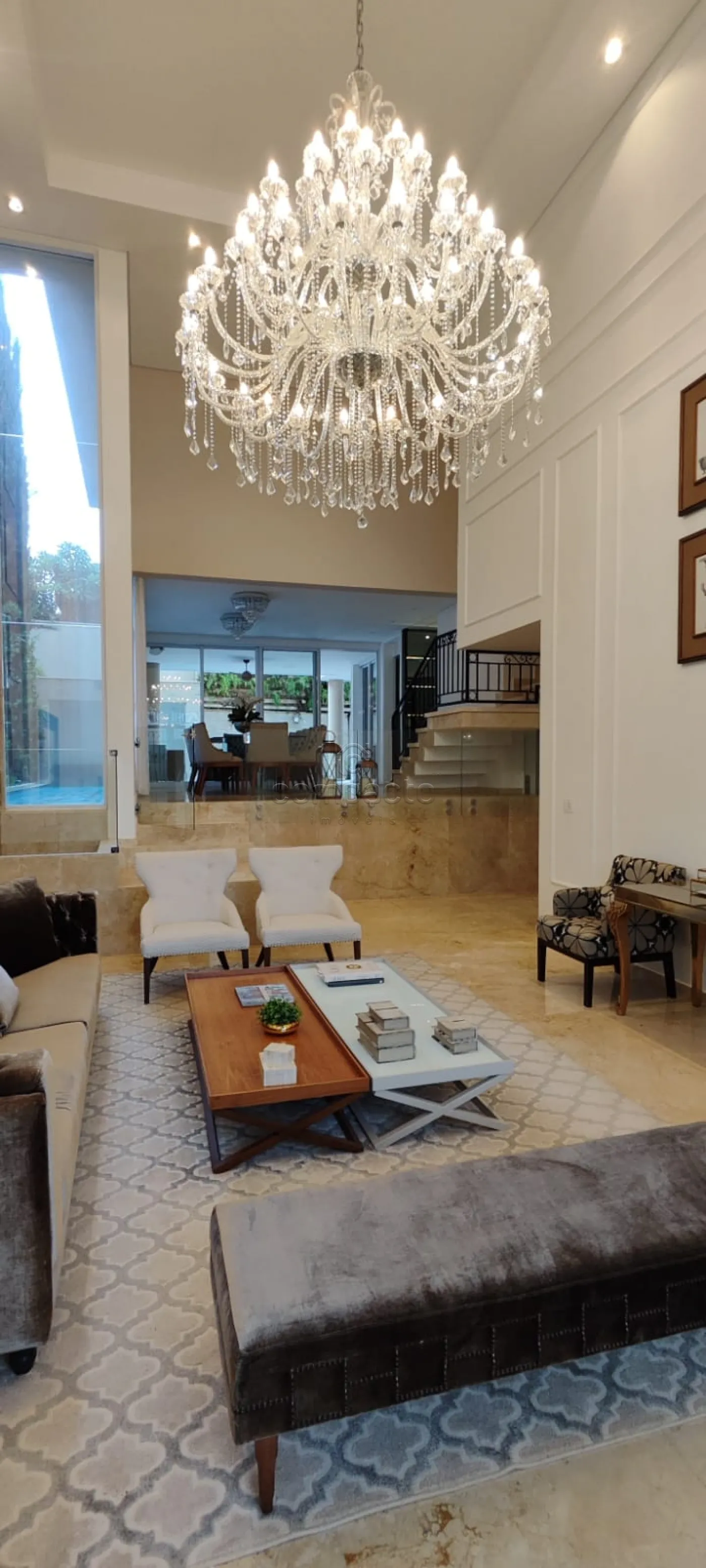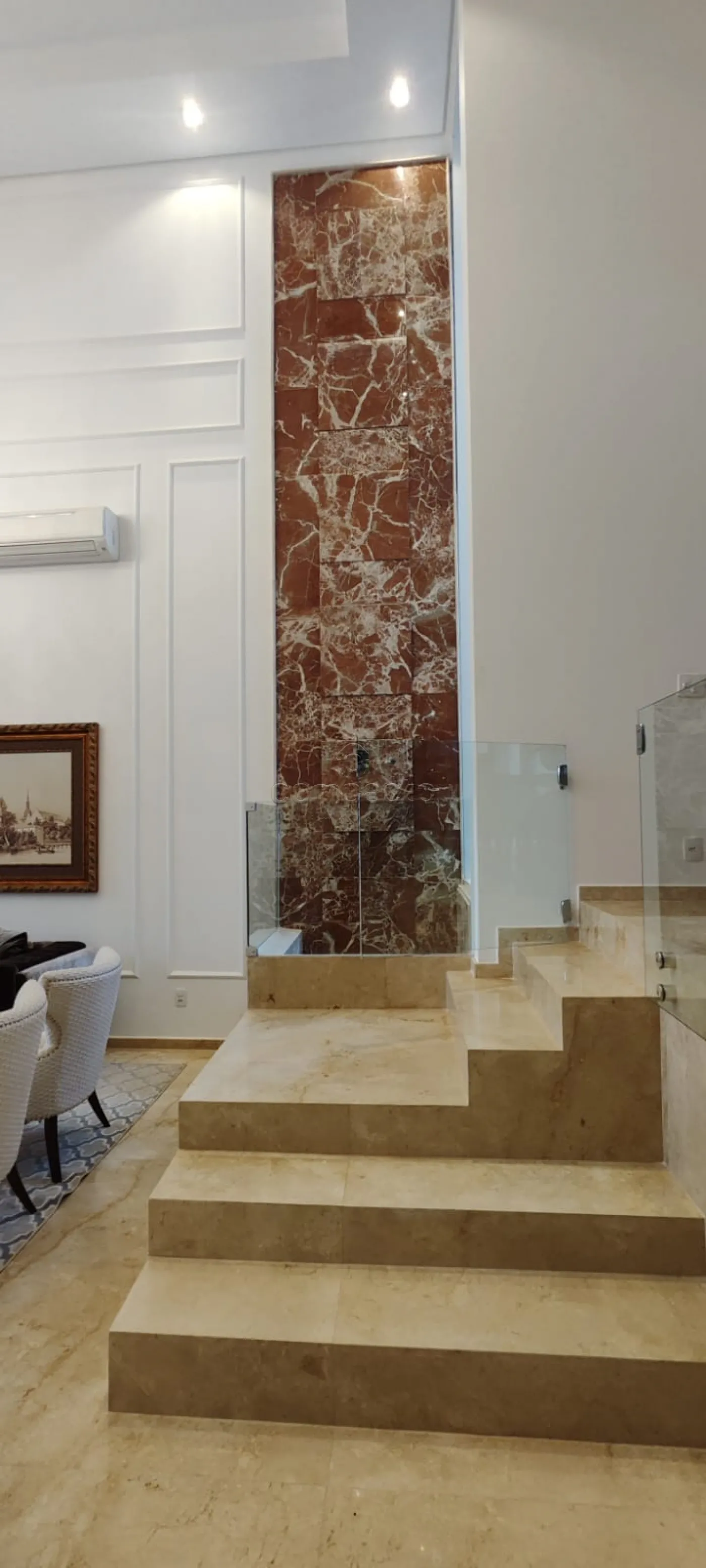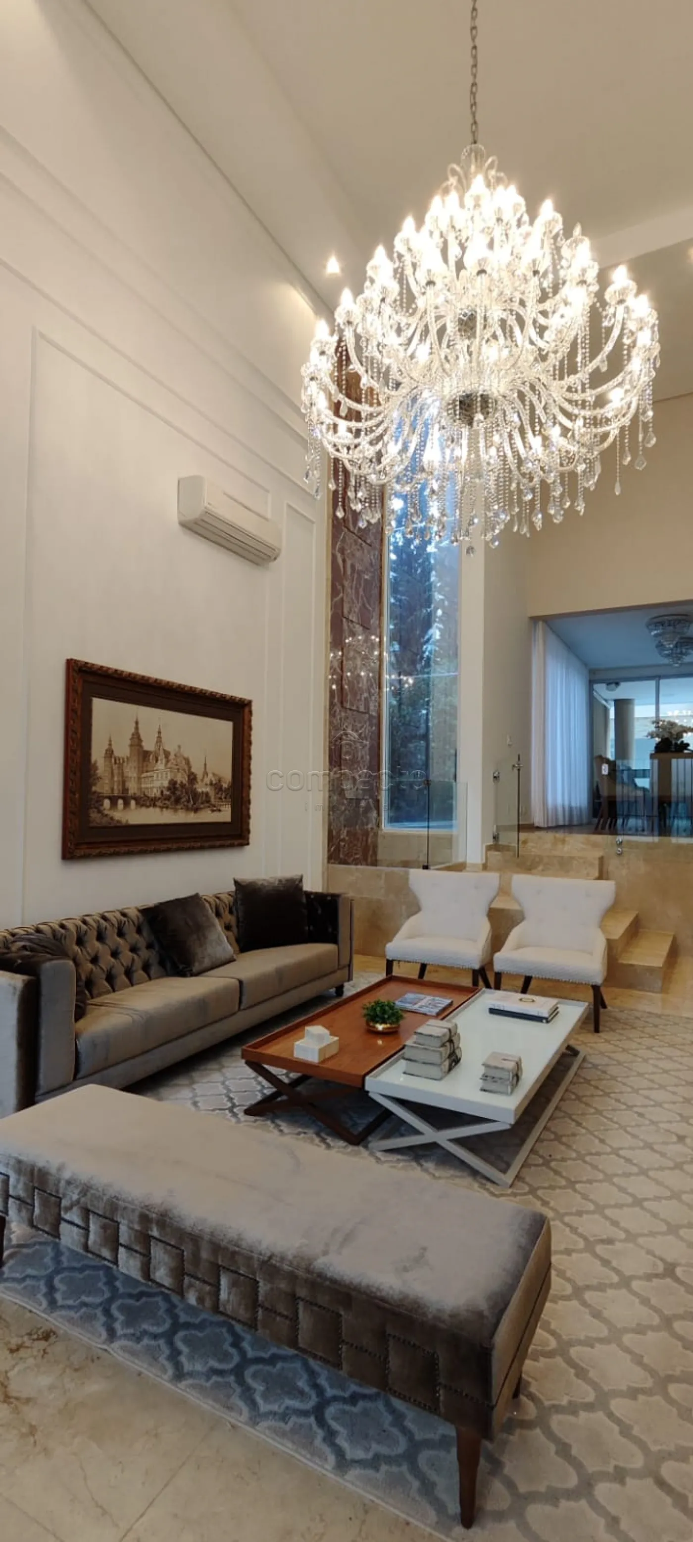 Acabamentos: Toda climatizada, Riquíssimo em armários embutidos e painéis de alta qualidade, Roupeiro de apoio no andar superior, Cascata na sala com purificar de ambientes, Persianas automatizadas, Paisagismo com irrigação automática .