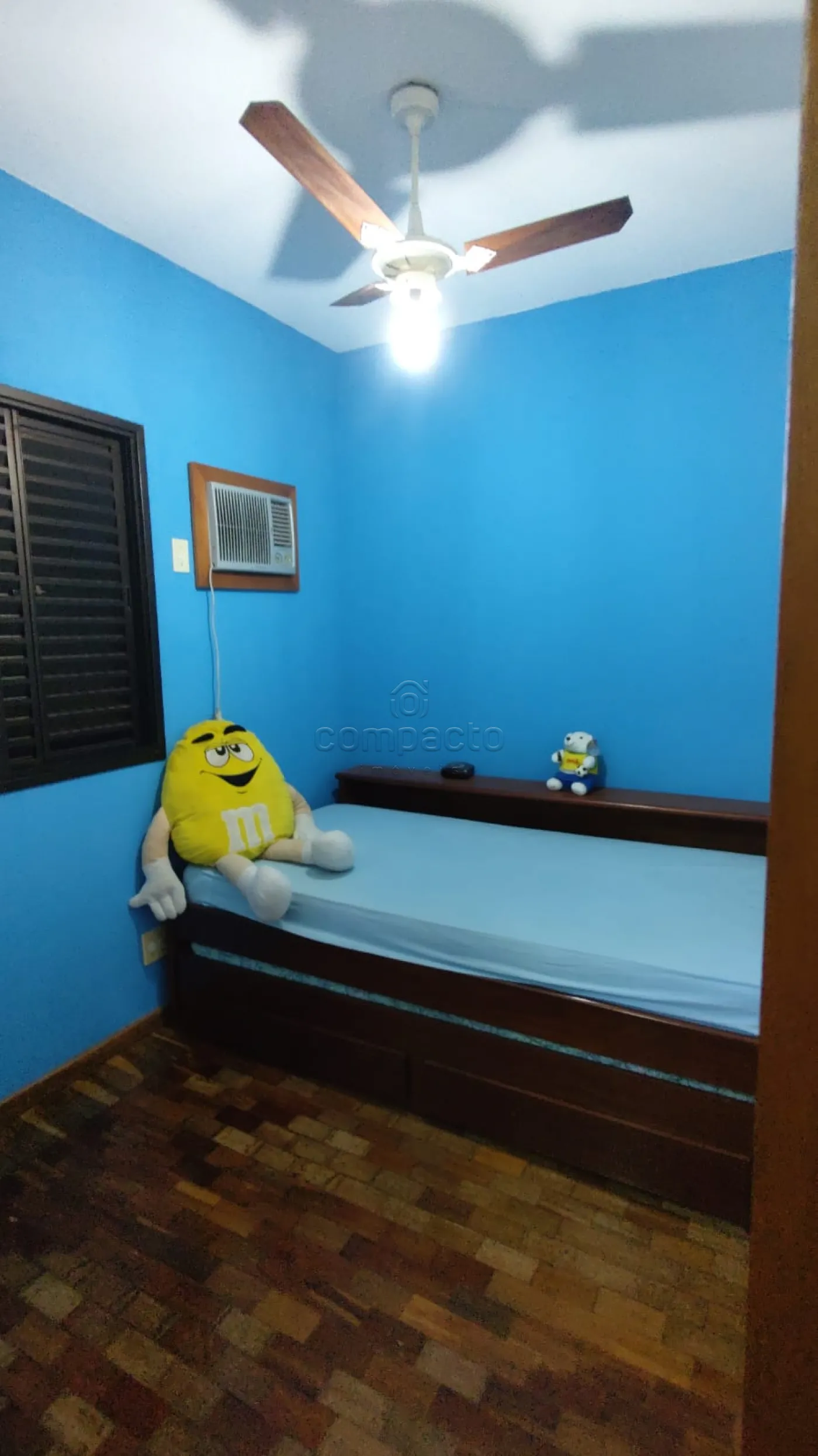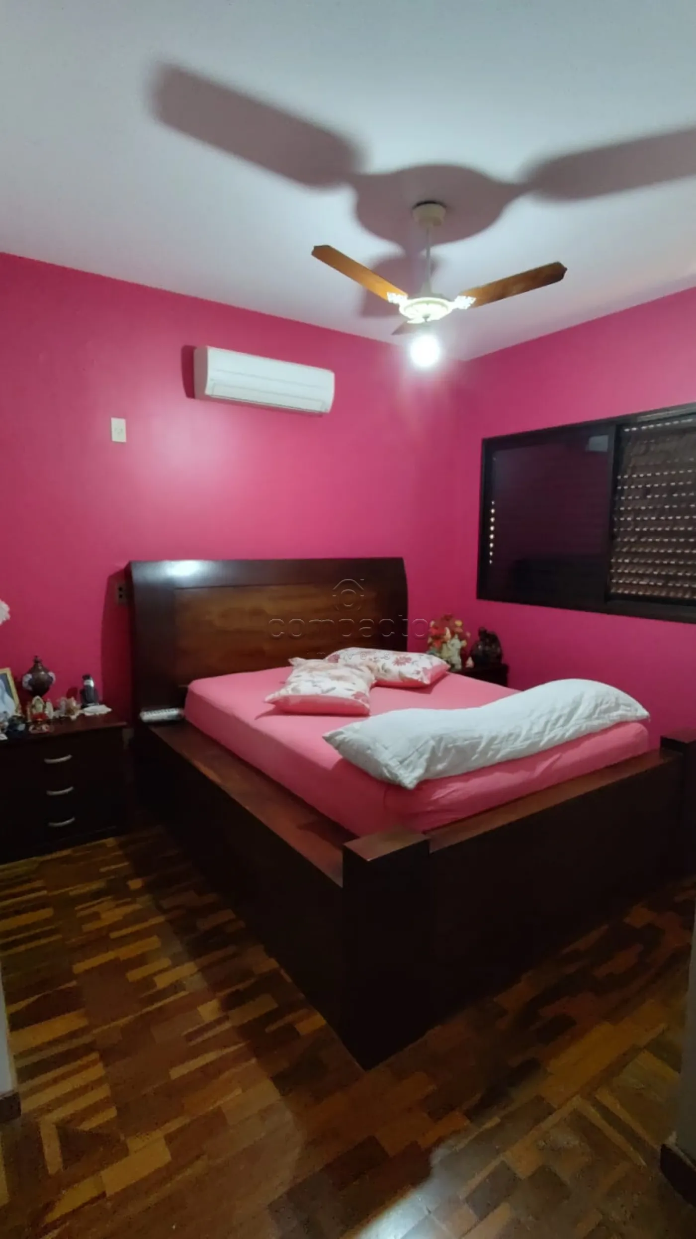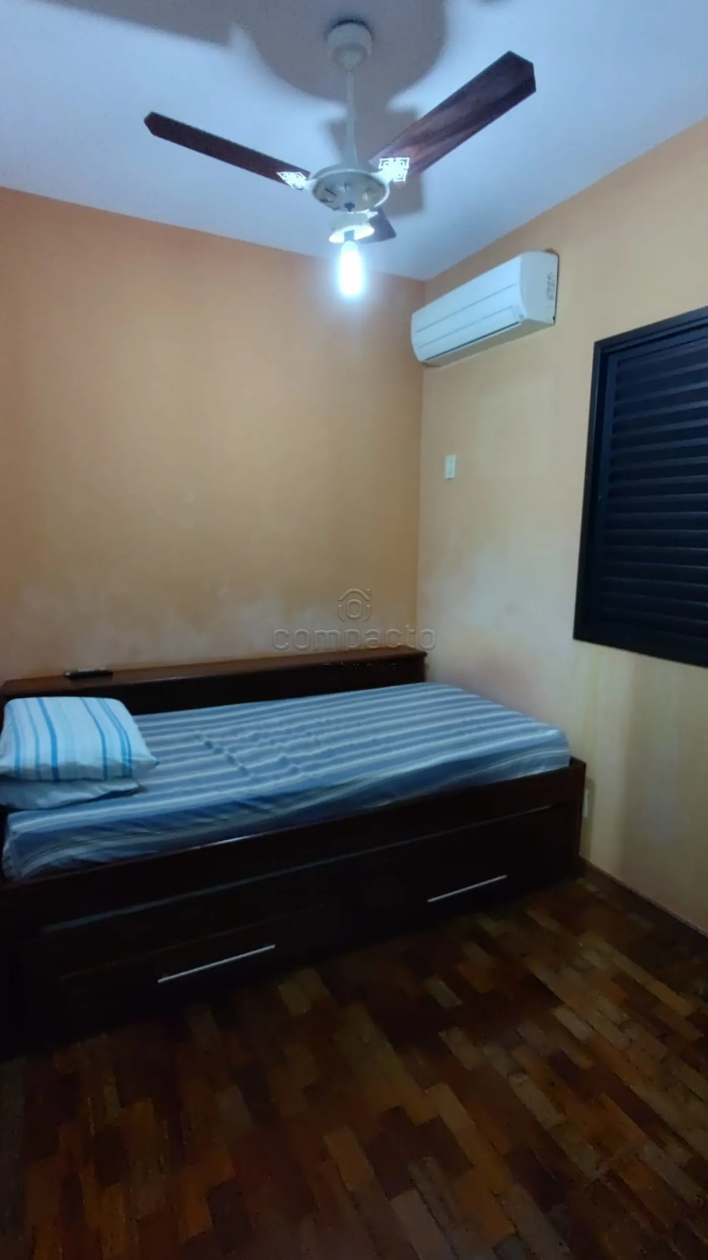 Possui armários, ar condicionado, ventilador de teto e Box.