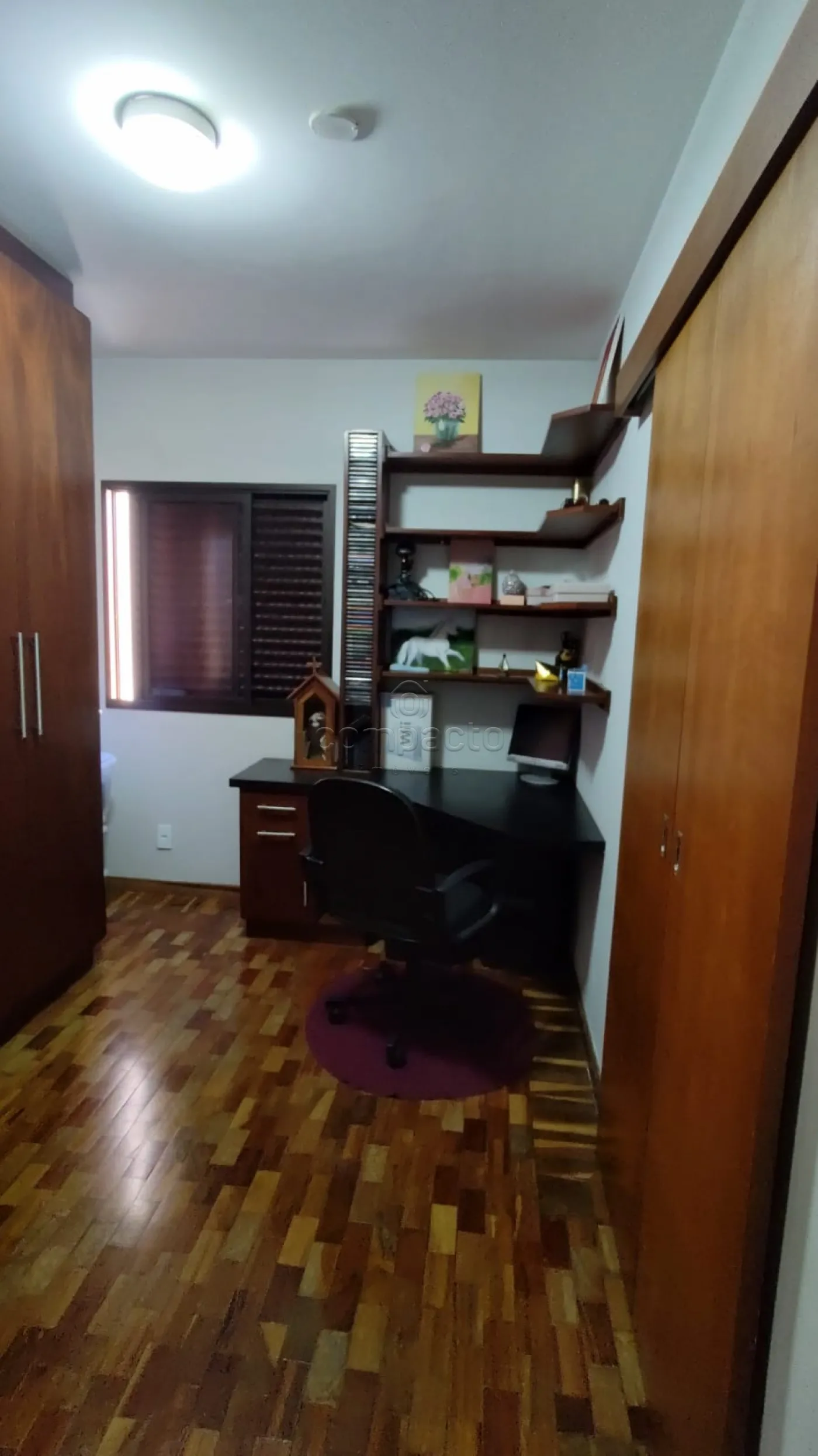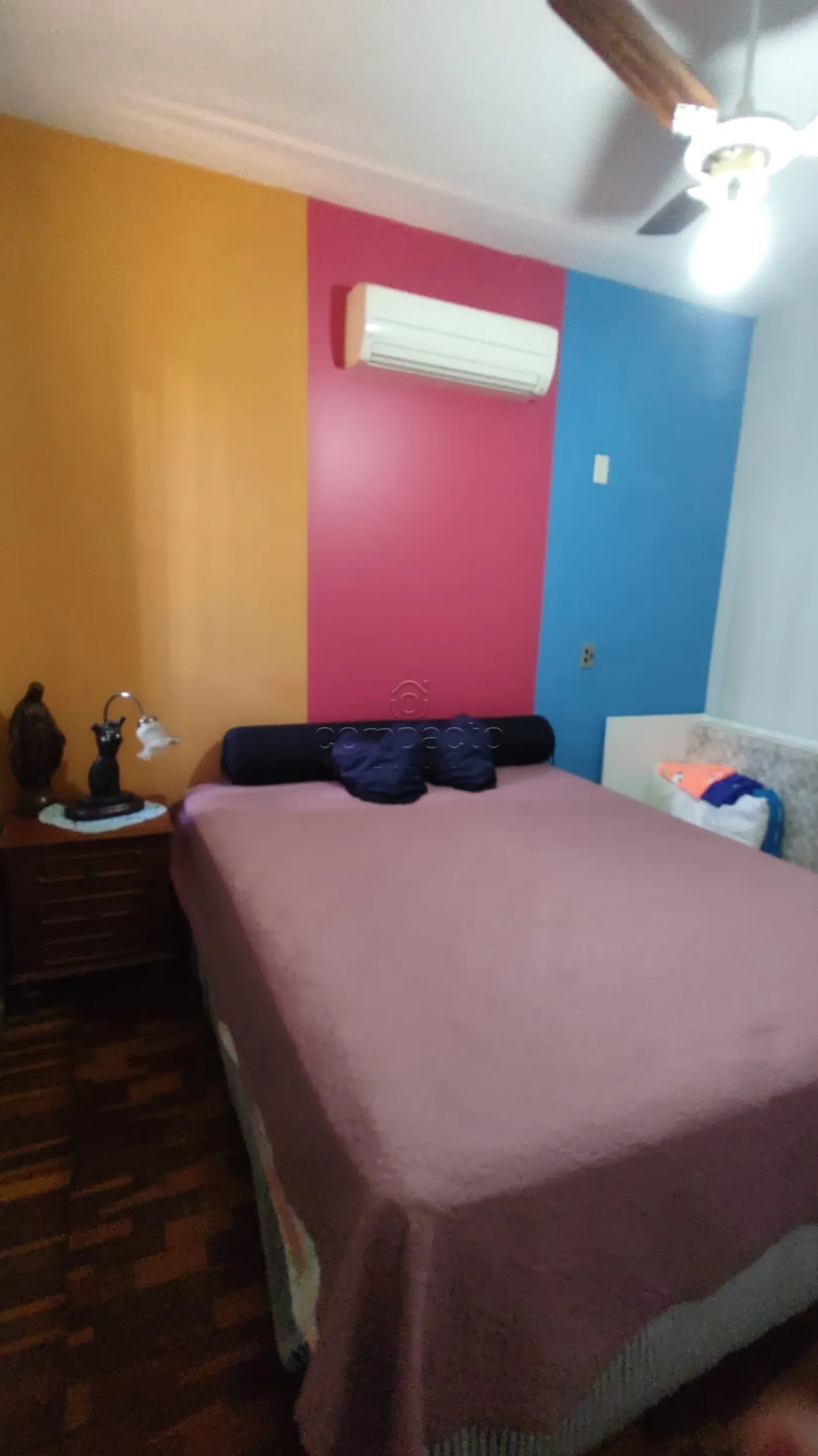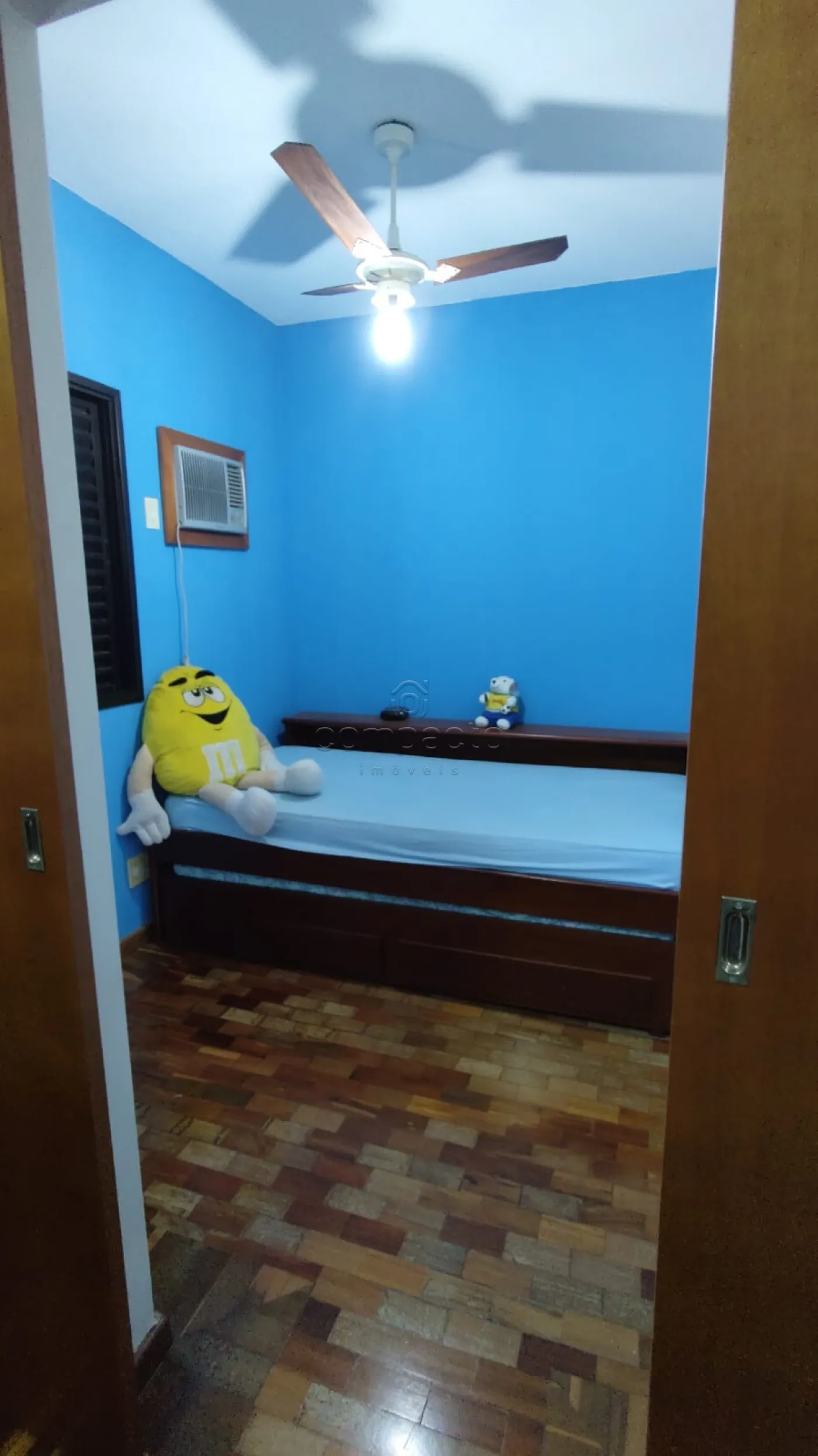 Possui armários, ar condicionado, ventilador de teto e Box.