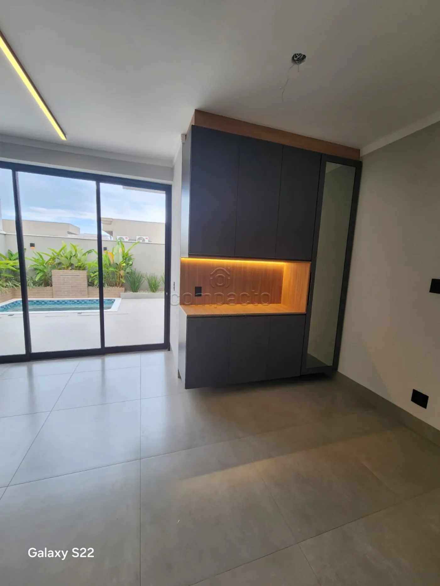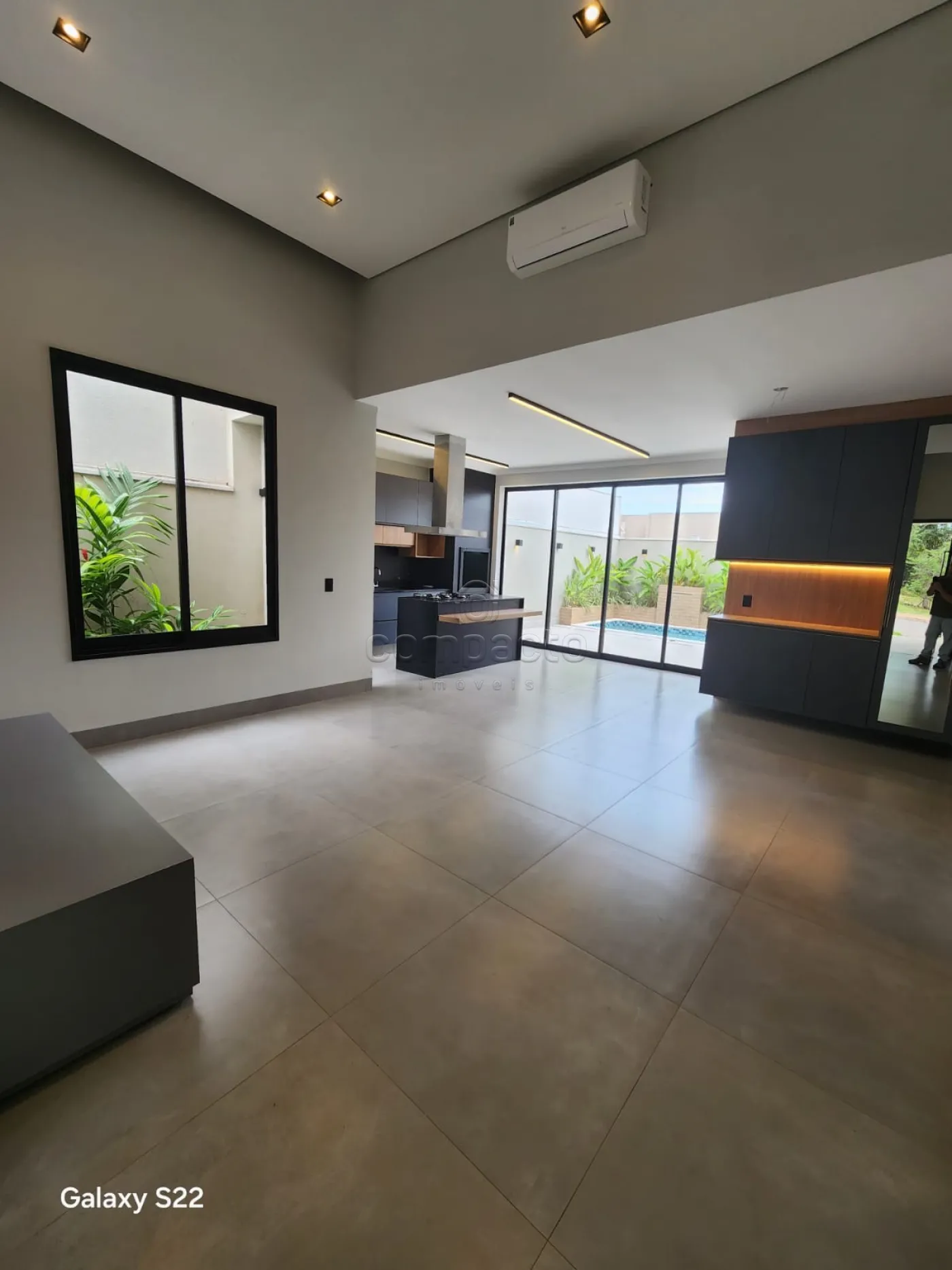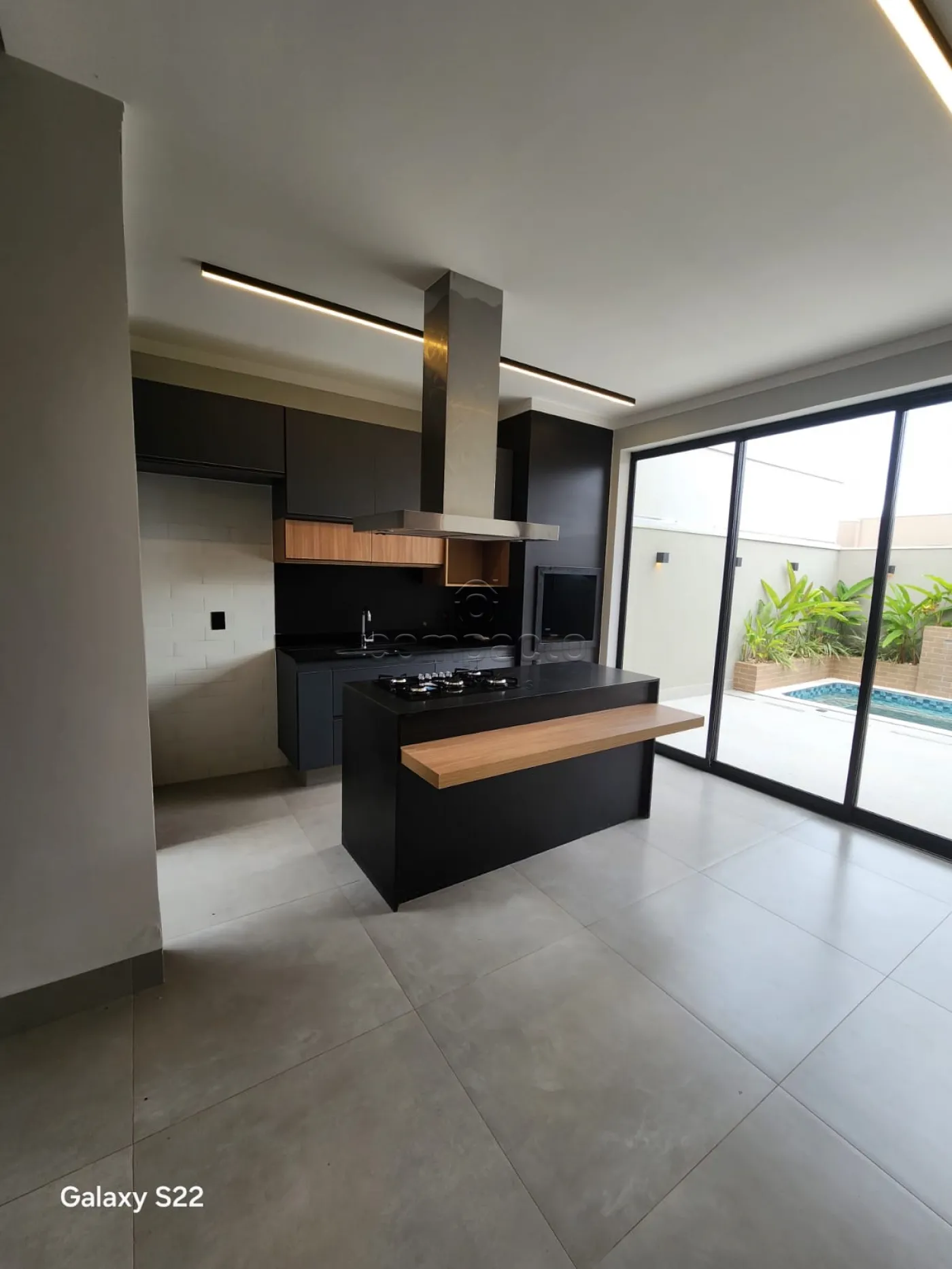 Possui: 3 quartos (1 suíte master com closet, chuveiro duplo e pia dupla), lavabo, escritório, living 2 ambientes com pé direito alto, espaço gourmet integrado com cozinha e churrasqueira, lavanderia espaçosa e com armários e piscina aquecida com cascata.