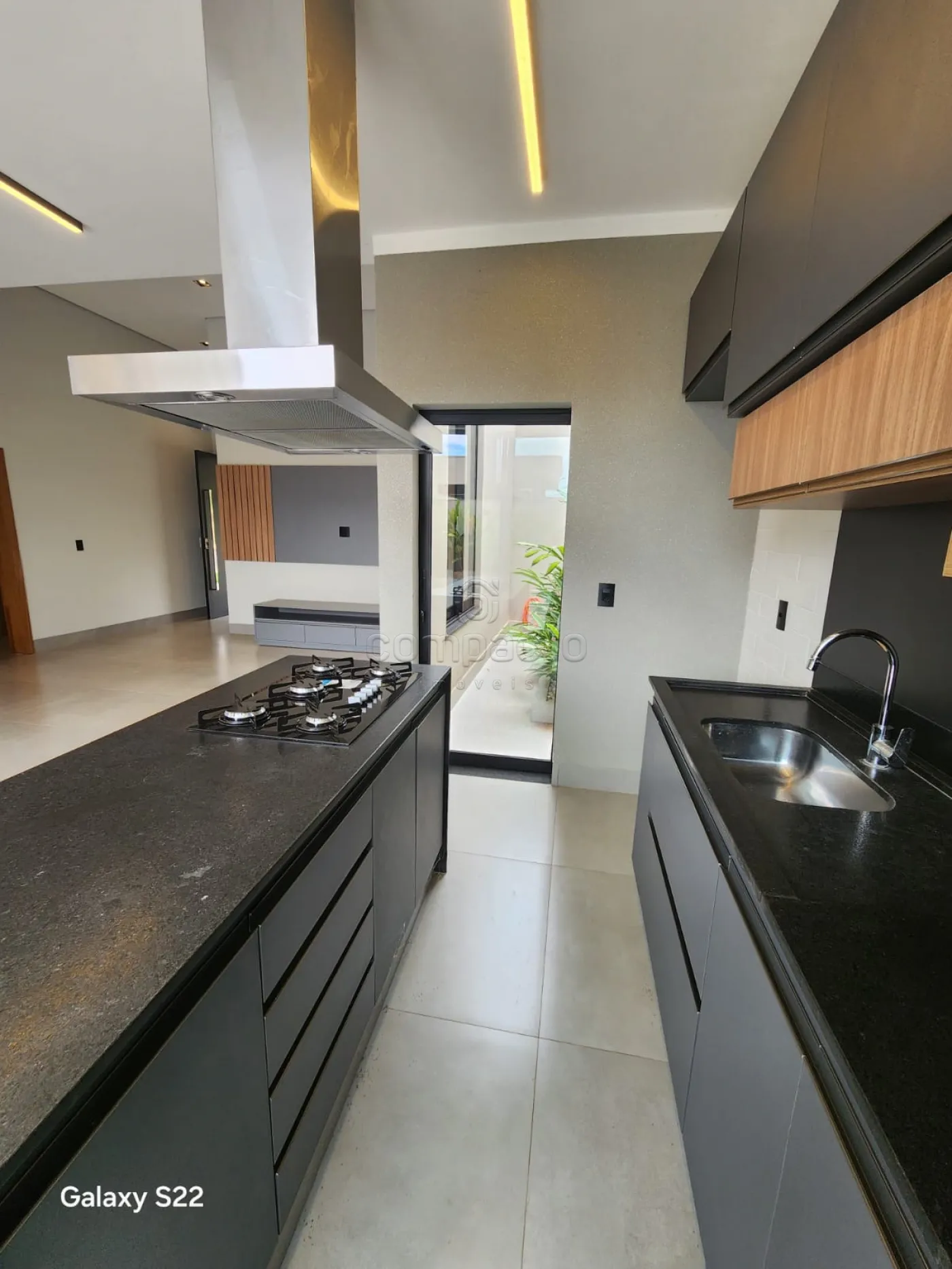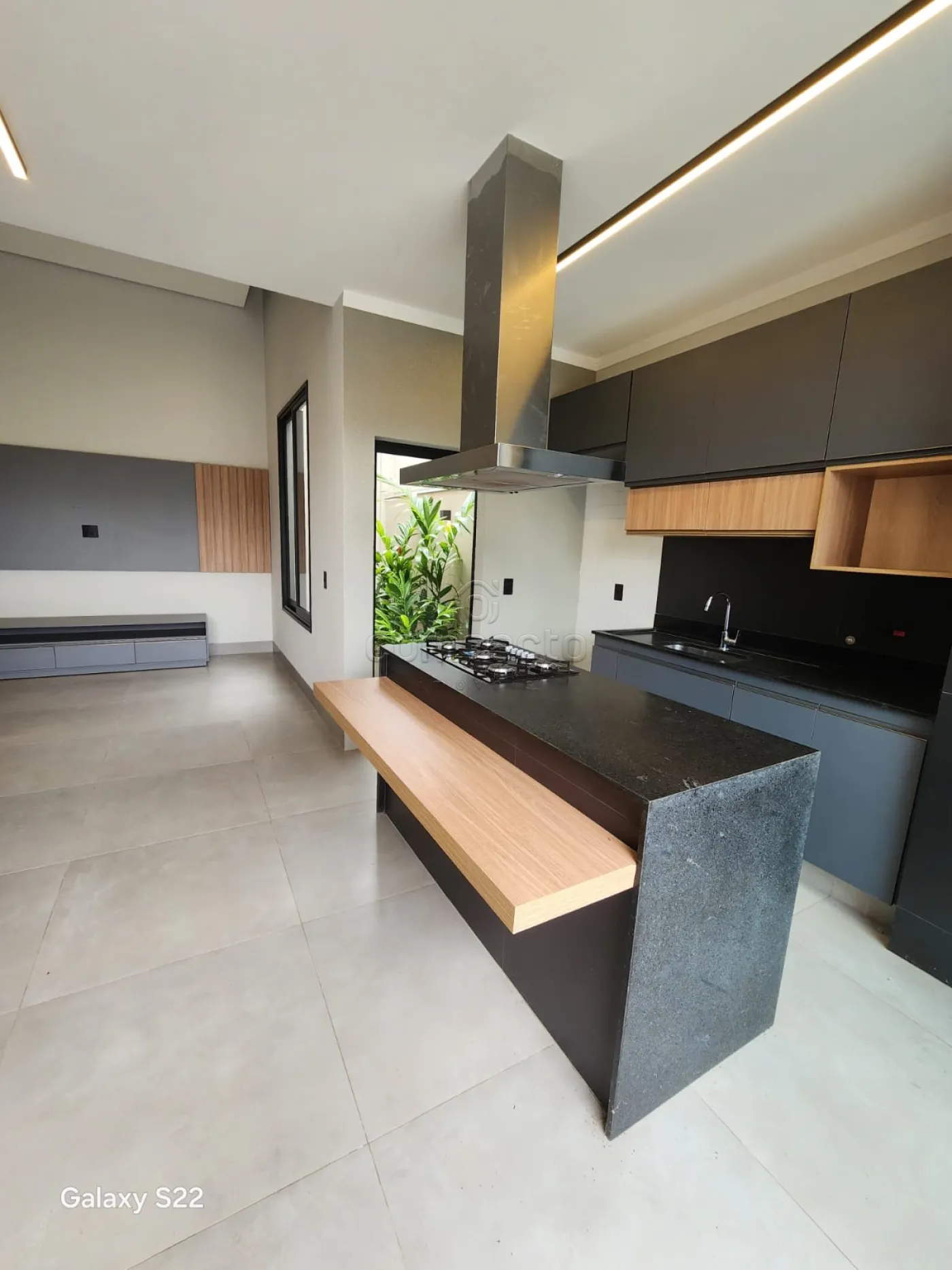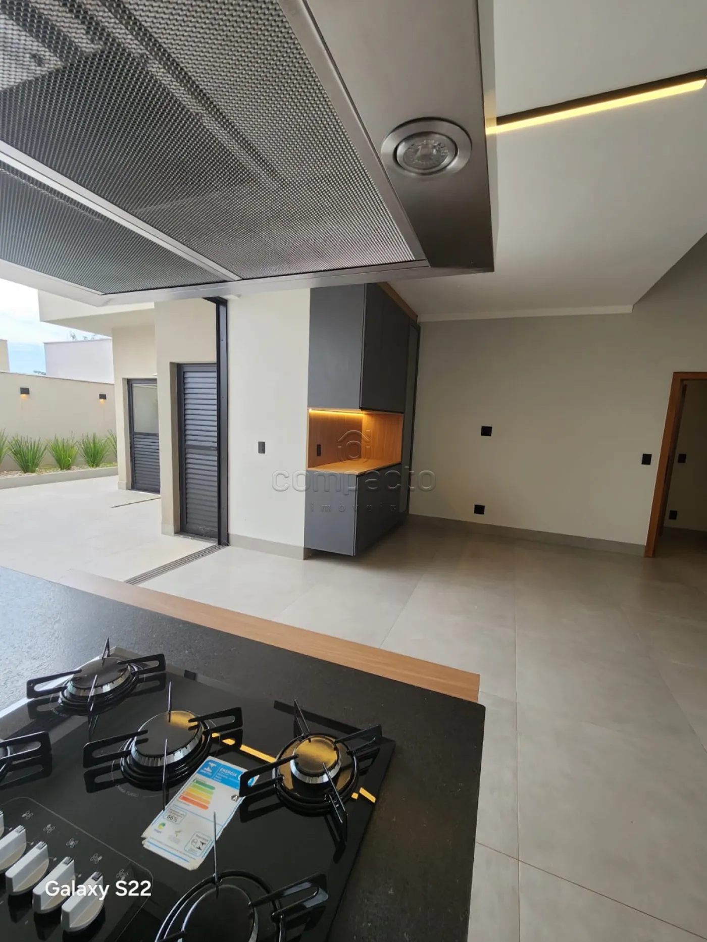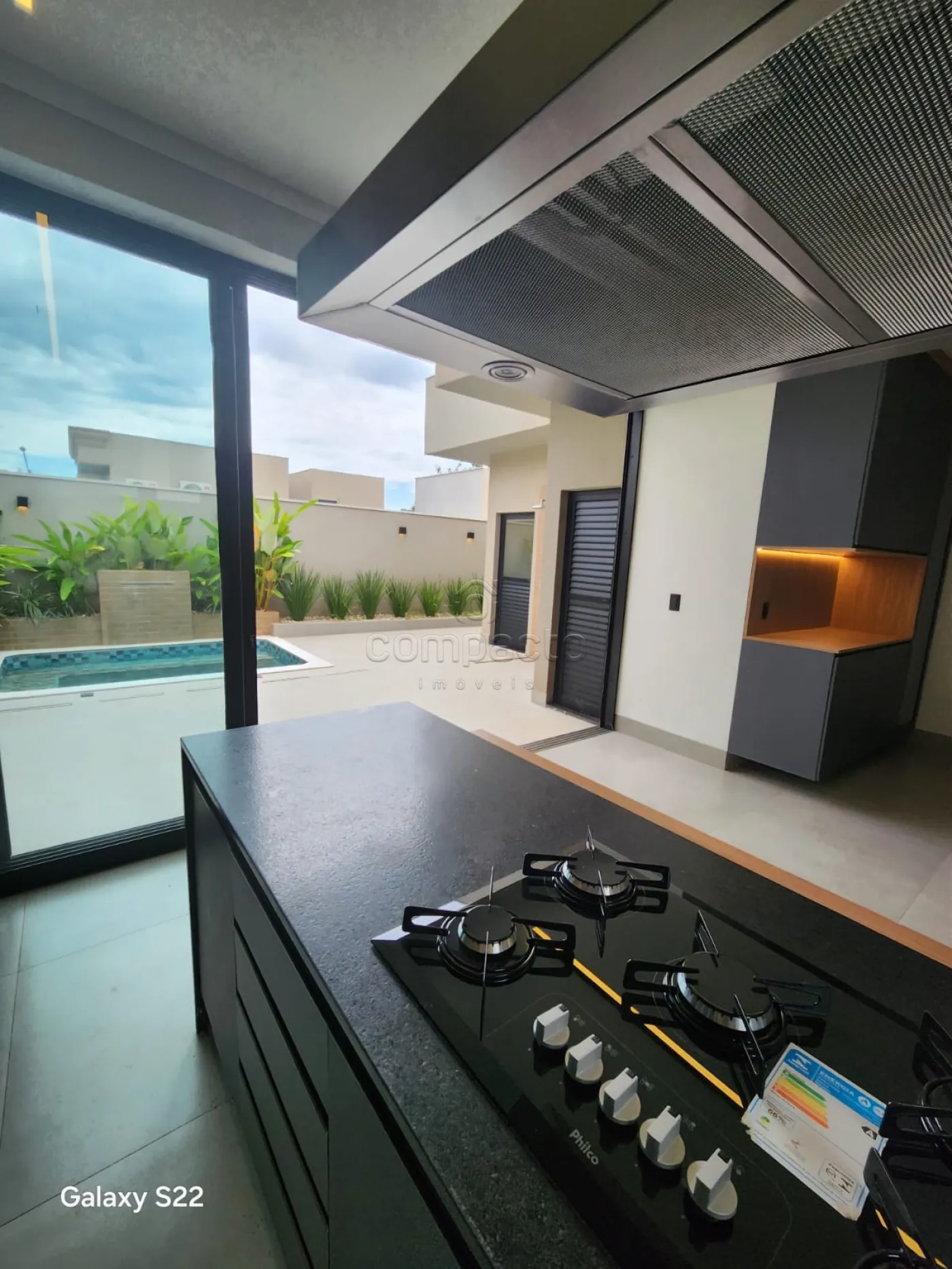Possui: 3 quartos (1 suíte master com closet, chuveiro duplo e pia dupla), lavabo, escritório, living 2 ambientes com pé direito alto, espaço gourmet integrado com cozinha e churrasqueira, lavanderia espaçosa e com armários e piscina aquecida com cascata.
