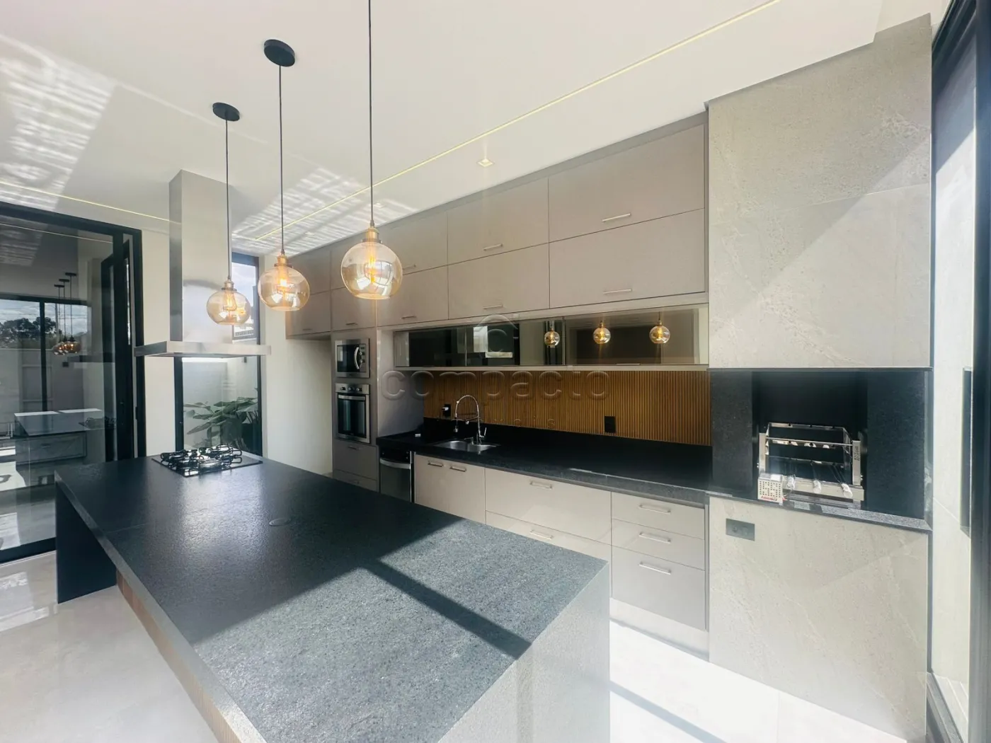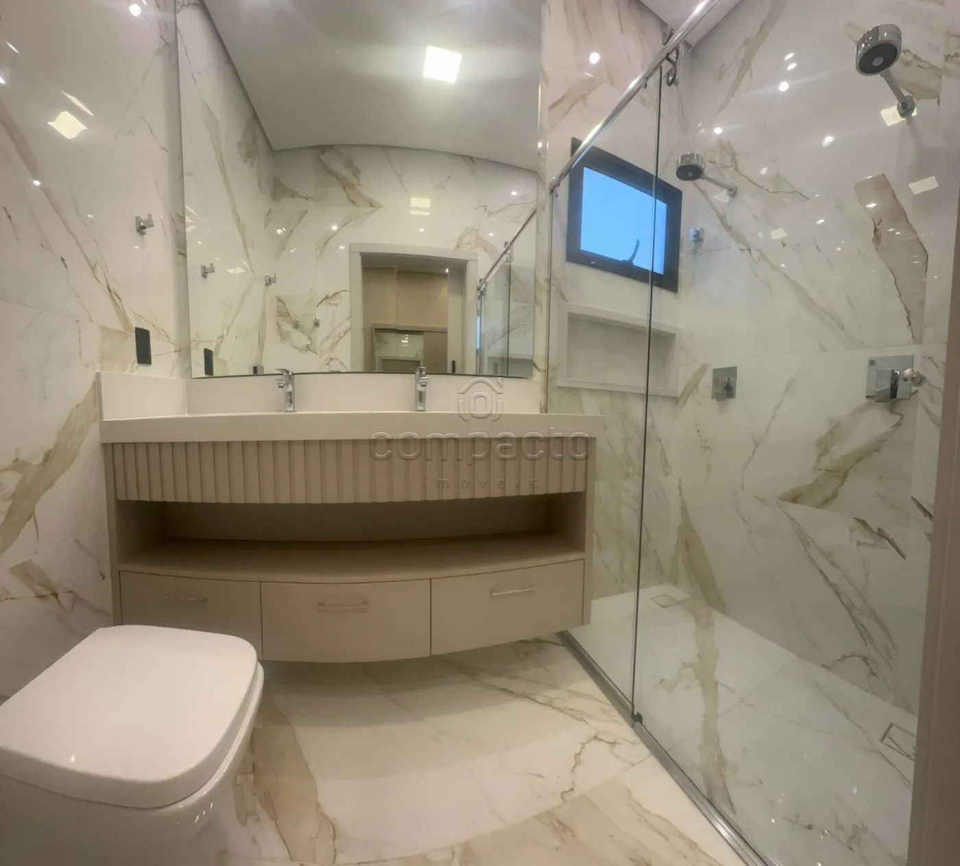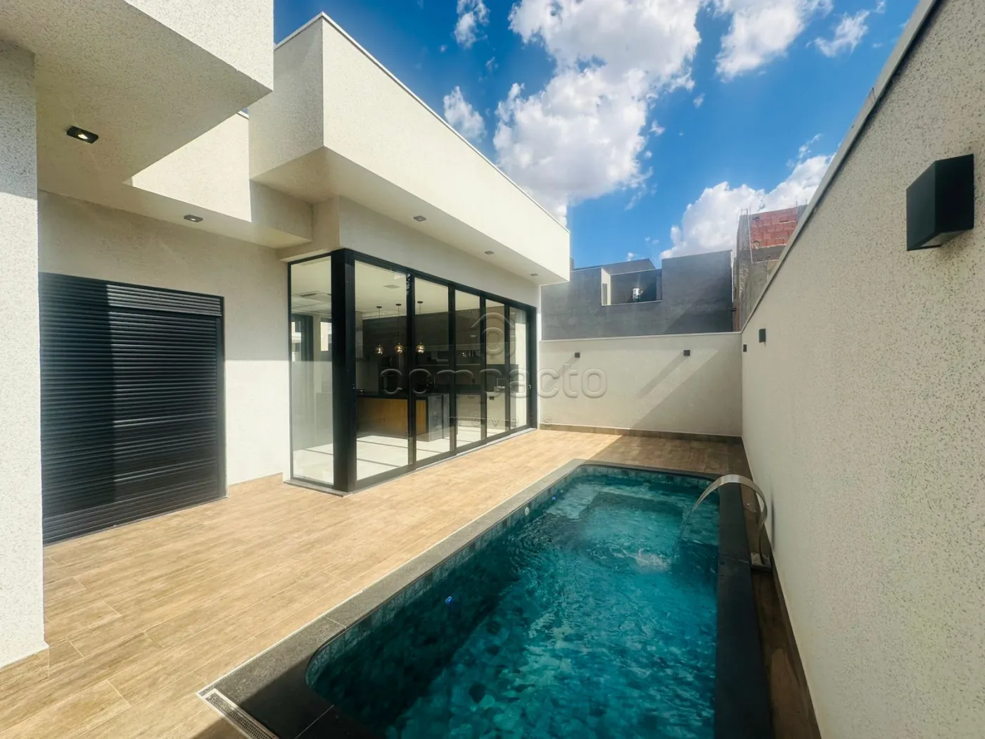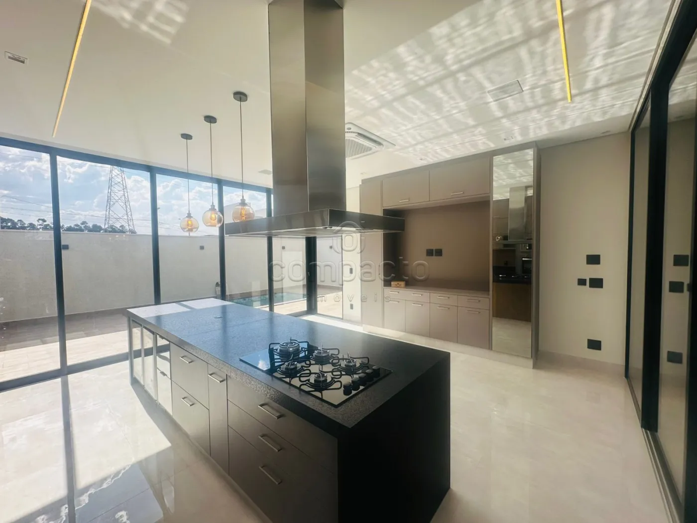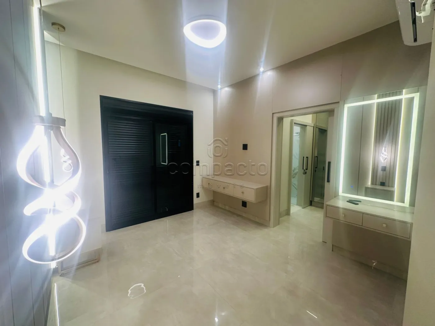 Casa de altíssimo padrão, com excelente acabamento, composta por três suítes planejadas e climatizadas, sendo uma suíte máster com veneziana automatizada e closet. Possui escritório com armários planejados, sala com pé-direito alto equipada com painel de TV e ar-condicionado, além de cozinha gourmet completa com forno, cooktop, máquina de lavar louças, micro-ondas, adega, cervejeira, churrasqueira, móvel home, barzinho e cristaleira. A área de lazer conta com piscina aquecida com cascata, iluminação em LED e hidromassagem, além de lavabo interno e externo para maior comodidade. A lavanderia é separada e planejada, e o imóvel dispõe de sistema de energia fotovoltaica, automação residencial, seis aparelhos de ar-condicionado, incluindo um modelo K7 na cozinha gourmet. Os acabamentos incluem portas laqueadas, ponto de carregamento para carro elétrico e fechadura eletrônica.