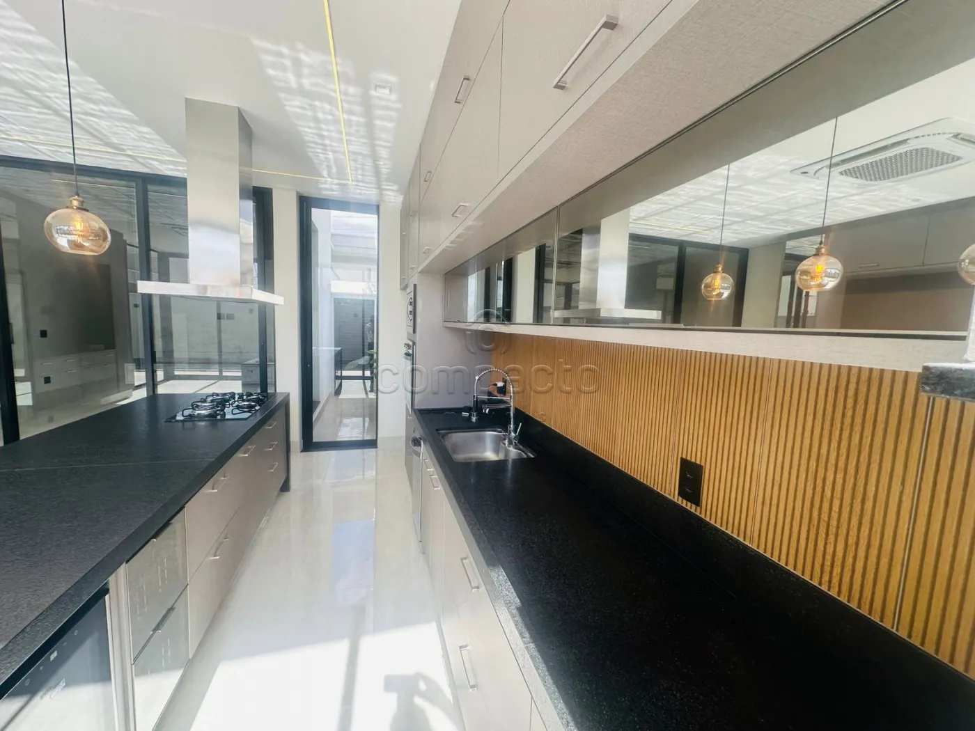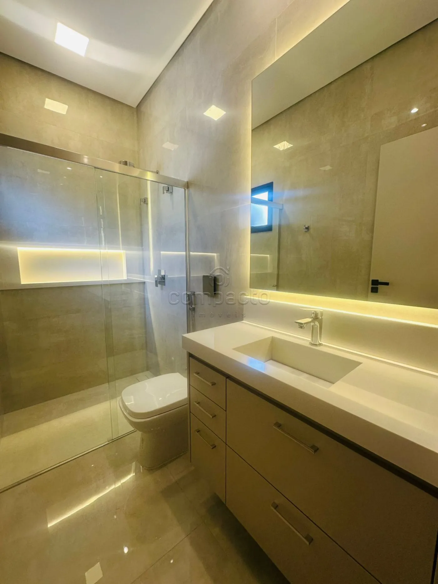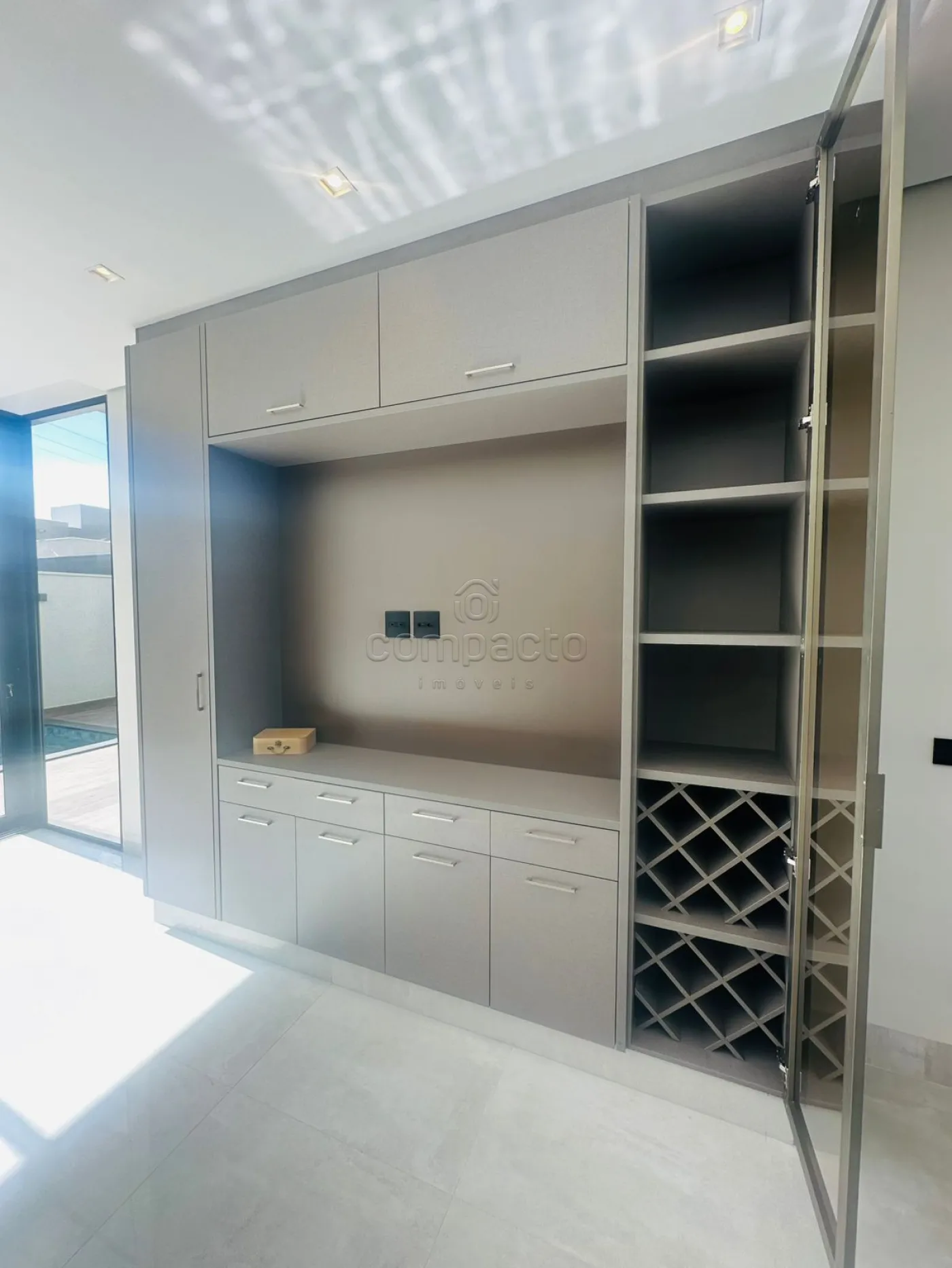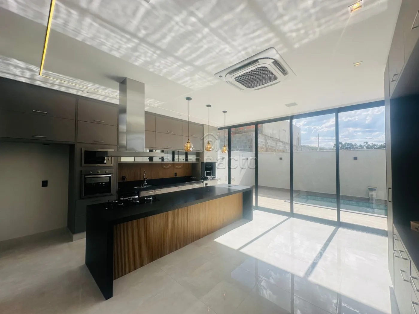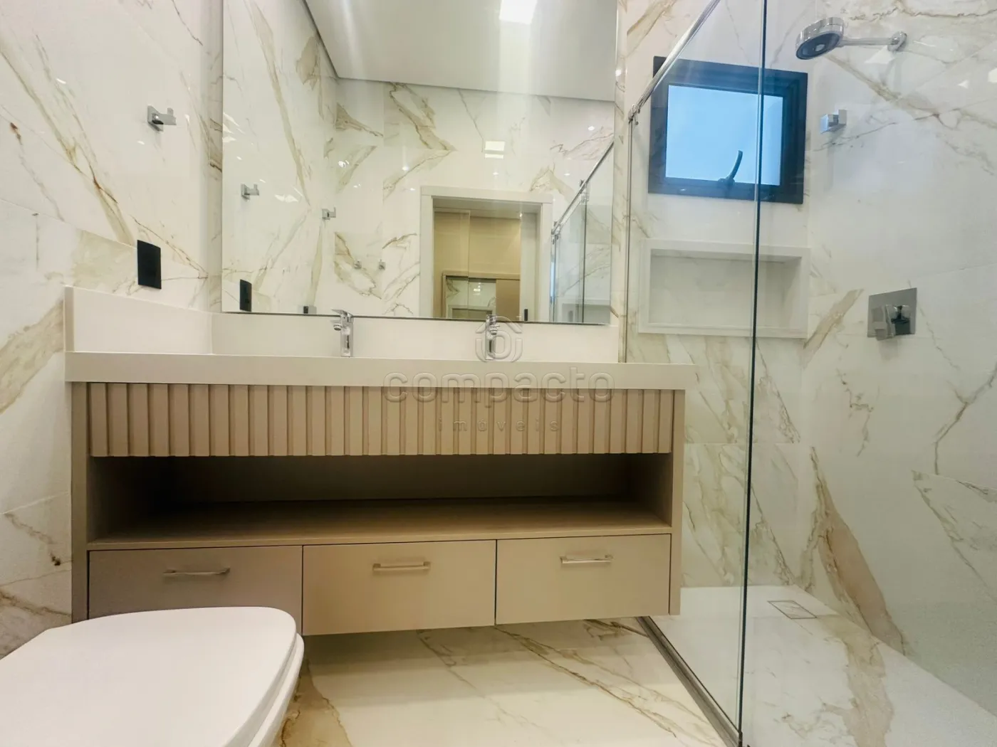 Casa de altíssimo padrão, com excelente acabamento, composta por três suítes planejadas e climatizadas, sendo uma suíte máster com veneziana automatizada e closet. Possui escritório com armários planejados, sala com pé-direito alto equipada com painel de TV e ar-condicionado, além de cozinha gourmet completa com forno, cooktop, máquina de lavar louças, micro-ondas, adega, cervejeira, churrasqueira, móvel home, barzinho e cristaleira. A área de lazer conta com piscina aquecida com cascata, iluminação em LED e hidromassagem, além de lavabo interno e externo para maior comodidade. A lavanderia é separada e planejada, e o imóvel dispõe de sistema de energia fotovoltaica, automação residencial, seis aparelhos de ar-condicionado, incluindo um modelo K7 na cozinha gourmet. Os acabamentos incluem portas laqueadas, ponto de carregamento para carro elétrico e fechadura eletrônica.