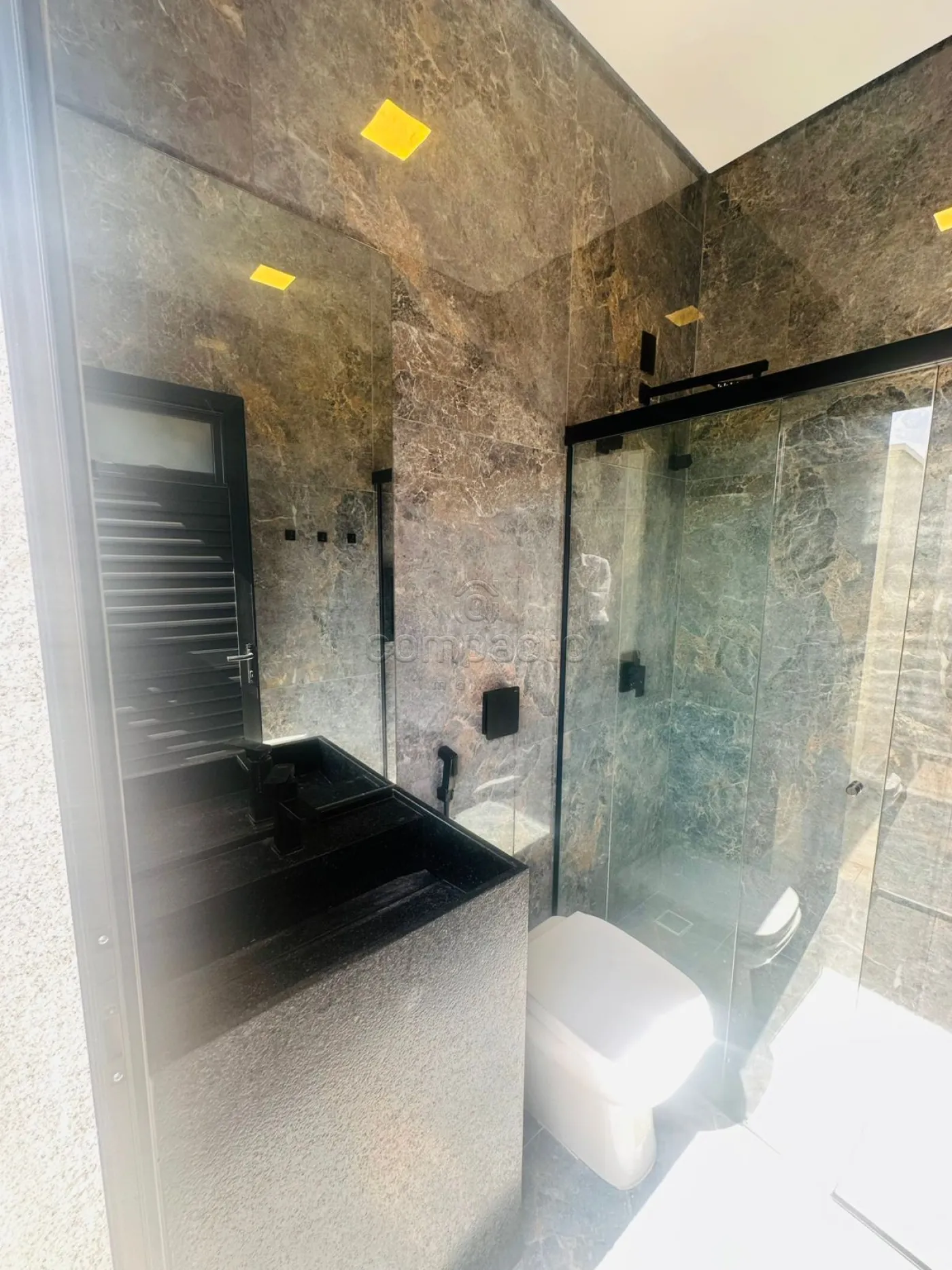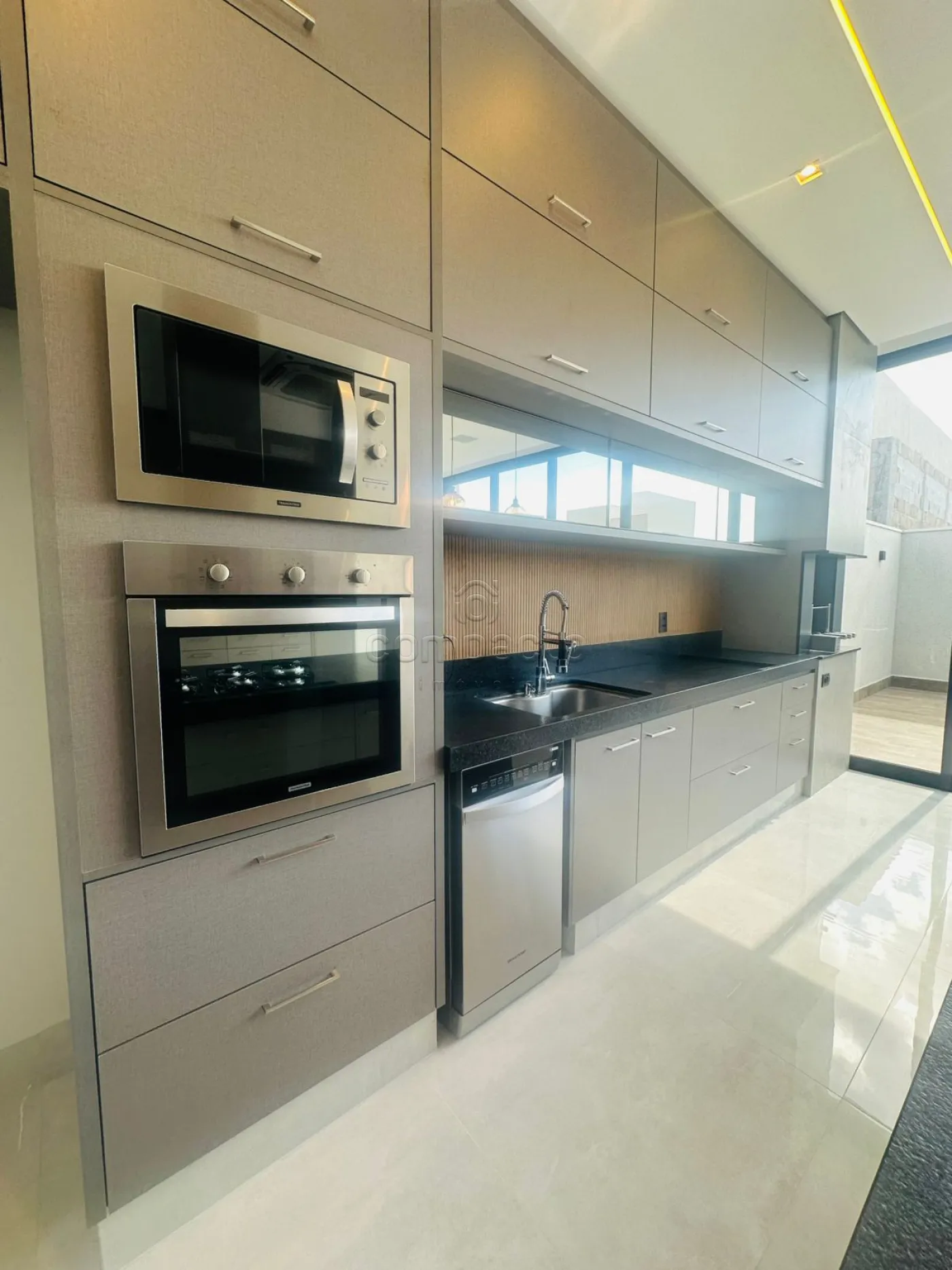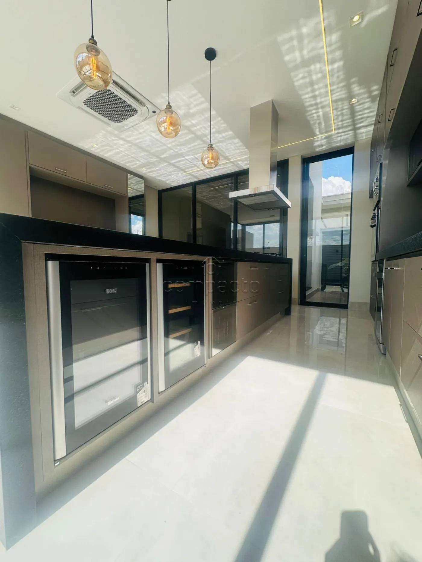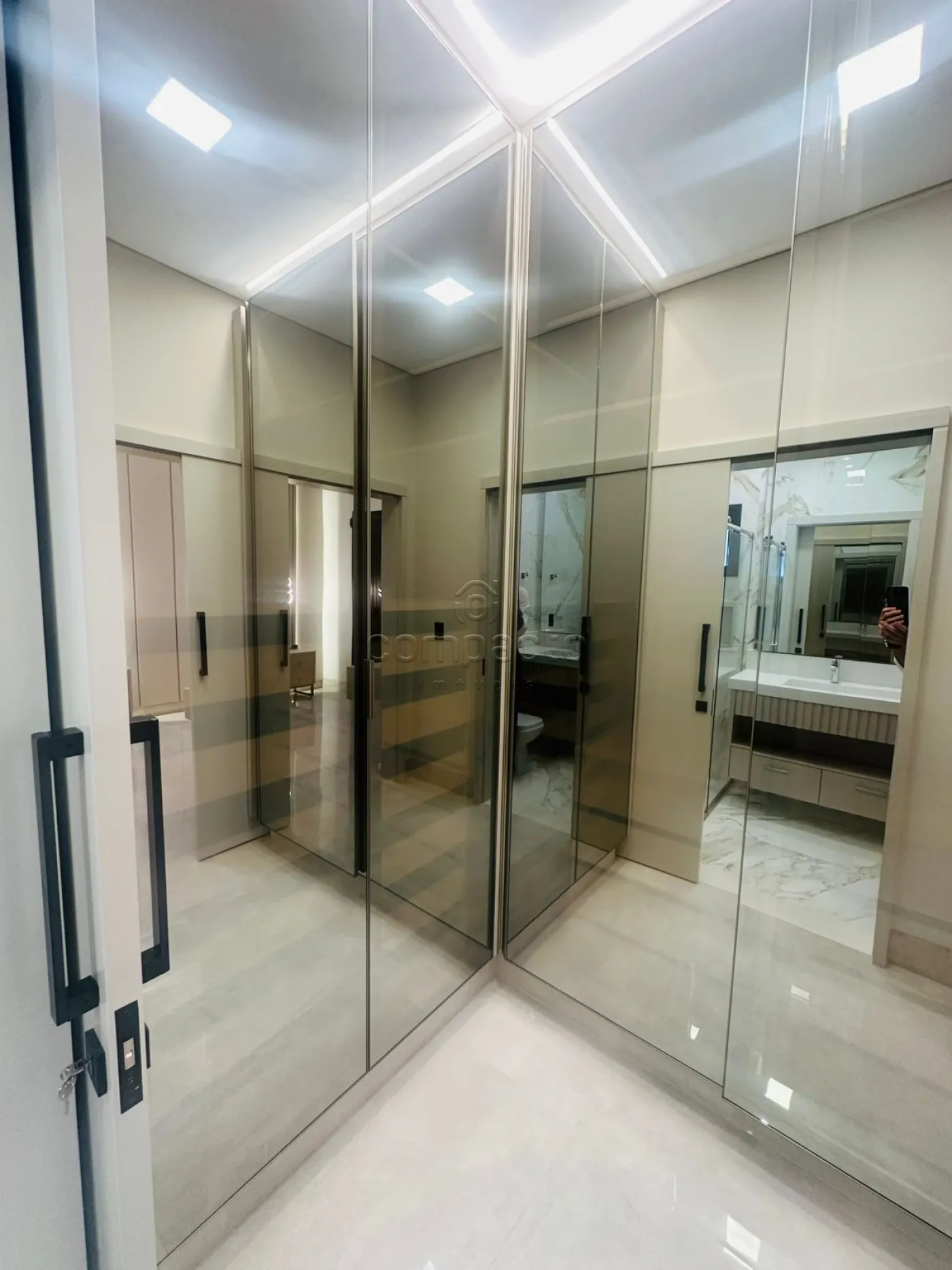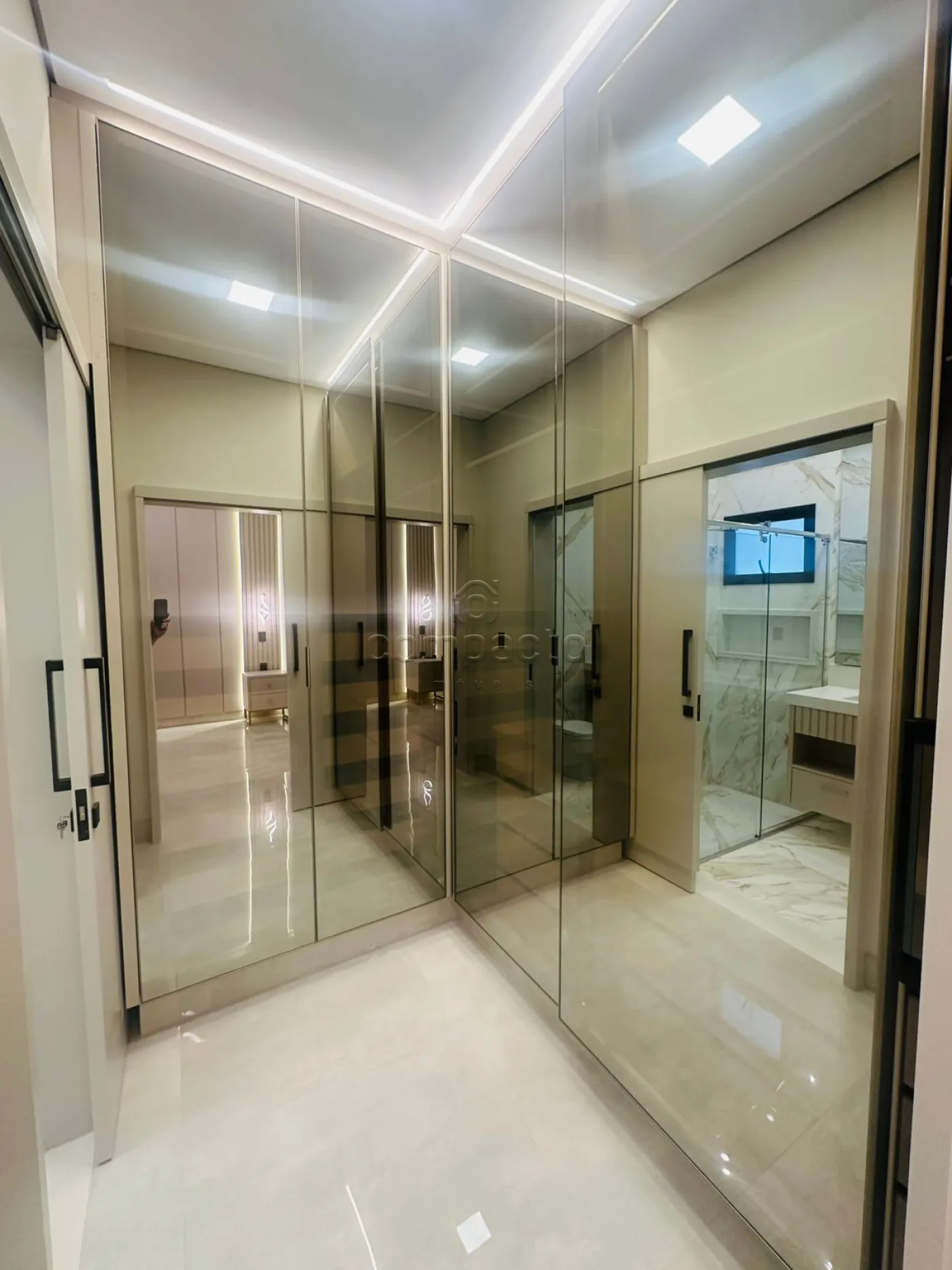 Casa de altíssimo padrão, com excelente acabamento, composta por três suítes planejadas e climatizadas, sendo uma suíte máster com veneziana automatizada e closet. Possui escritório com armários planejados, sala com pé-direito alto equipada com painel de TV e ar-condicionado, além de cozinha gourmet completa com forno, cooktop, máquina de lavar louças, micro-ondas, adega, cervejeira, churrasqueira, móvel home, barzinho e cristaleira. A área de lazer conta com piscina aquecida com cascata, iluminação em LED e hidromassagem, além de lavabo interno e externo para maior comodidade. A lavanderia é separada e planejada, e o imóvel dispõe de sistema de energia fotovoltaica, automação residencial, seis aparelhos de ar-condicionado, incluindo um modelo K7 na cozinha gourmet. Os acabamentos incluem portas laqueadas, ponto de carregamento para carro elétrico e fechadura eletrônica.