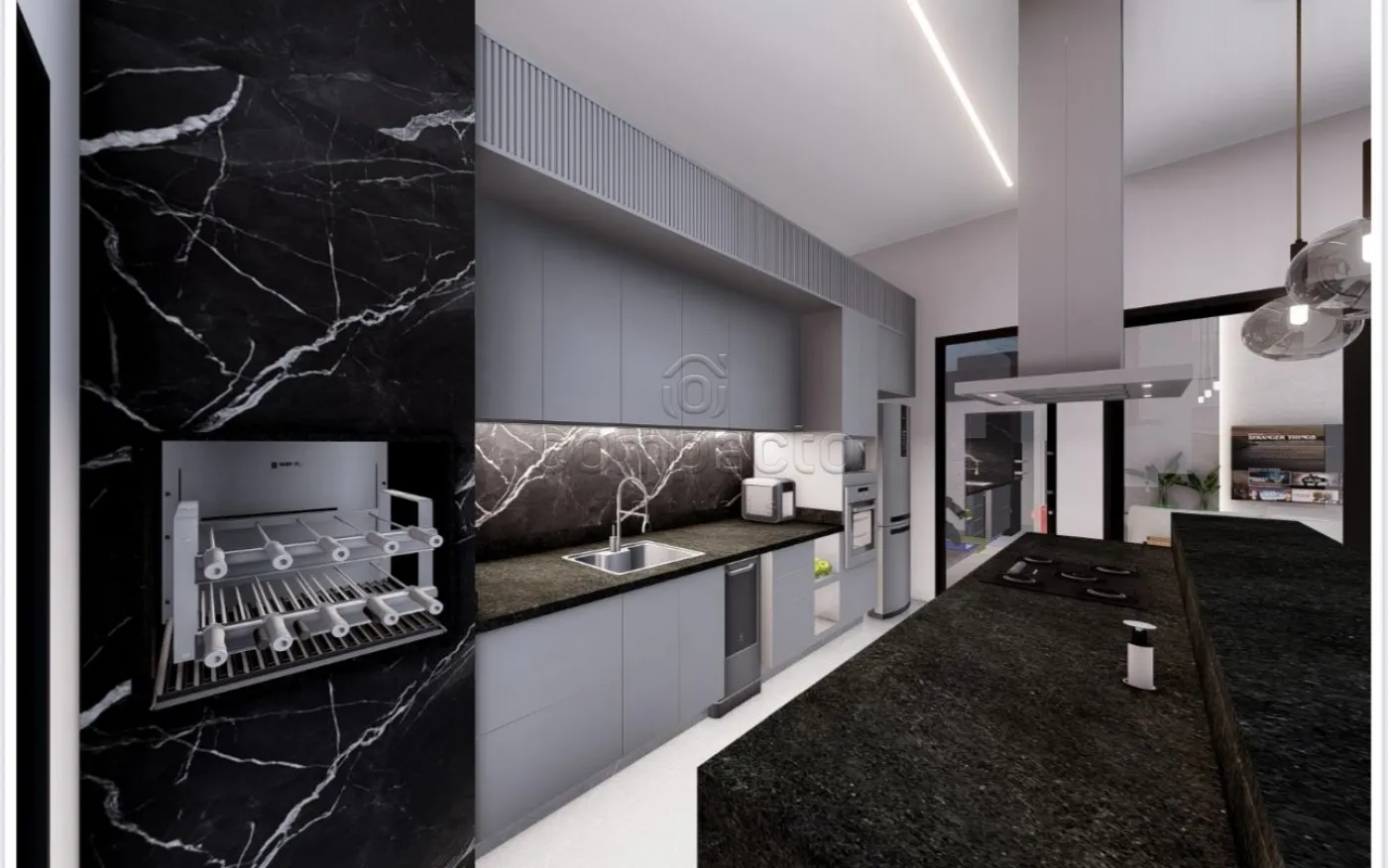 Casa com 3 dormitórios/suítes, sendo 1 máster c/ closet, armários planejados, escritório, lavabo externo, cozinha Gourmet com churrasqueira, Cooktop e Coifa, aquecimento solar, piscina, lavanderia com armários e 4 vagas de garagem.