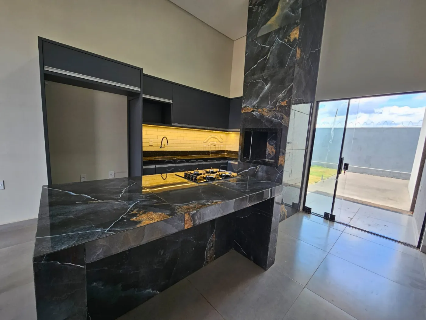 São 3 dormitórios, sendo 1 suíte; Sala integrada com cozinha gourmet, pé direito de 4m; Churrasqueira, ilha em porcelanato e cooktop.