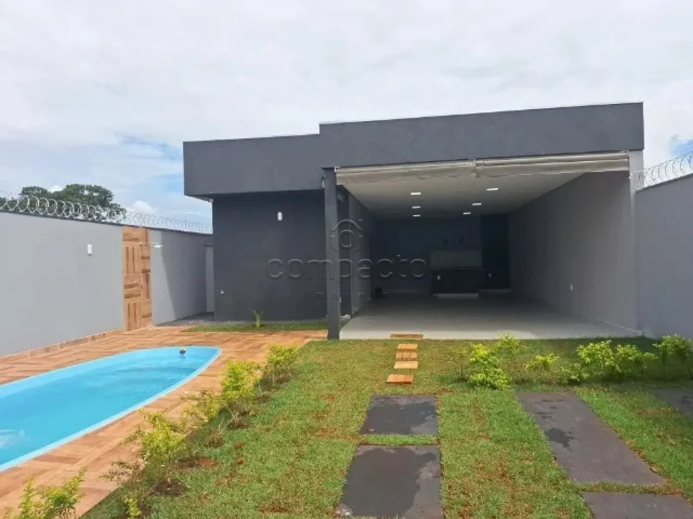 Casa com 1 dormitório, 2 banheiros, área de serviço com armário e pia, quintal, churrasqueira, piscina, cerca concertina em todo muro e 2 vagas de garagem.
