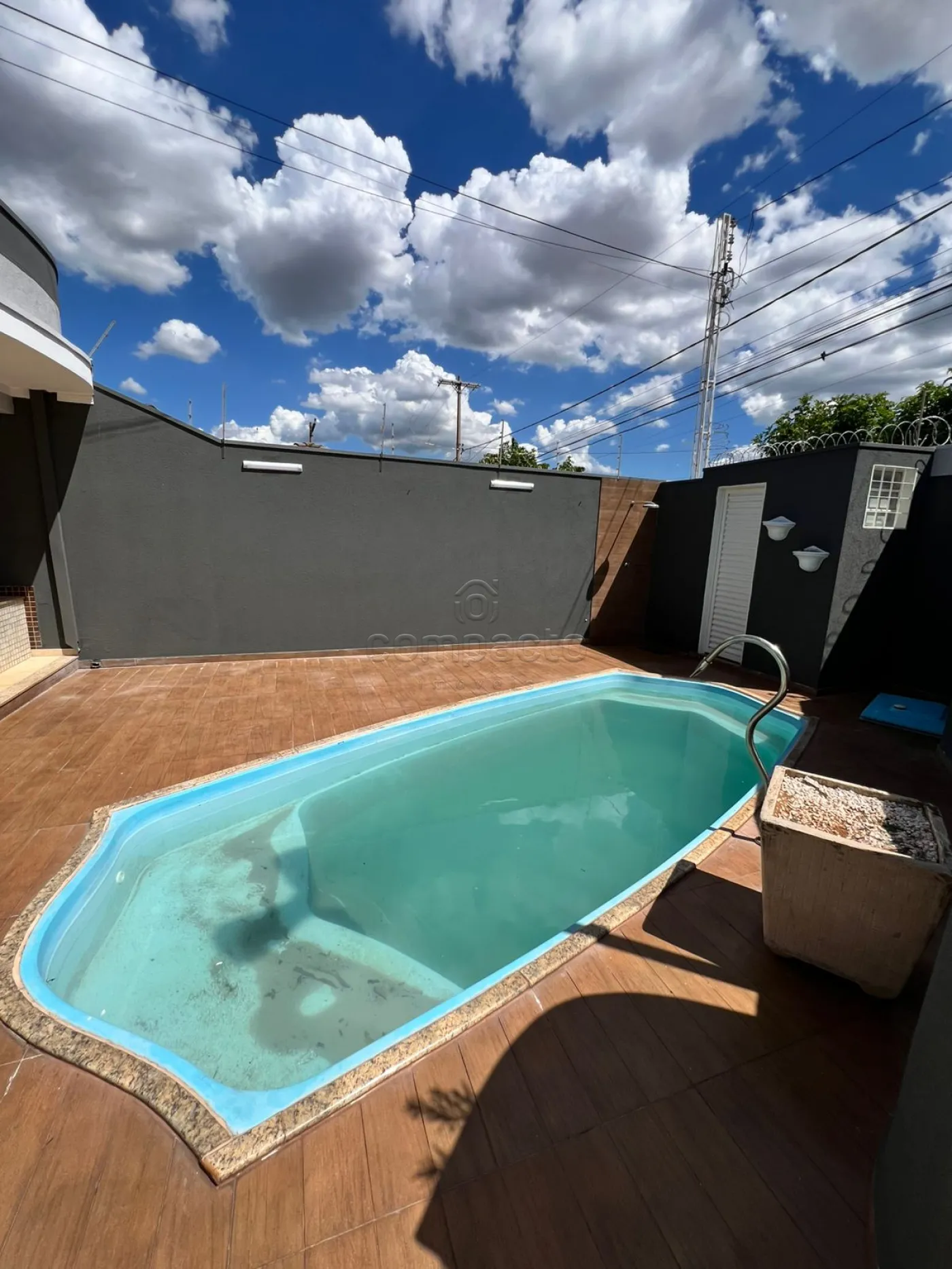 Imóvel ainda possui churrasqueira, piscina e garagem com 8 vagas.