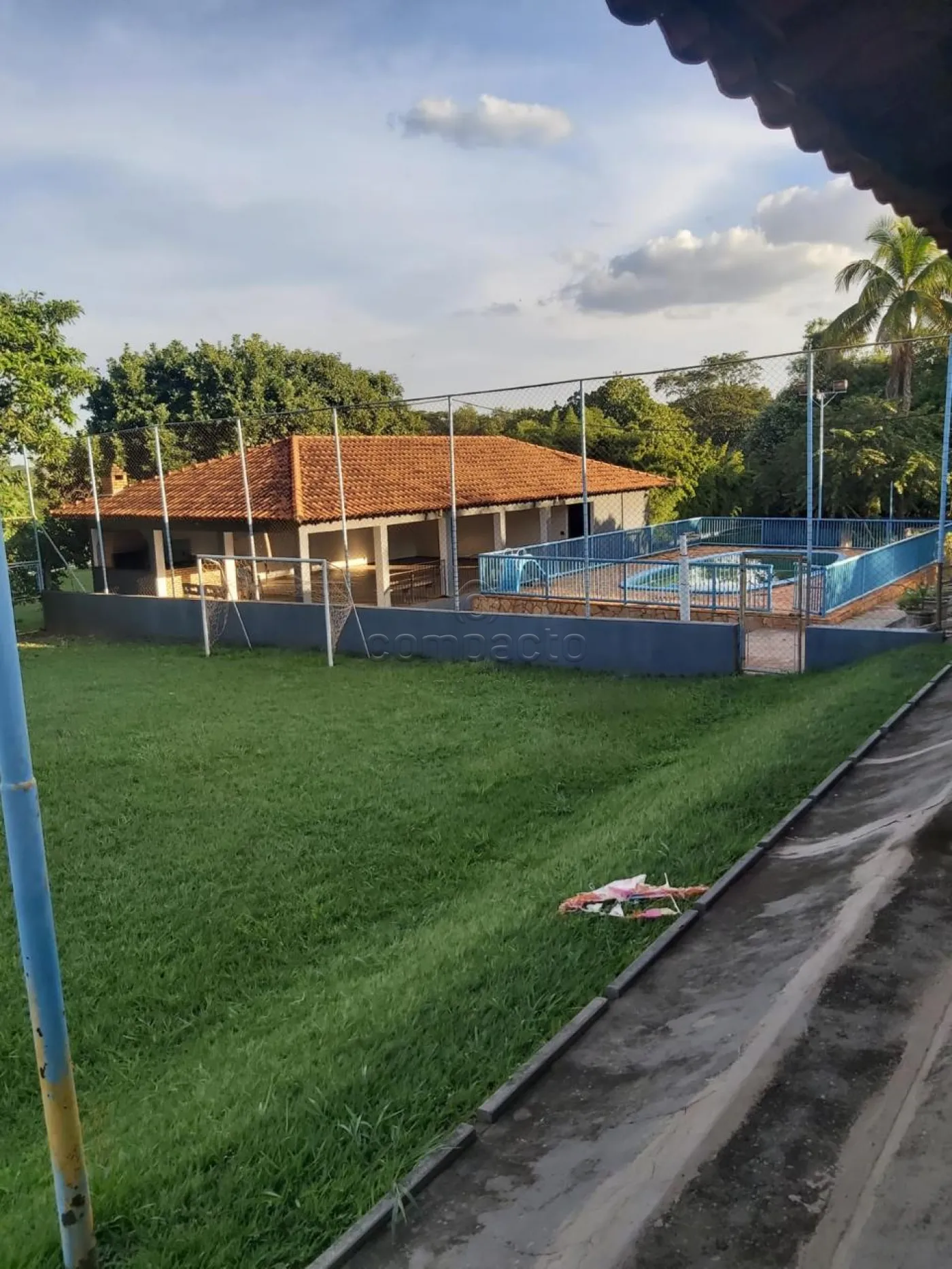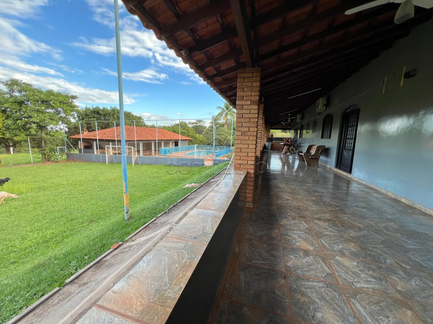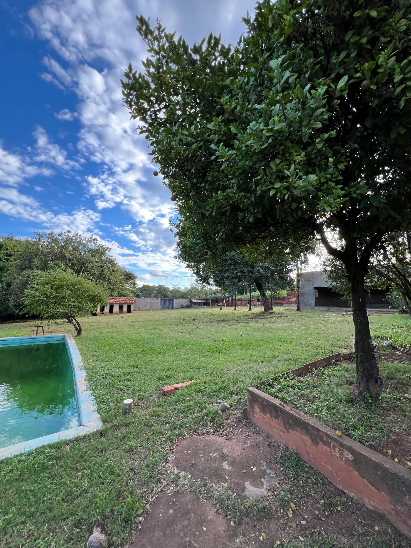 A chácara conta com piscina cercada por grade, medindo 14 x 8,50 m, poço artesiano, caixa d`água modelo taça com capacidade para 11.000 litros e canil com quatro baias.