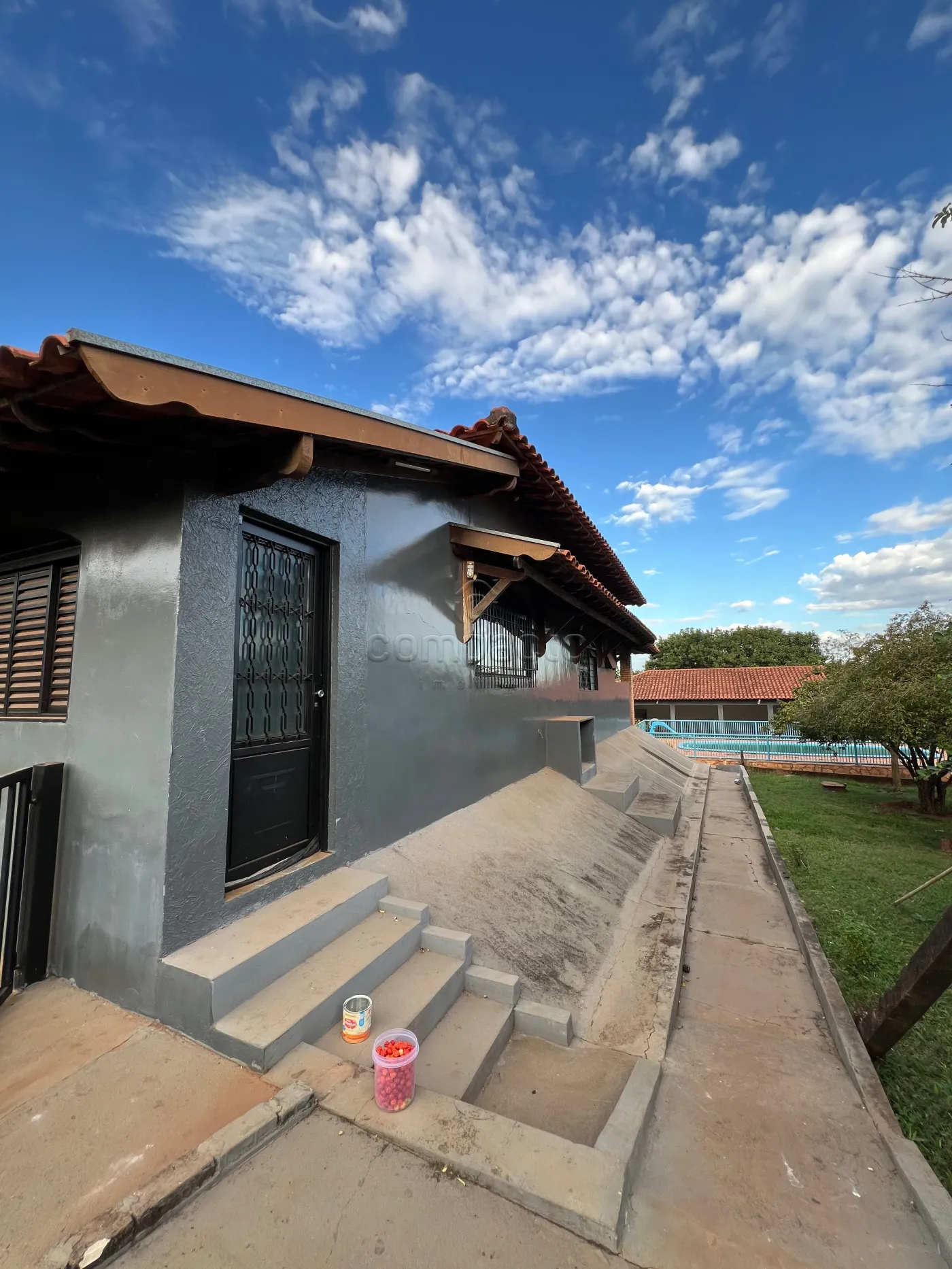 A casa do caseiro possui 13 x 5,80 m, com um quarto, sala, cozinha, banheiro e um cômodo destinado a ferramentas.